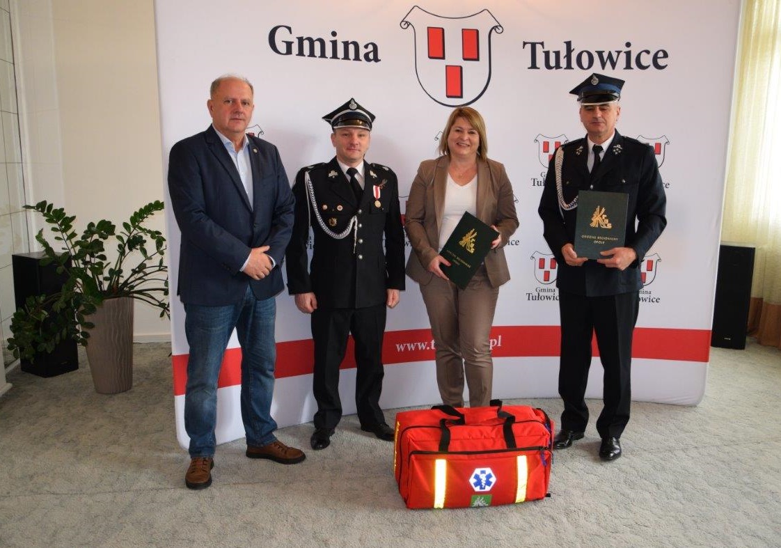 14 listopada 2024 r. podczas spotkania zorganizowanego w Urzędzie Miejskim, w obecności Burmistrza Tułowic Andrzeja Wesołowskiego i Michała Lutego, Dyrektor OR KRUS w Opolu Bożena Dubas przekazała torbę ratownictwa przedmedycznego na bazie standardu R-1 Prezesowi OSP Tułowice Mirosławowi Tkaczowi.