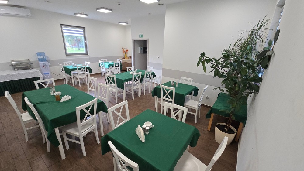 Posiłki przygotowywane przez firmę cateringową serwowane są w jadalni w formie szwedzkiego stołu.
