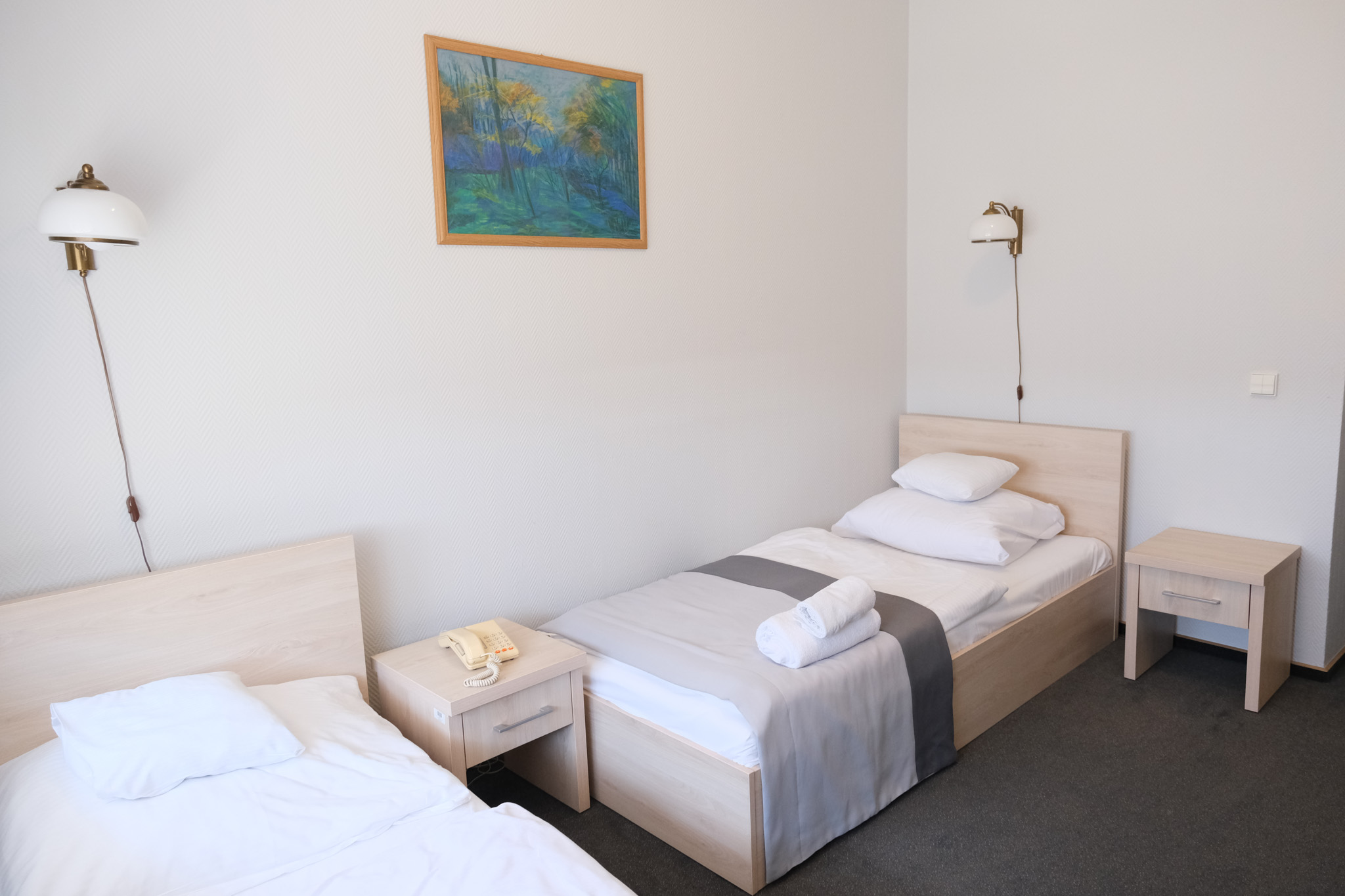 - 7 pokojach jednoosobowych,