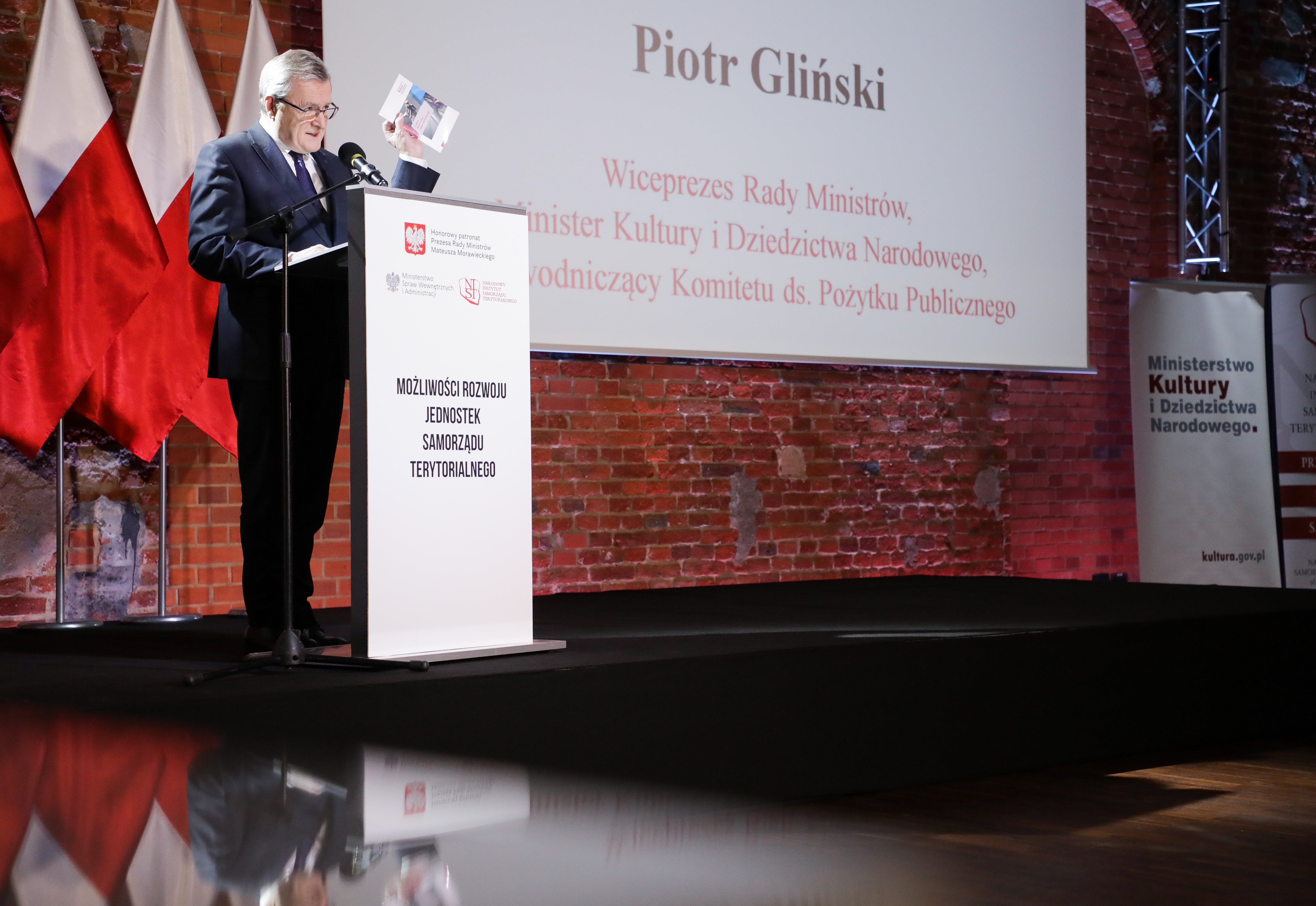 Minister kultury podkreślił, że w ciągu ostatnich czterech lat resort doprowadził do podwojenia liczby instytucji kultury współprowadzonych z budżetu centralnego, a 31 spośród 32 Programów Ministra jest przeznaczonych dla jednostek samorządu lub samorządowych instytucji kultury. W jego opinii samorządy mierzą się z wieloma problemami, dlatego należy docenić te z nich, które są gotowe przeznaczyć znaczną część budżetu na kulturę i są aktywne w poszukiwaniu źródeł pozyskiwania środków na ten cel. „To samorządy gminne, powiatowe czy wojewódzkie są organizatorami większości instytucji kultury w kraju. Kultura musi działać lokalnie, być blisko swojego odbiorcy (…); w szczególny sposób dotyczy jej zasada zrównoważonego rozwoju" – zaznaczał prof. Gliński.