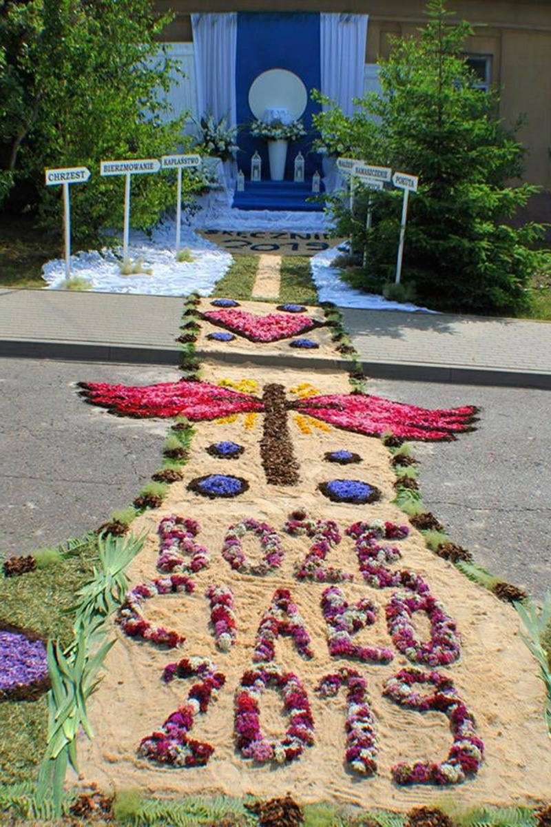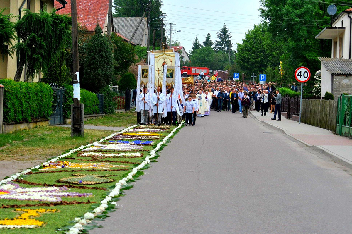 ⦁ Procesja Bożego Ciała z tradycją dywanów kwietnych w Skęczniewie (woj. wielkopolskie)