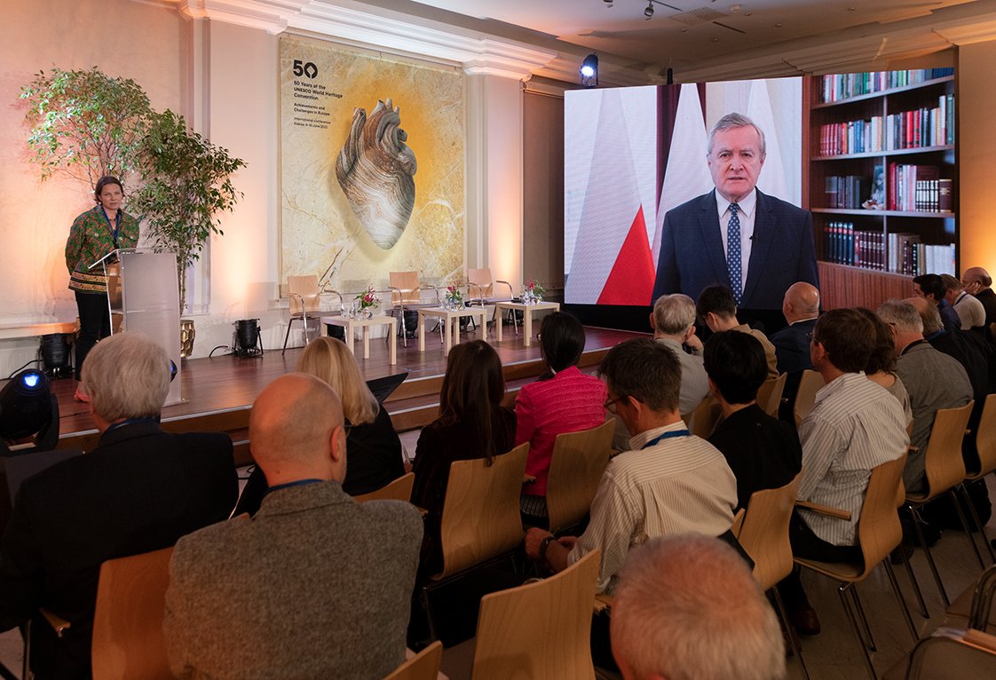 „W tym roku przypada 50. rocznica uchwalenia przez Zgromadzenie Generalne UNESCO Konwencji w sprawie ochrony światowego dziedzictwa kulturalnego i naturalnego, której osiągnięciem w skali globalnej jest prowadzona przez organizację Lista światowego dziedzictwa. (…) Jesteśmy dumni, że Polska była jednym z pierwszych krajów, które ratyfikowały Konwencję” – powiedział wicepremier, minister kultury i dziedzictwa narodowego prof. Piotr Gliński do uczestników konferencji pt. „50 lat Konwencji Światowego Dziedzictwa UNESCO. Osiągnięcia i wyzwania w Europie”. Przewodnim tematem zorganizowanego przez Międzynarodowe Centrum Kultury w Krakowie dwudniowego sympozjum jest podsumowanie dotychczasowych doświadczeń Europy w obszarze światowego dziedzictwa UNESCO, ocena obecnego stanu i zastanowienie się nad dalszym rozwojem oraz udoskonalaniem przedsięwzięć.