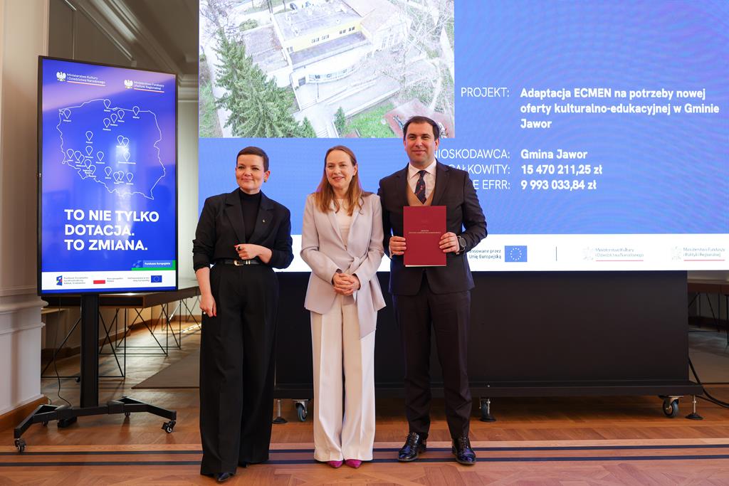 Decyzje o przyznaniu dofinansowania zostały wręczone beneficjentom 13 kwietnia br. w Akademii Sztuk Pięknych w Warszawie podczas konferencji prasowej. W wydarzeniu uczestniczyły: Marta Cienkowska, ministra kultury i dziedzictwa narodowego oraz Katarzyna Pełczyńska-Nałęcz, ministra funduszy i polityki regionalnej.
