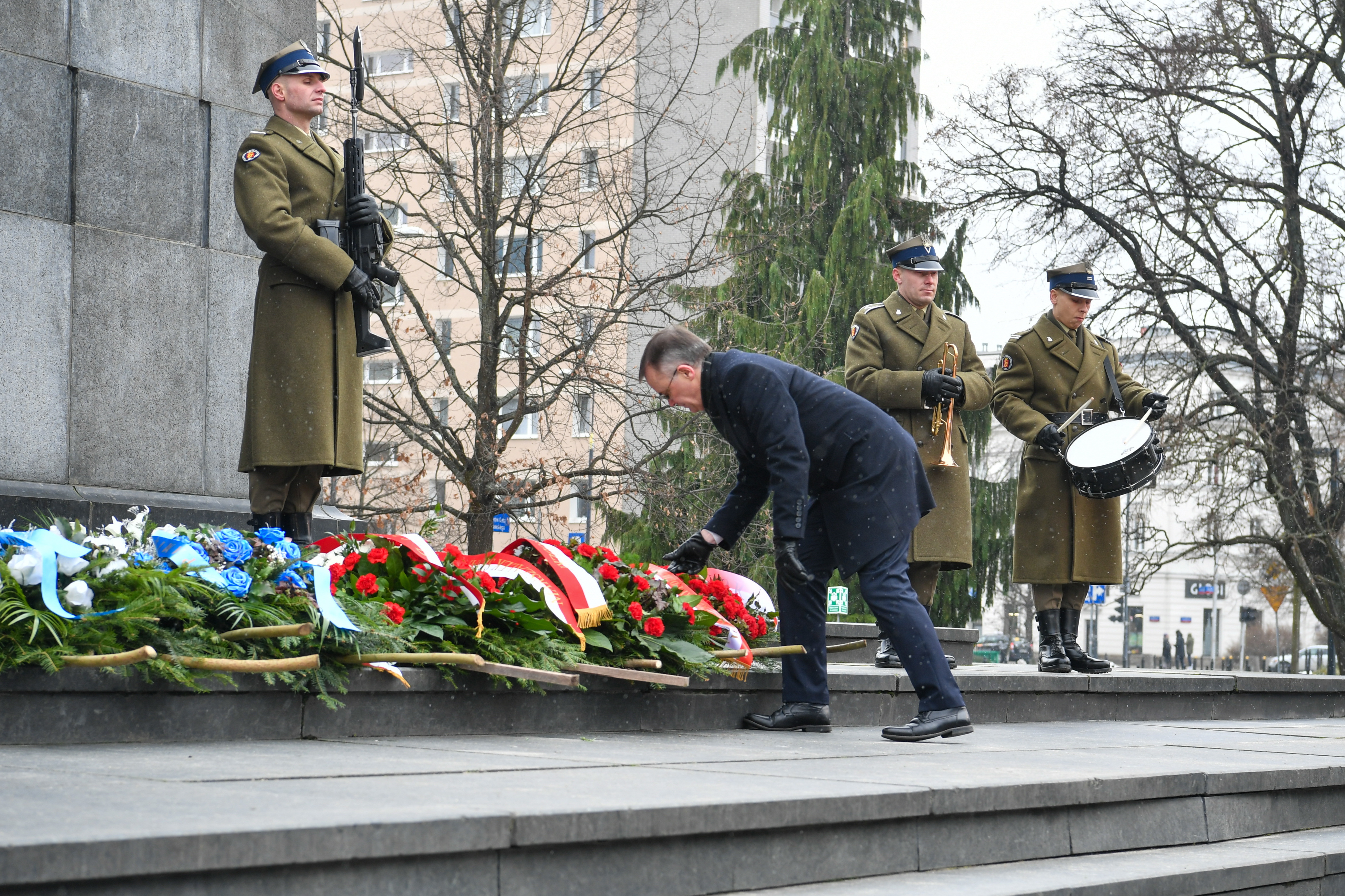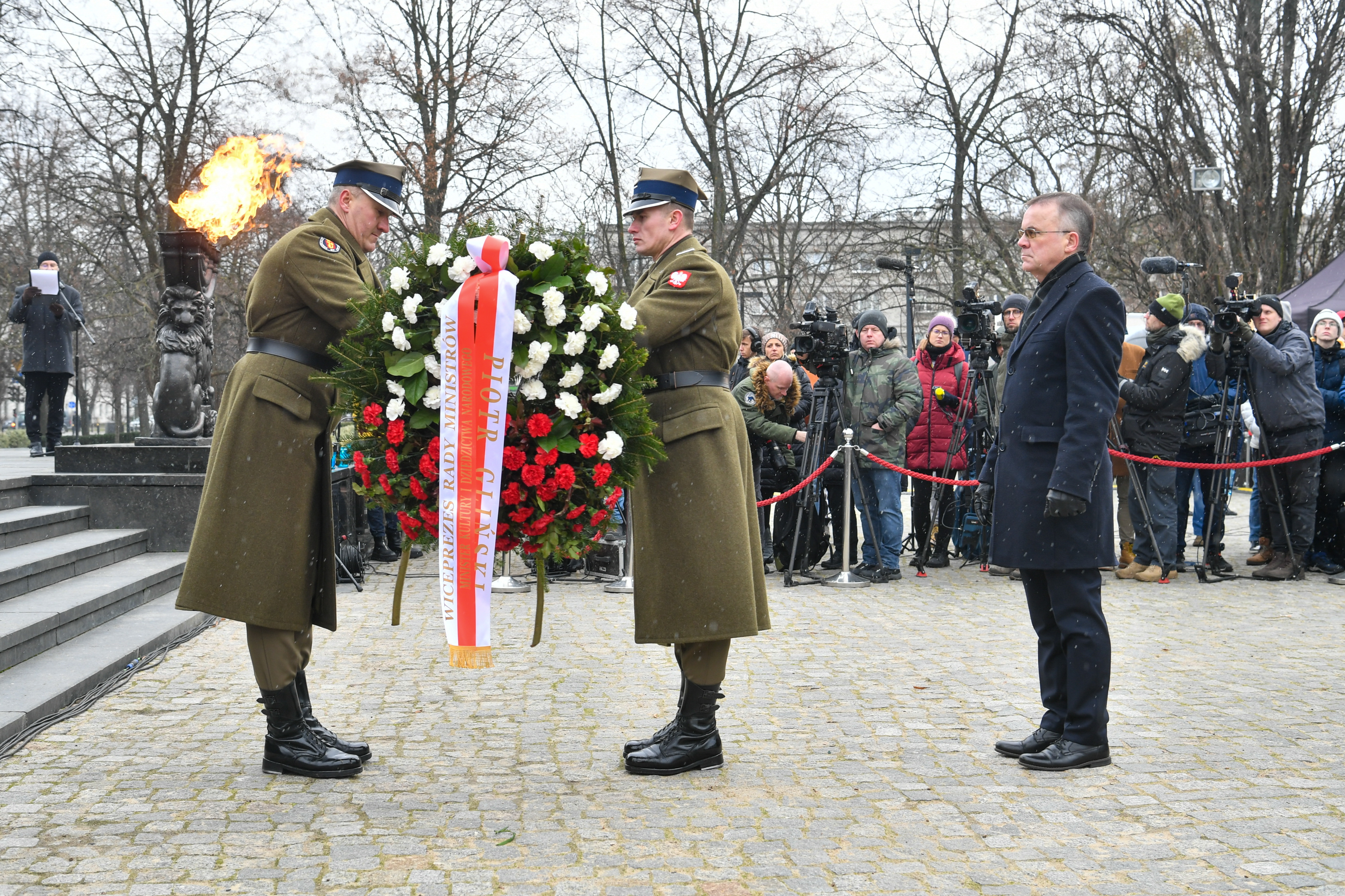 W warszawskich uroczystościach pod Pomnikiem Bohaterów Getta wziął udział wiceminister kultury i dziedzictwa narodowego, generalny konserwator zabytków dr Jarosław Sellin.