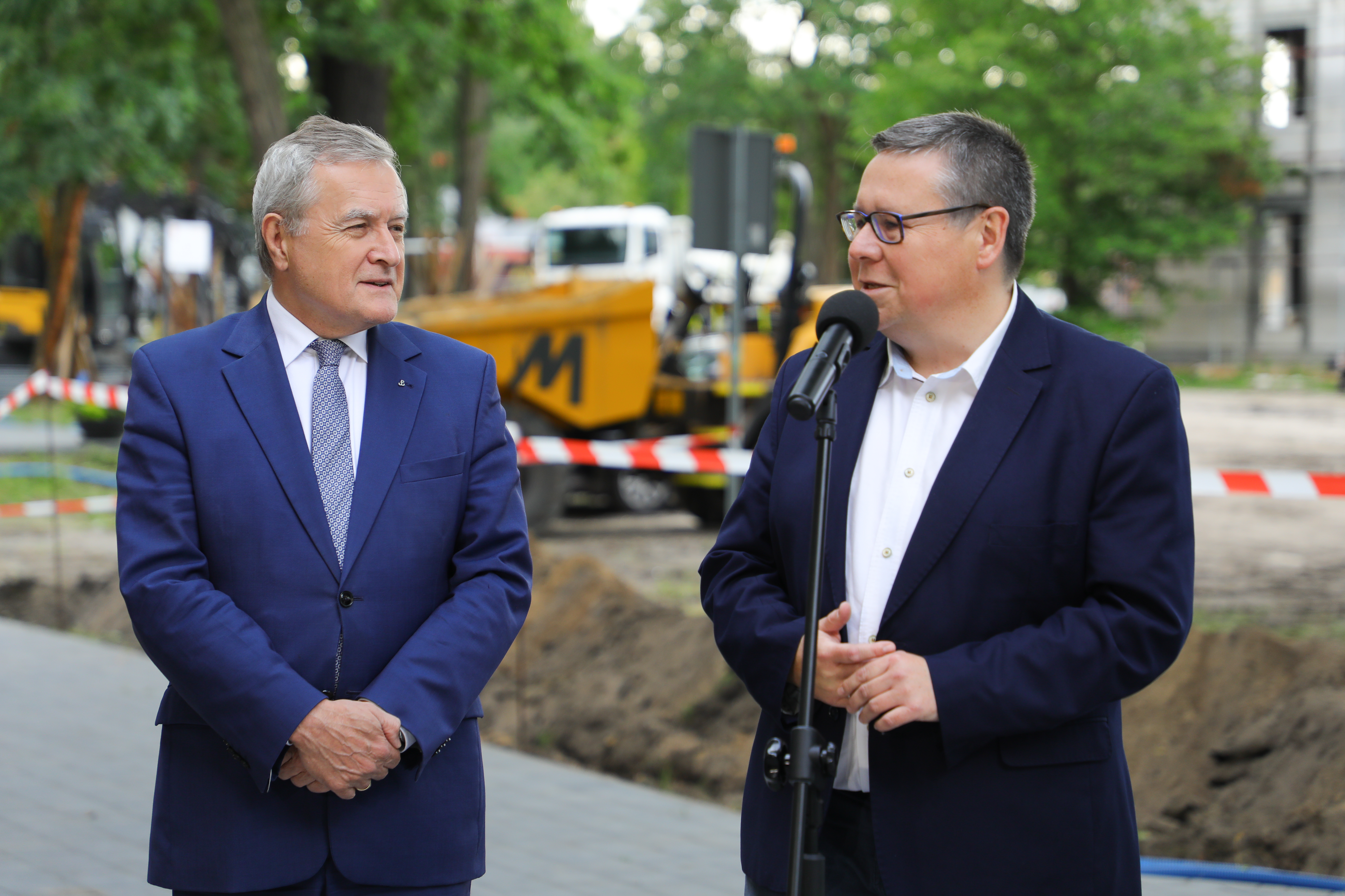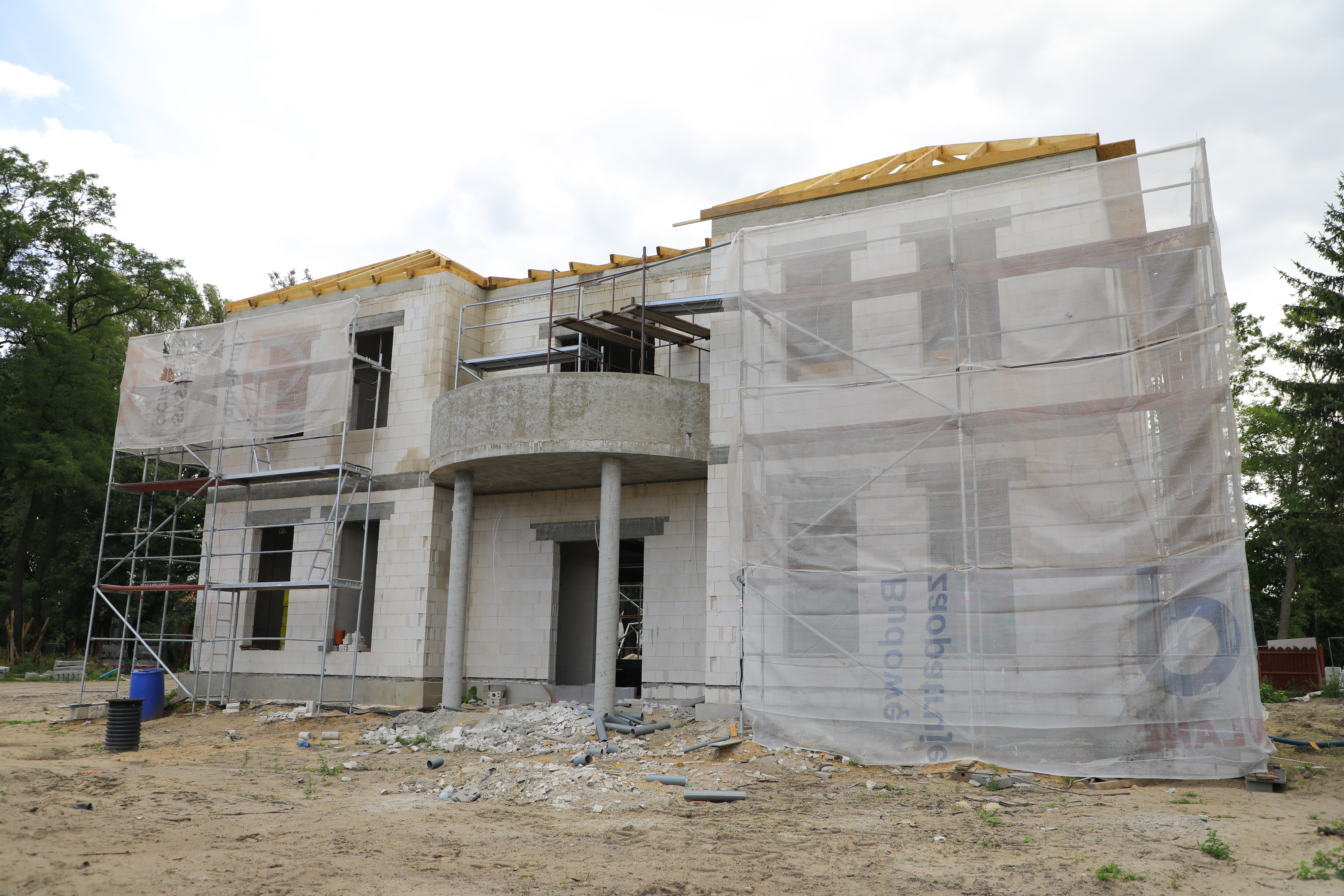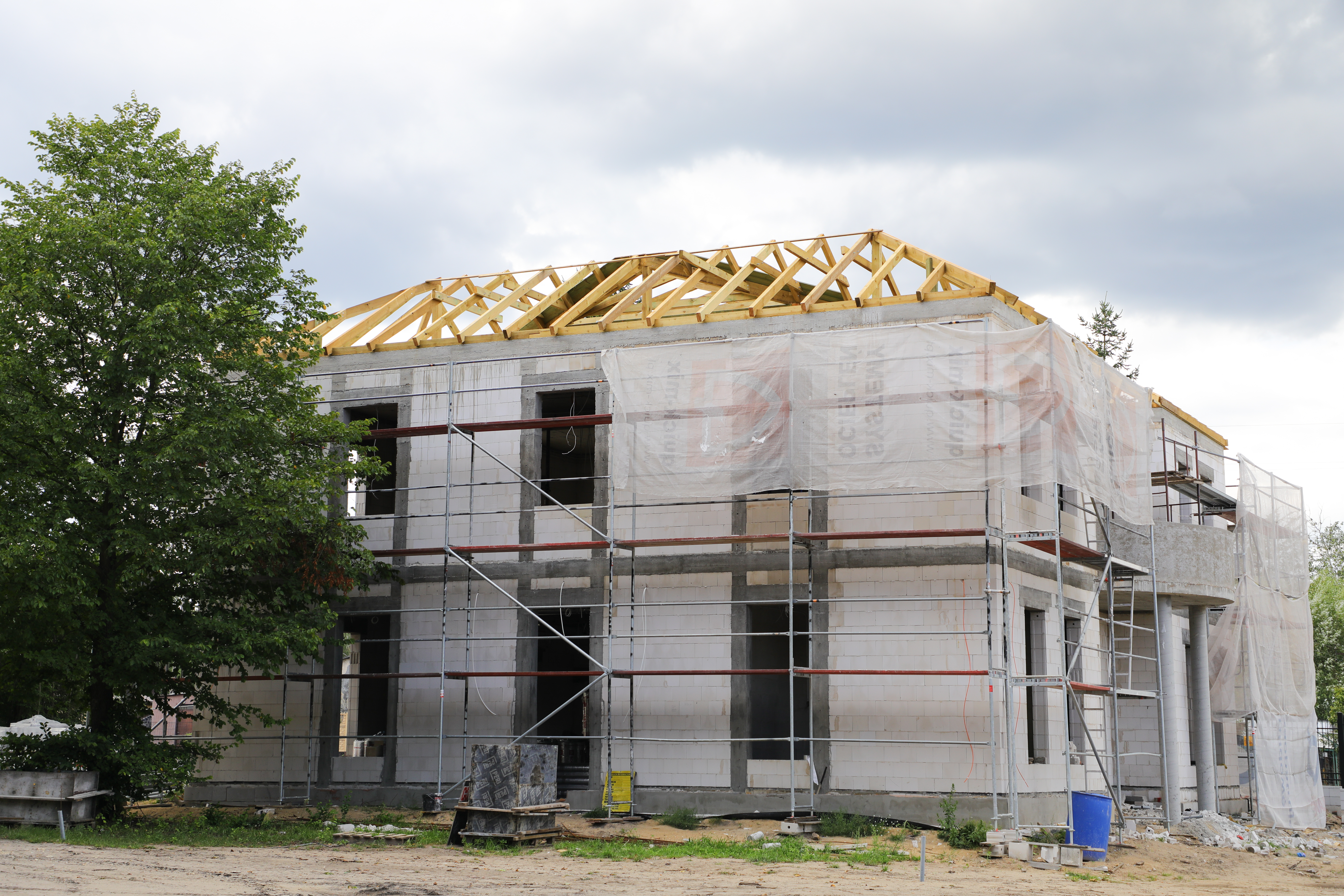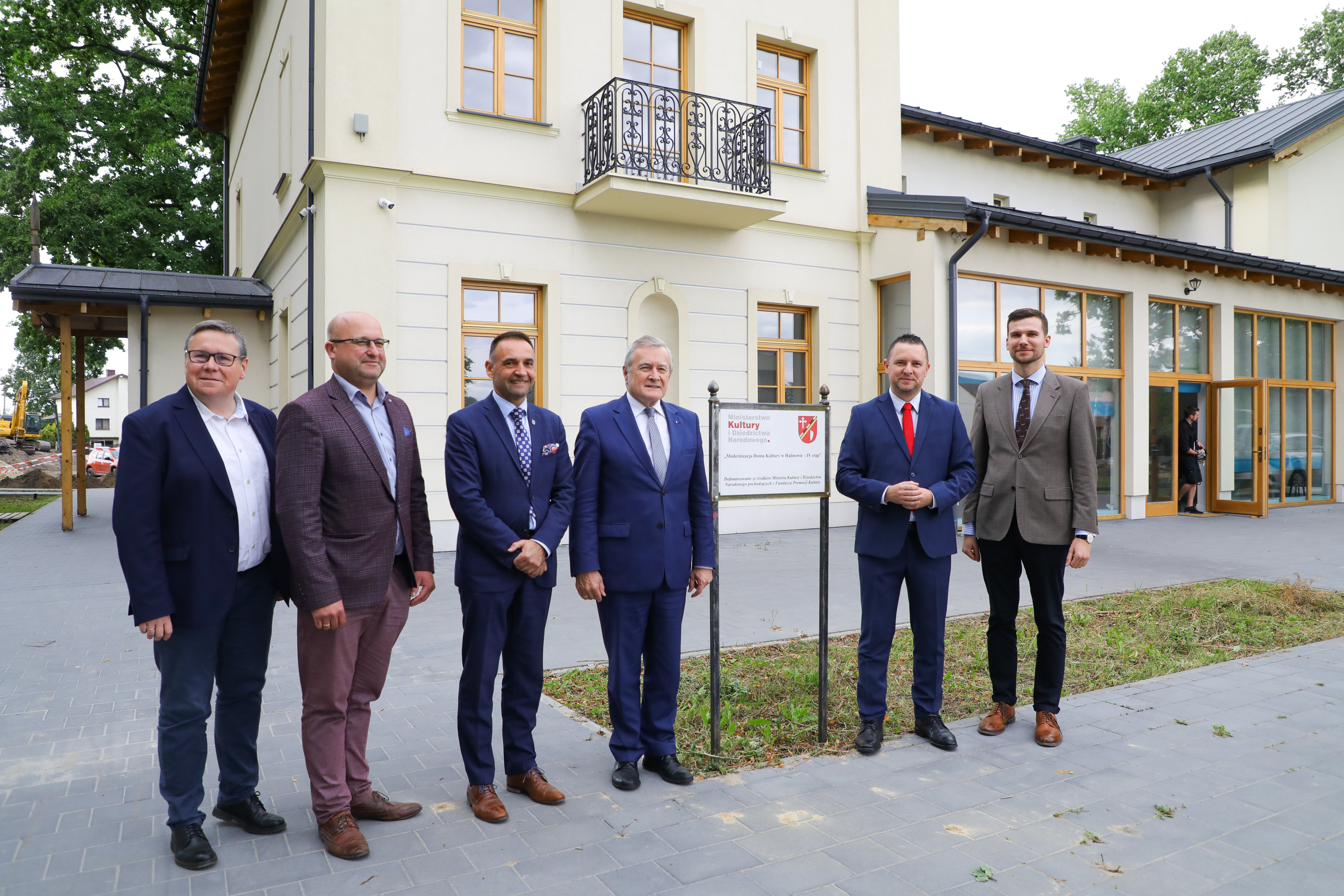 Konferencja odbyła się przed Gminnym Domem Kultury w Halinowie, obok którego powstaje – właśnie dzięki dofinansowaniu z programu „Infrastruktura bibliotek 2021-2025” – budynek nowej biblioteki.