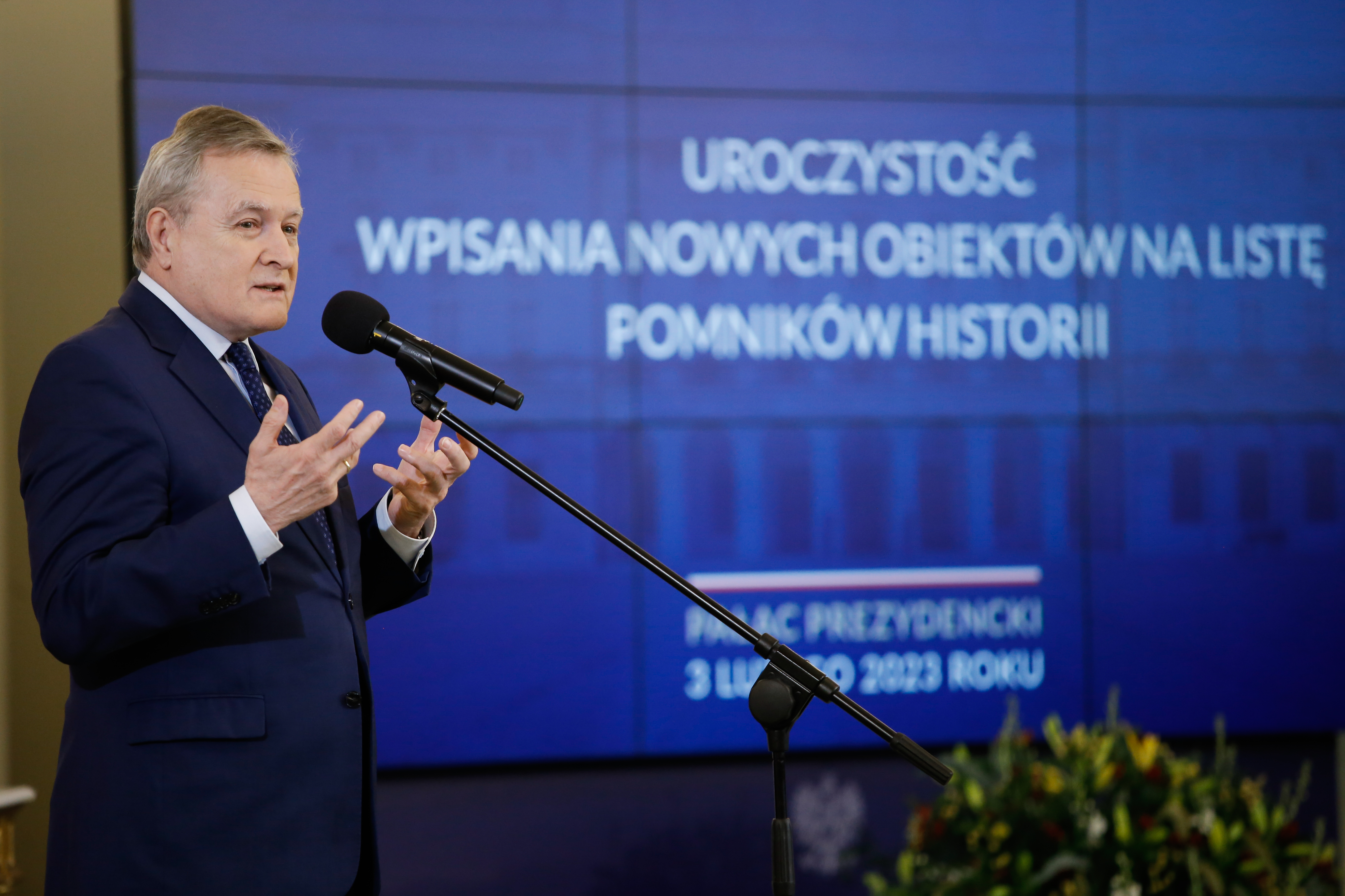 „Proces nadawania ważnym miejscom zabytkowym w Polsce tytułu Pomnika Historii wpisuje się w szerszą politykę ostatnich lat - politykę szczególnej dbałości o polską kulturę, tożsamość, historię, całą politykę historyczną. To jest fakt bez precedensu – w ciągu 7 lat listę Pomników Historii zwiększyliśmy o ponad 60 wpisów i dziś na tej prestiżowej liście znajdują się 123 zabytkowe obiekty i miejsca” – powiedział wicepremier, minister kultury i dziedzictwa narodowego prof. Piotr Gliński podczas uroczystości, która dziś odbyła się w Pałacu Prezydenckim.