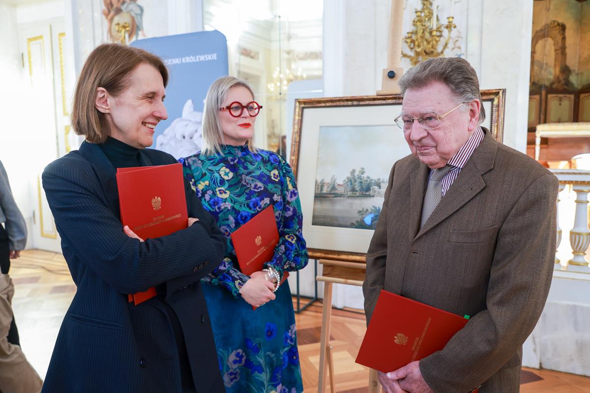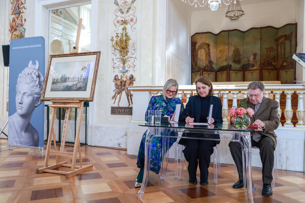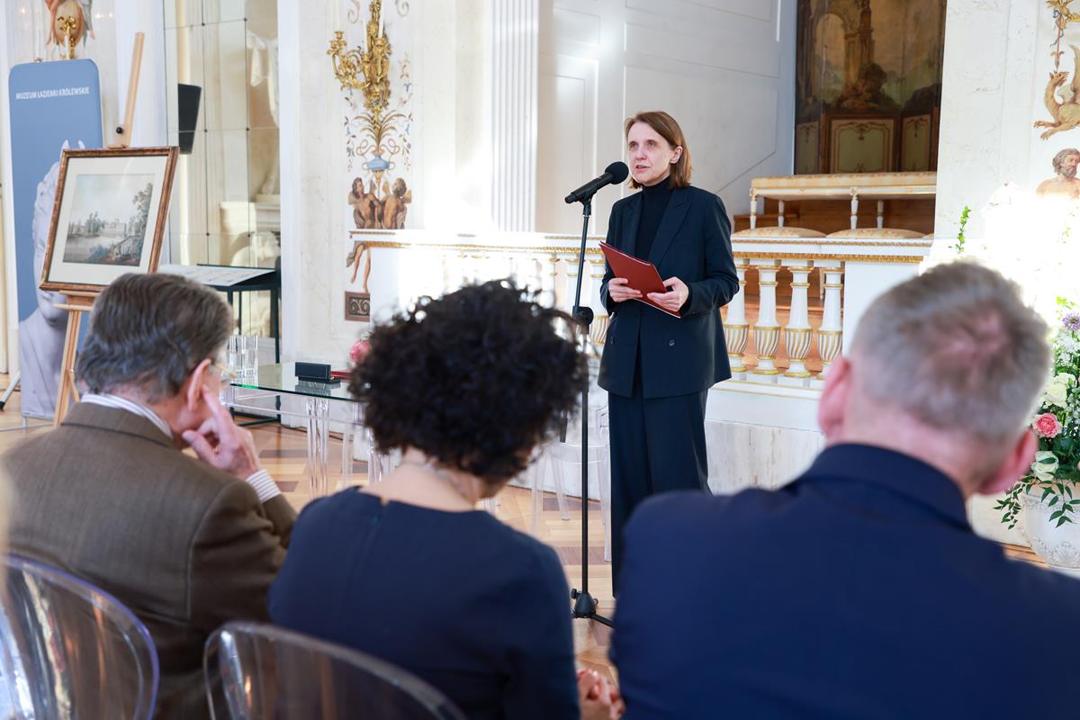 Zespół pałacowo-parkowy Łazienek Królewskich w Warszawie sam w sobie jest dziełem sztuki – łączącym liczne dziedziny, takie jak: rzeźba, malarstwo, teatr, architektura czy krajobraz. Jednocześnie jest to miejsce, które król Stanisław August Poniatowski wykreował jako oazę dla artystów i myślicieli. Na kolekcji łazienkowskiej swoje piętno odcisnęła jednak II wojna światowa. Zaginionych pozostaje wiele utraconych obiektów z tej kolekcji. Ministerstwo Kultury i Dziedzictwa Narodowego stale podejmuje działania, by je odnaleźć – prowadzimy ponad 180 spraw restytucyjnych w 20 krajach na całym świeci. Dziś przekazujemy do macierzystej kolekcji akwarelę Zygmunta Vogla „Widok Łazienek od strony północnej”, której przez lata brakowało w tutejszych zbiorach. Teraz ponownie staje się elementem naszej wspólnej kultury – mówiła Hanna Wróblewska, ministra kultury i dziedzictwa narodowego.