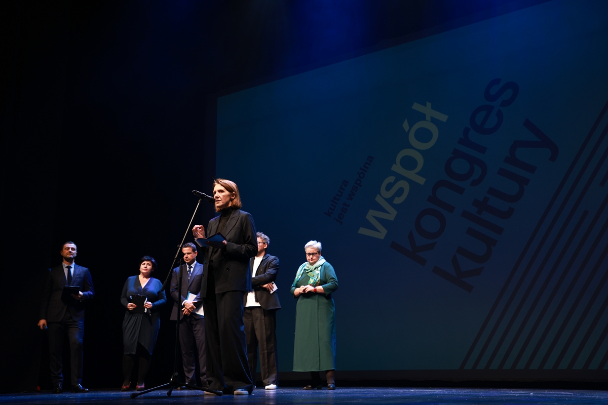 „Po raz kolejny po 1981, 2000, 2009 i 2016 roku spotykamy się na współKongresie Kultury. Cieszę się, że możemy wspólnie otworzyć ten nowy rozdział po latach drenowania DNA polskiej kultury. Spotykamy się WSPÓLNIE – na równych prawach, a nie w zamkniętych gabinetach, po to, by zobaczyć różne perspektywy i porozmawiać o tym, co jest najważniejsze, a zarazem - co jest możliwe do zrealizowania” – mówiła Hanna Wróblewska, ministra kultury i dziedzictwa narodowego podczas otwarcia współKongresu Kultury, 7 listopada 2024 r. na scenie Teatru Dramatycznego w Warszawie.