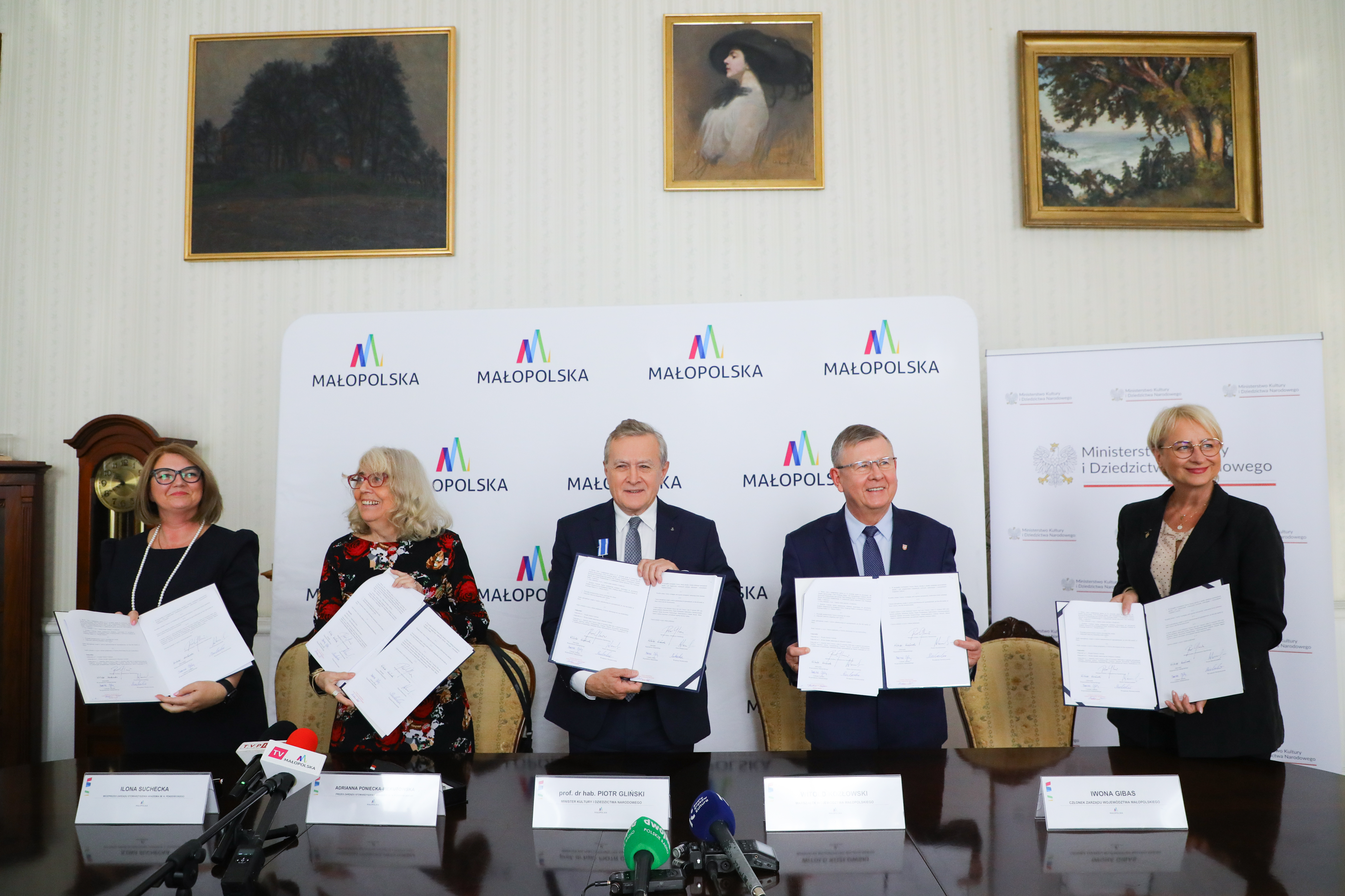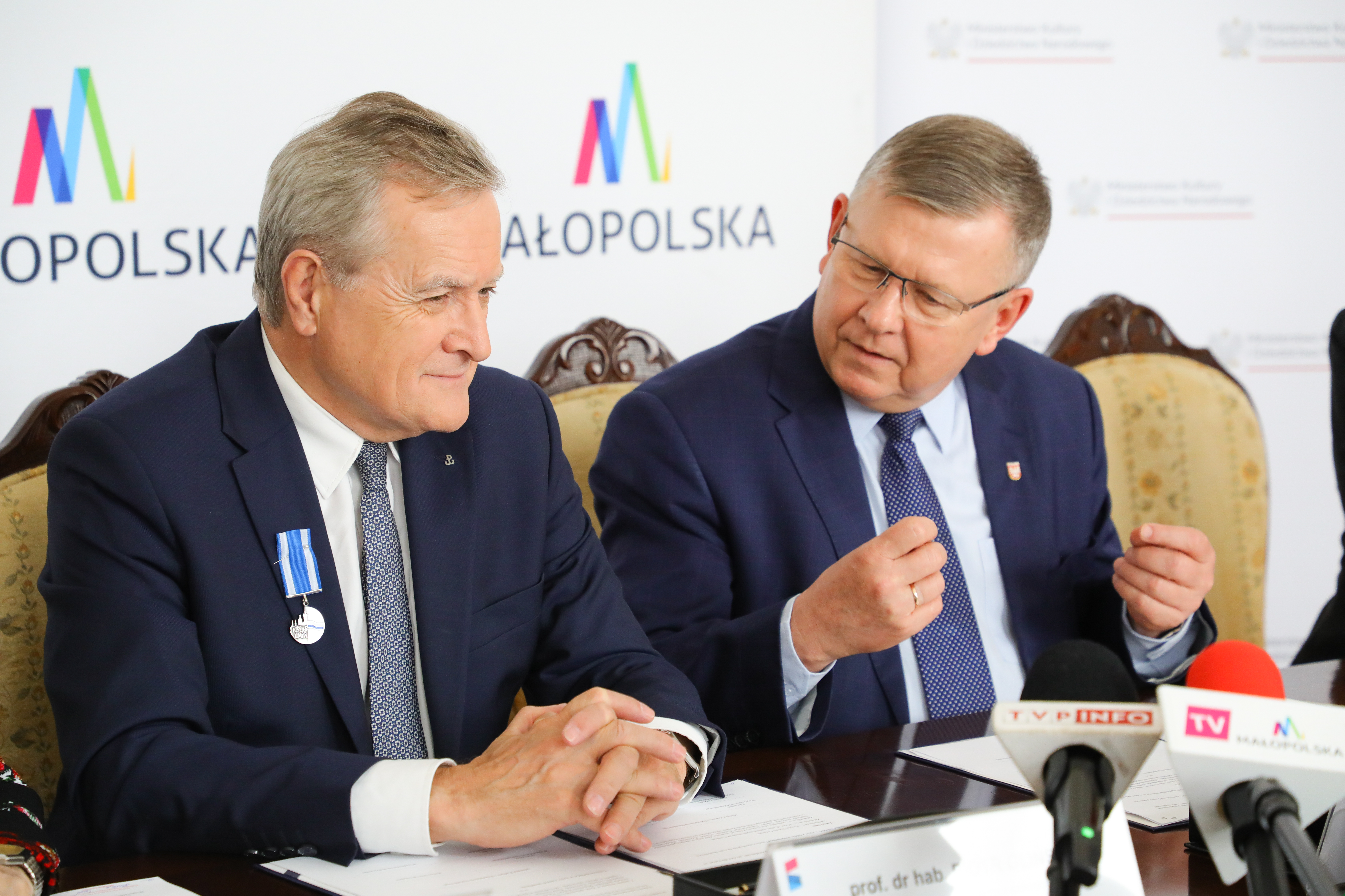 „Podpisanie aneksu do umowy o współprowadzeniu Europejskiego Centrum Muzyki Krzysztofa Pendereckiego w Lusławicach wieńczy proces ratowania podstaw funkcjonowania bardzo ważnej instytucji kultury – Chóru Polskiego Radia. Dzięki temu możemy mu zapewnić dobrą, stabilną przyszłość dla dobra polskiej kultury, Krakowa i całej Małopolski” – powiedział minister kultury i dziedzictwa narodowego prof. Piotr Gliński podczas uroczystości podpisania aneksu do umowy o współprowadzeniu Europejskiego Centrum Muzyki Krzysztofa Pendereckiego, która odbyła się dziś w Urzędzie Marszałkowskim Województwa Małopolskiego.