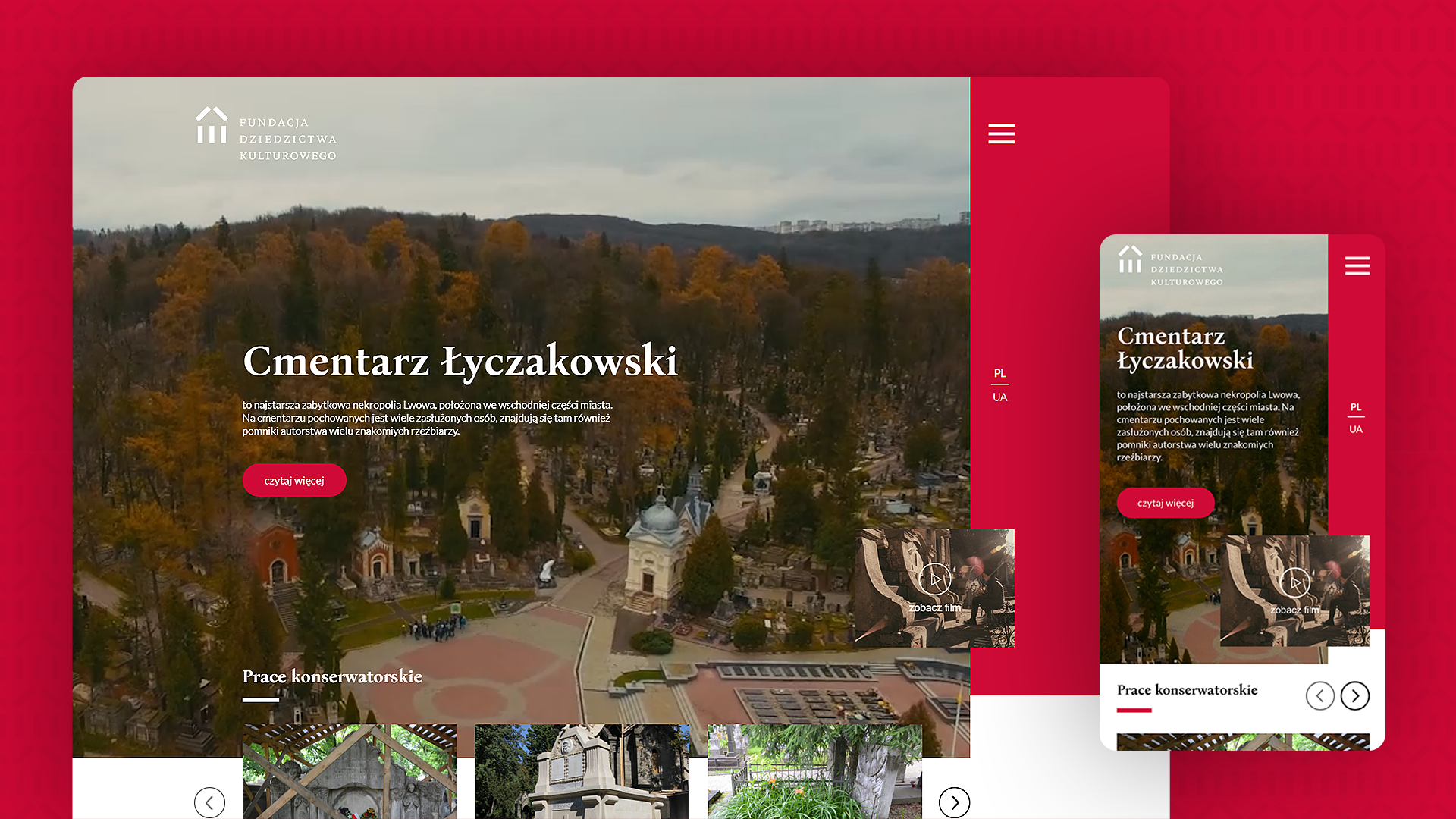 Strona prezentuje również efekty prac konserwatorskich prowadzonych ze środków Ministerstwa Kultury i Dziedzictwa Narodowego przez Towarzystwo Opieki nad Zabytkami (w latach 2008-2012) oraz Fundację Dziedzictwa Kulturowego (od 2013 r.). Prace realizują trzy polsko-ukraińskie zespoły konserwatorów w ramach projektu ochrony wspólnego dziedzictwa. Profesjonalnej konserwacji poddano już ponad 150 pomników nagrobnych o wysokich wartościach artystycznych lub historycznych.