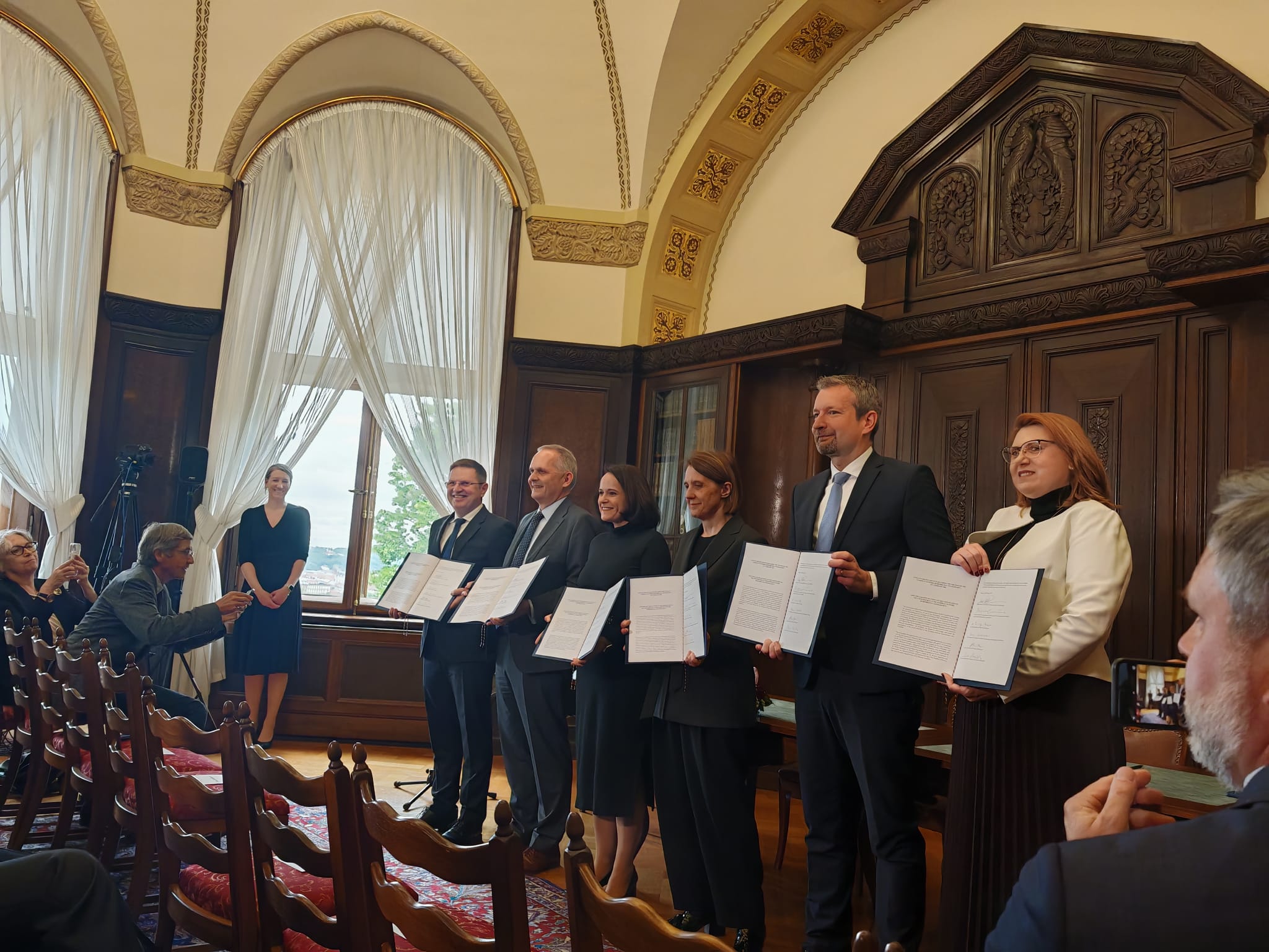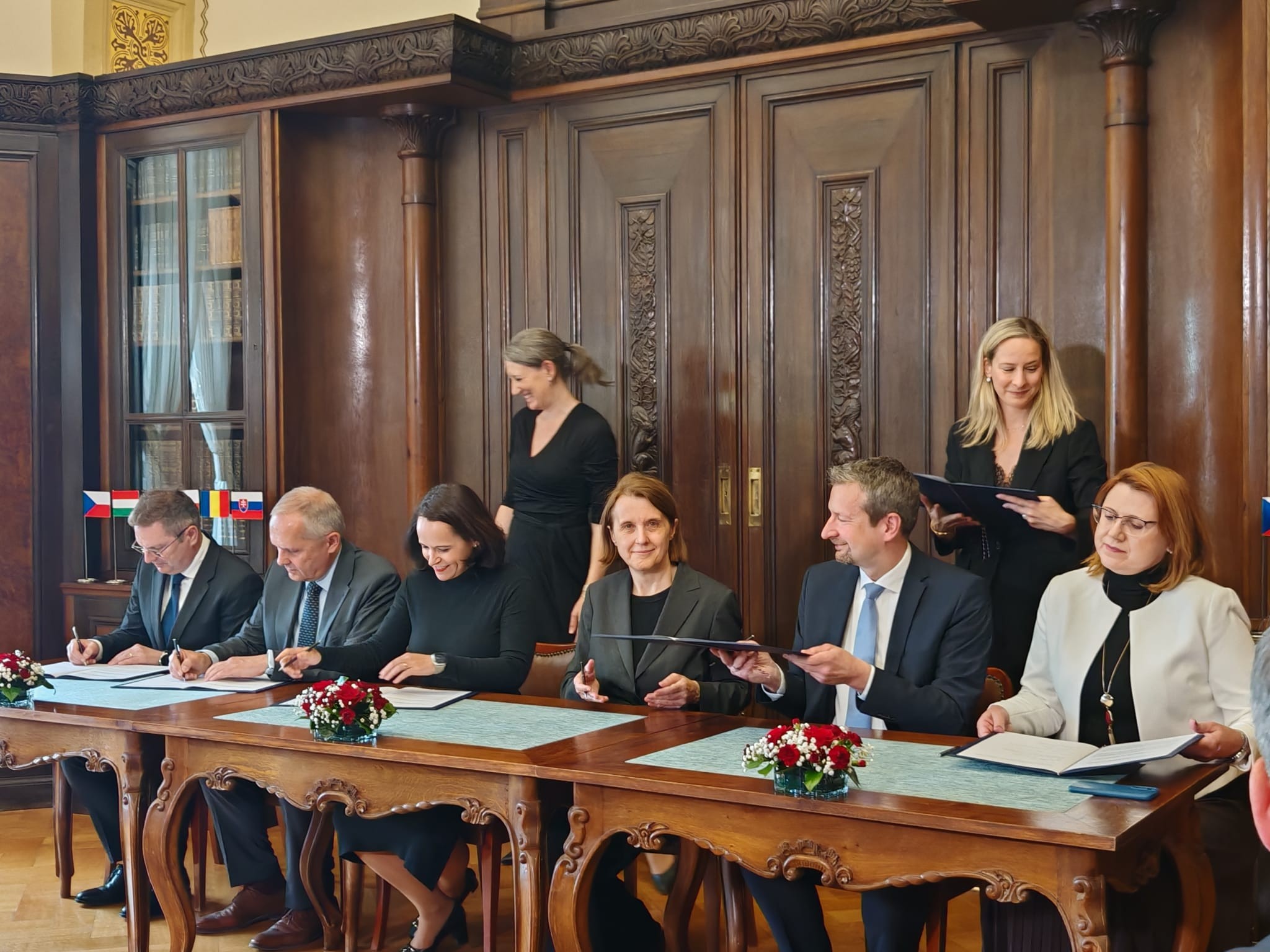 Dokument podpisali: Jana Kotalíková, szefowa kancelarii rządu Czech, Hanna Wróblewska, ministra kultury i dziedzictwa narodowego, Andreas Künne, Ambasador Republiki Federalnej Niemiec, András Baranyi, Ambasador Węgier, Antoaneta Barta, Ambasadorka Rumunii oraz Martin Muránsky, Ambasador Słowacji.