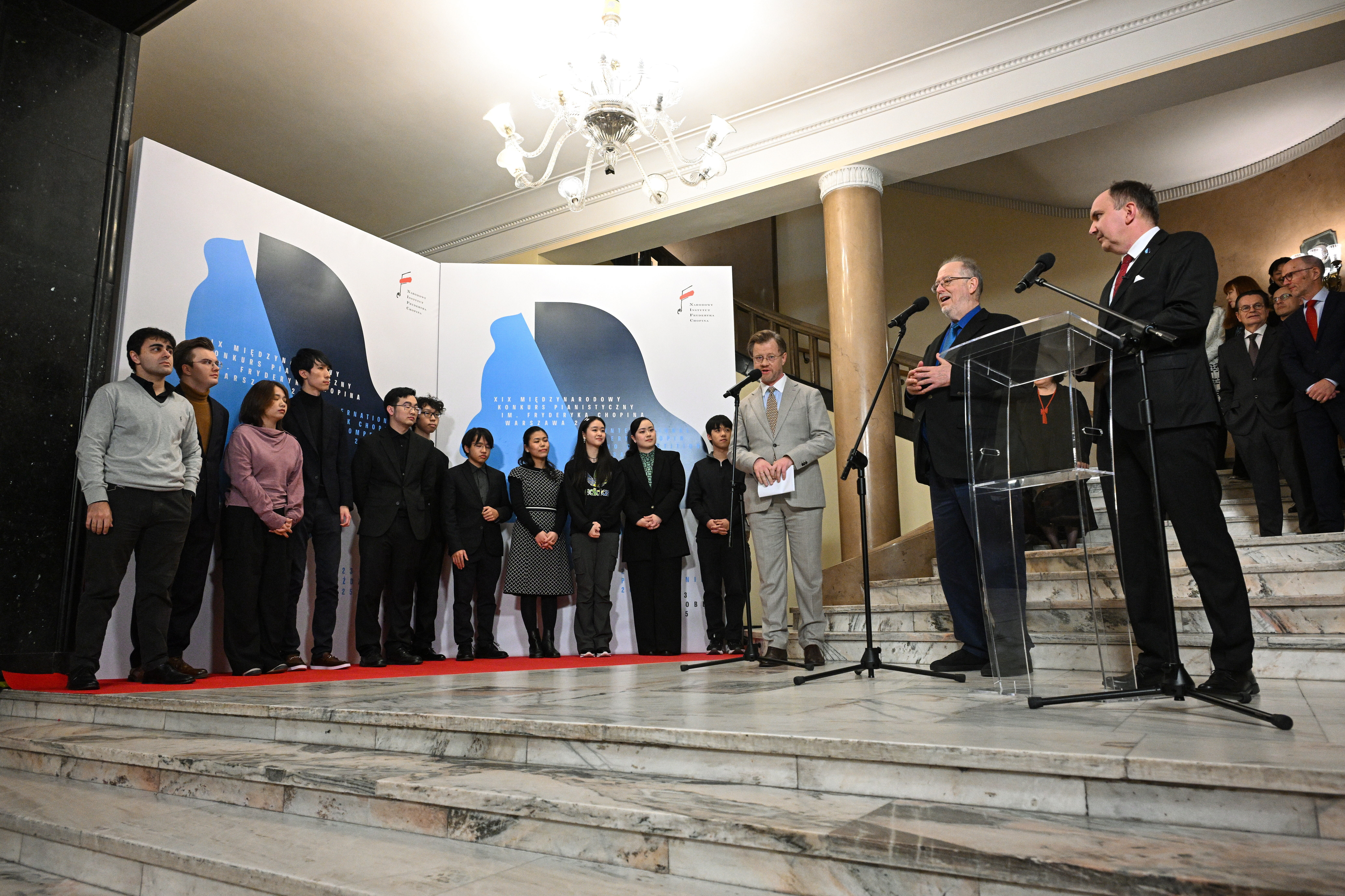 Przesłuchania XIX Międzynarodowego Konkursu Pianistycznego im. Fryderyka Chopina rozpoczęły się 3 października 2025 r. Wśród uczestników najliczniejszą grupę stanowili Chińczycy – reprezentacja tego kraju liczyła aż 28 pianistów! Pod względem liczebności uczestników drugie miejsce zajęły grupy z Polski i Japonii (po 13 osób). Na scenie Filharmonii Narodowej zaprezentowało się również 5 obywateli Kanady, 4 pianistów ze Stanów Zjednoczonych, po 3 wykonawców z Chińskiego Tajpej, Korei Południowej, Wielkiej Brytanii i Włoch, a także reprezentanci m.in. Bułgarii, Czech, Francji, Gruzji, Hiszpanii, Malezji, Portugalii i Wietnamu.