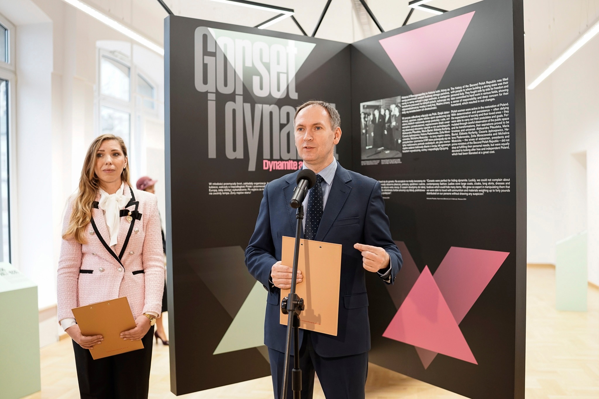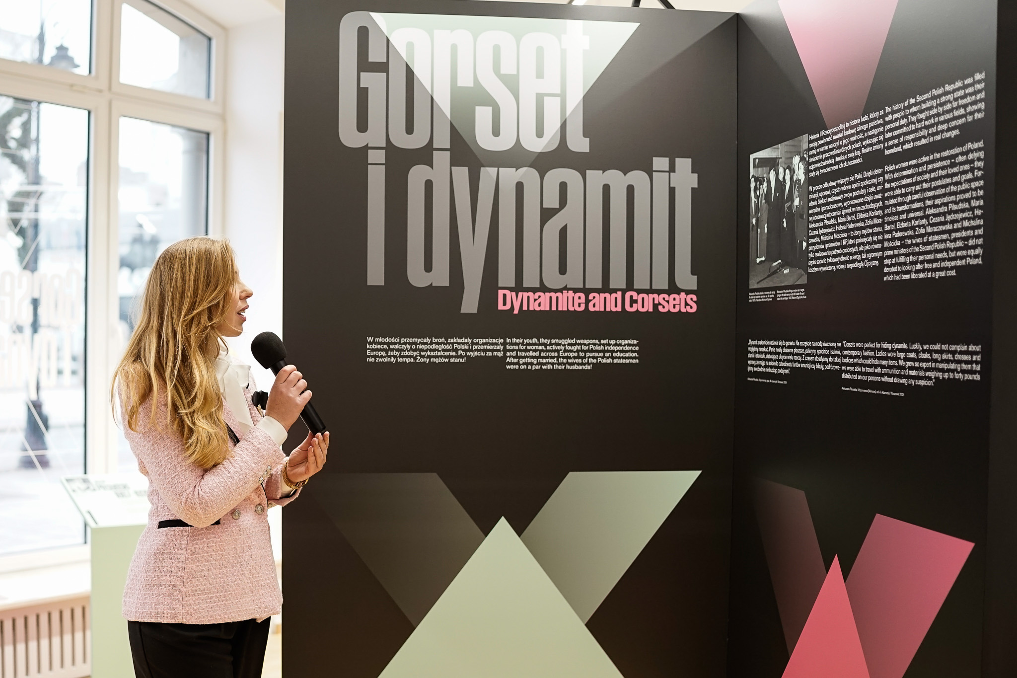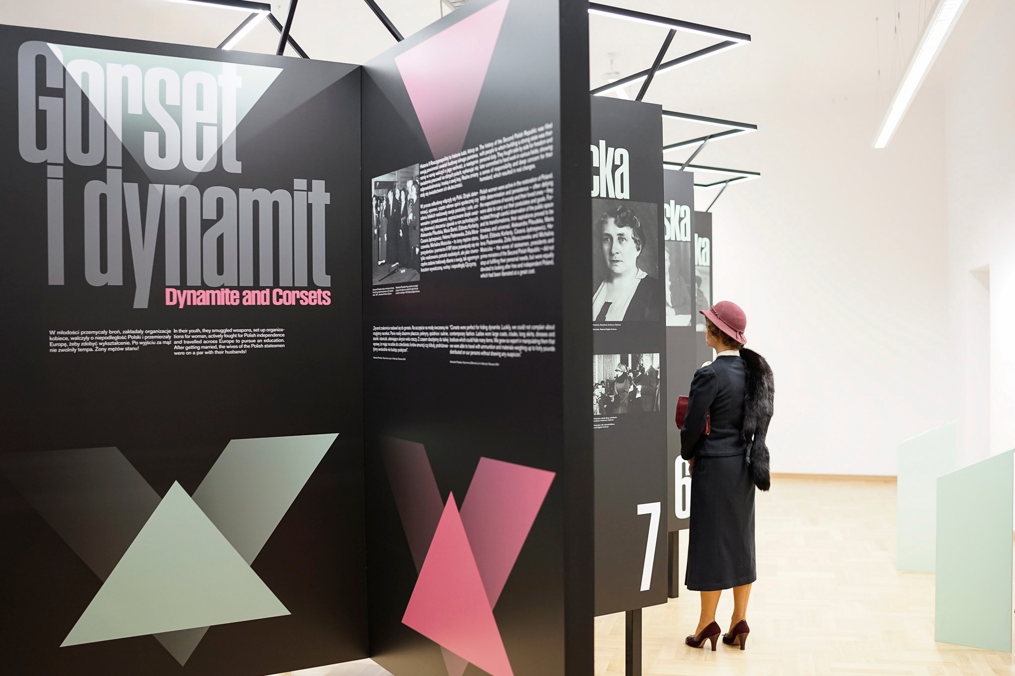 „Dynamit znakomicie nadawał się do gorsetu. Na szczęście na modę ówczesną nie mogłyśmy narzekać. Panie nosiły obszerne płaszcze, peleryny, spódnice i suknie, staniki i staniczki, ułatwiające ukrycie wielu rzeczy. Z czasem doszłyśmy do takiej wprawy, że mając na sobie do czterdziestu funtów amunicji czy bibuły, podróżowałyśmy swobodnie nie budząc podejrzeń” – opisywała we wspomnieniach Aleksandra Piłsudska. Oprócz niej bohaterkami wystawy „Gorset i dynamit” są: Maria Bartel, Elżbieta Korfanty, Cezaria Jędrzejewicz, Helena Paderewska, Zofia Moraczewska i Michalina Mościcka, a więc żony mężów stanu, prezydentów i premierów II RP. Kobiety, które poświęcały się nie tylko realizowaniu potrzeb osobistych, ale jako równorzędne zadanie traktowały dbanie o wolną Ojczyznę, której niepodległość została wywalczona ogromnym kosztem.