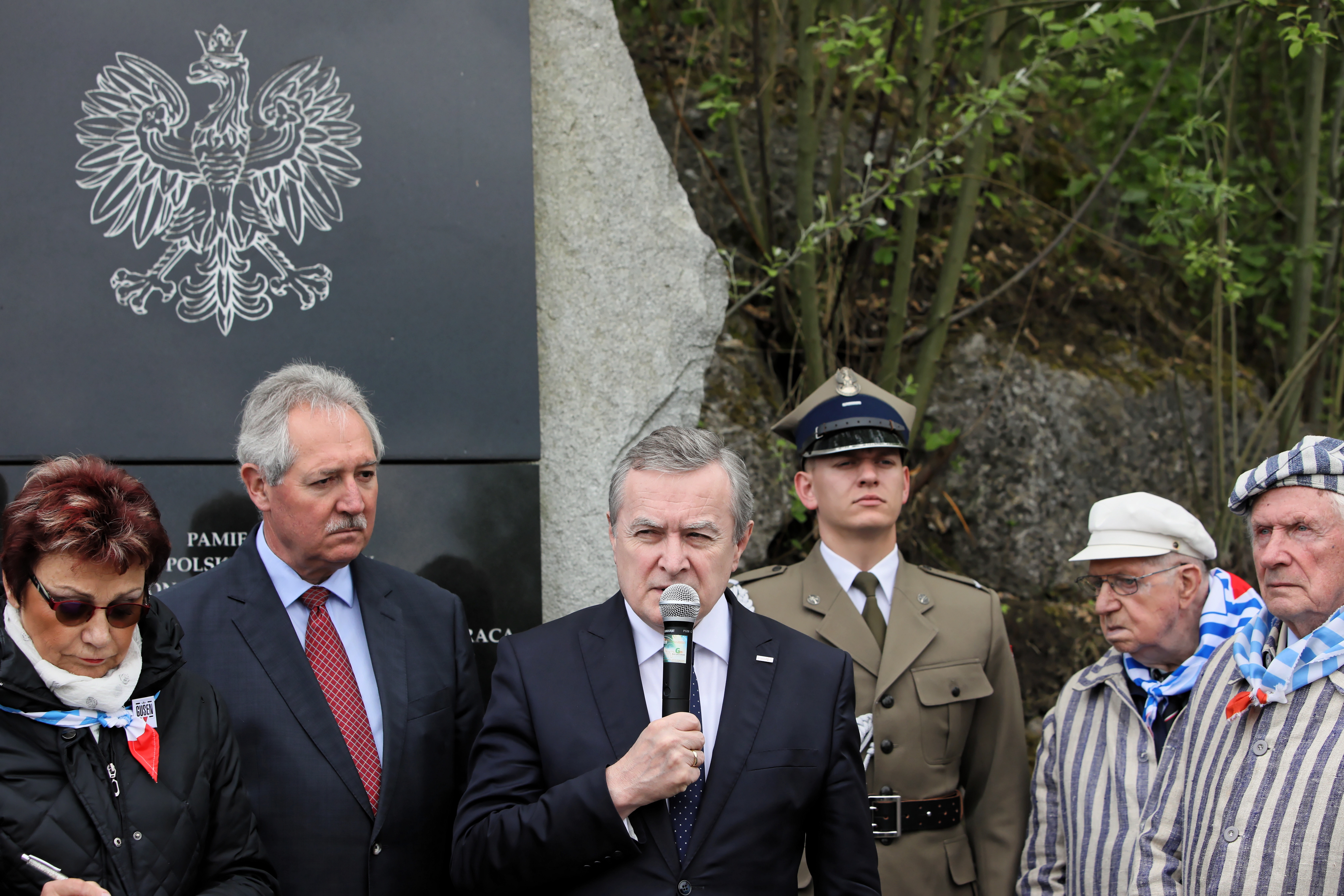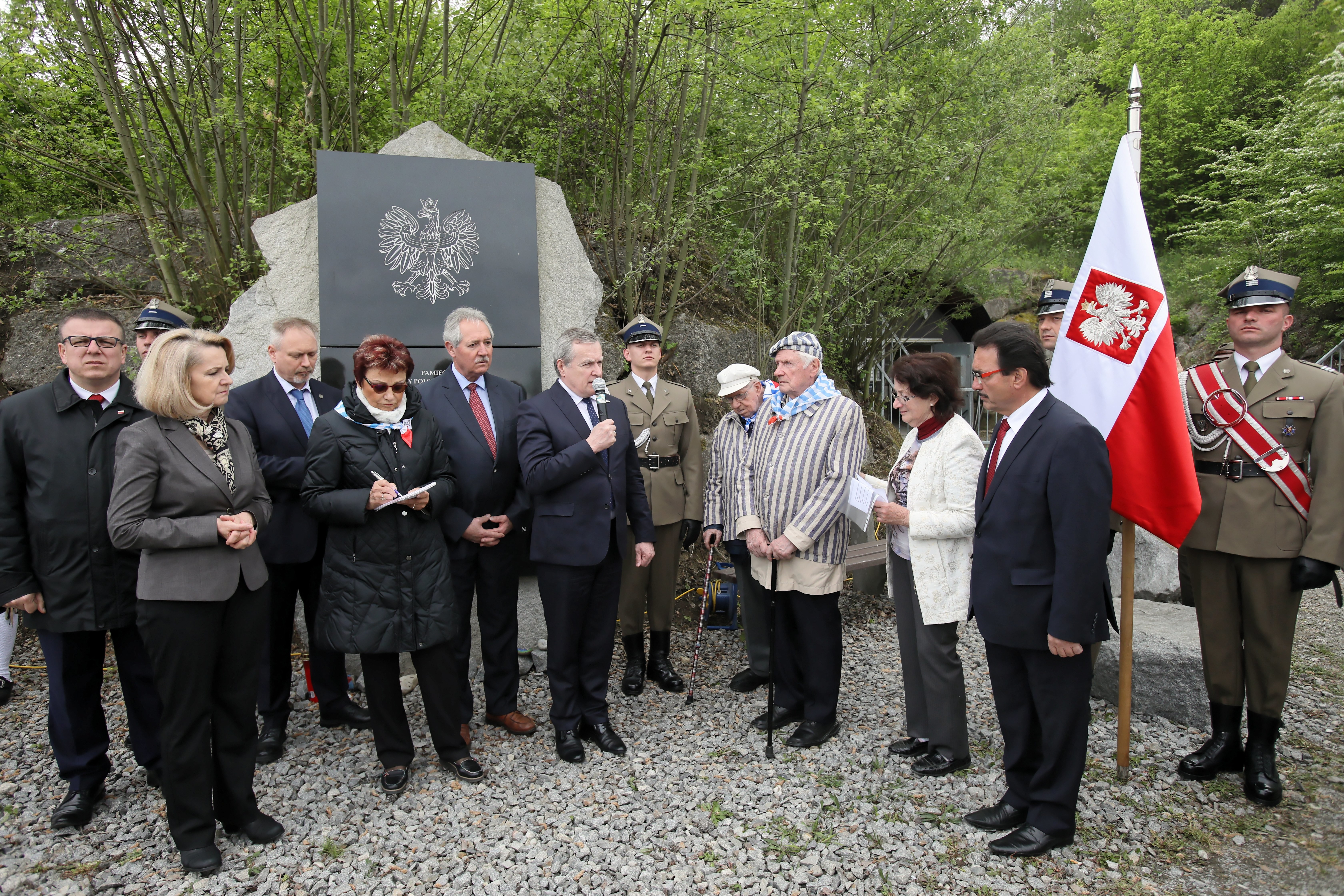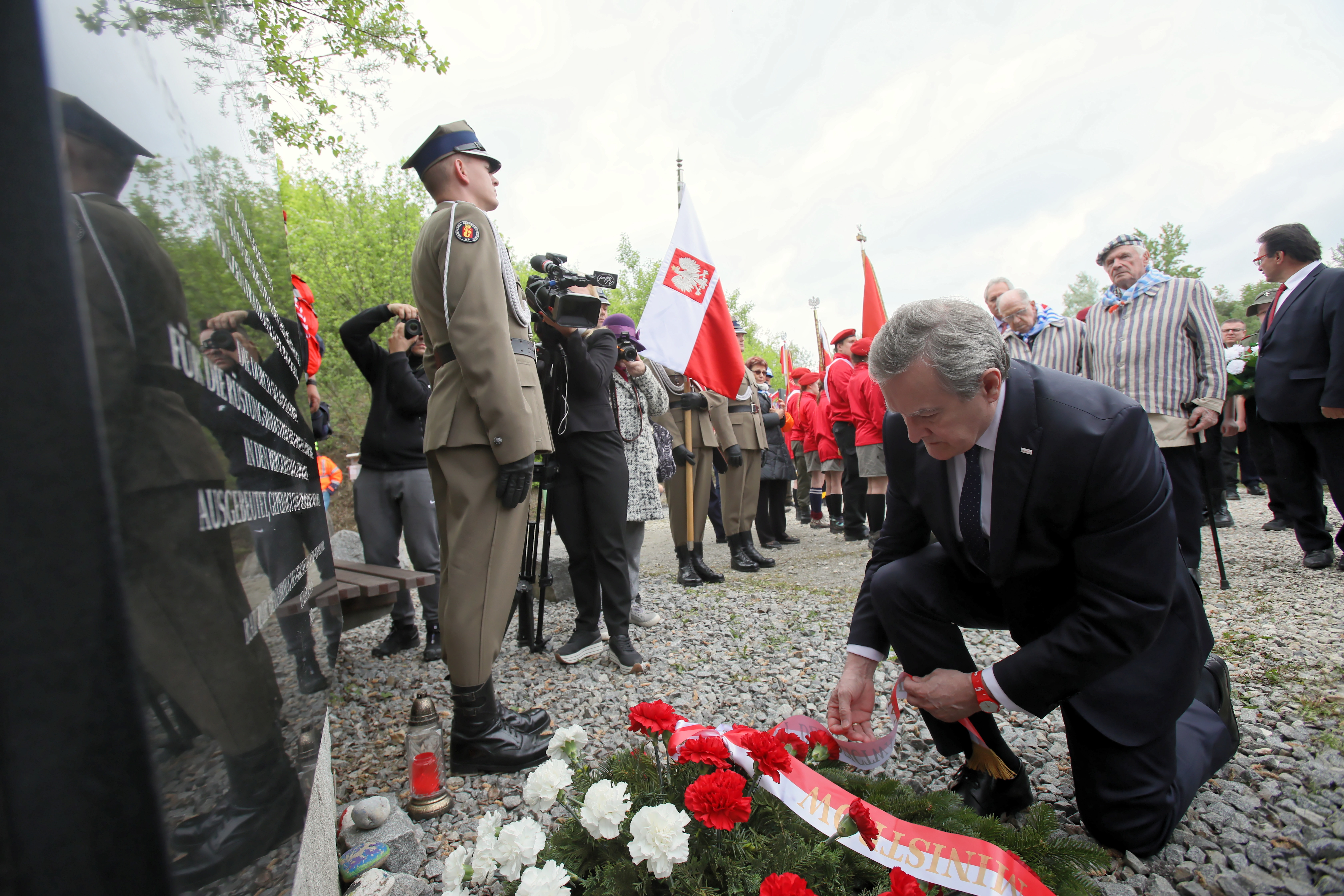 Podziękował "w imieniu Polski tym wszystkim przedstawicielom społeczeństwa austriackiego, przede wszystkim członkom lokalnych grup i komitetów, których reprezentantami są Andrea i Erich Wahl i Martha Gammer, którzy od lat dbają o pamięć o tym, co tu miało miejsce".