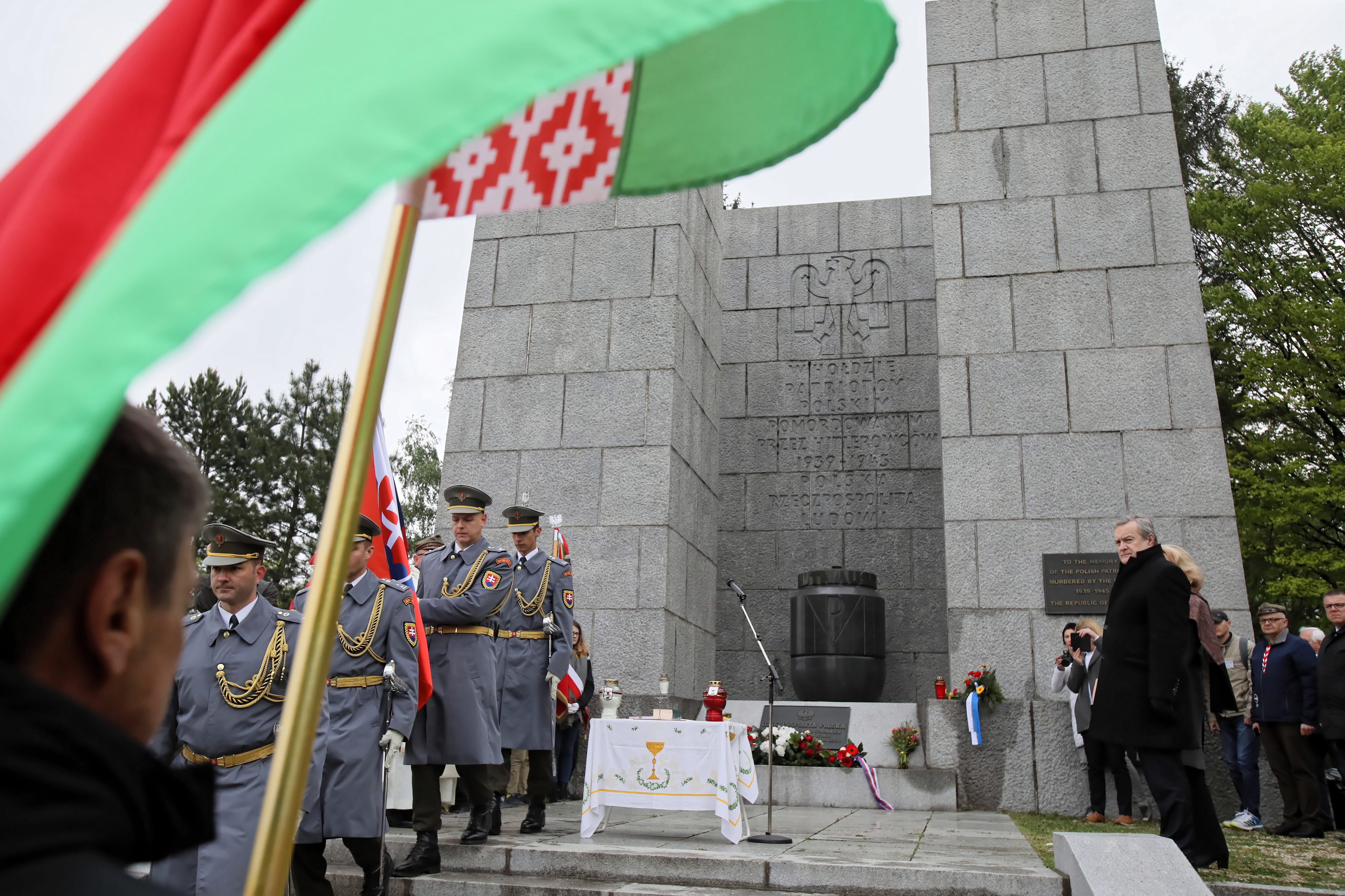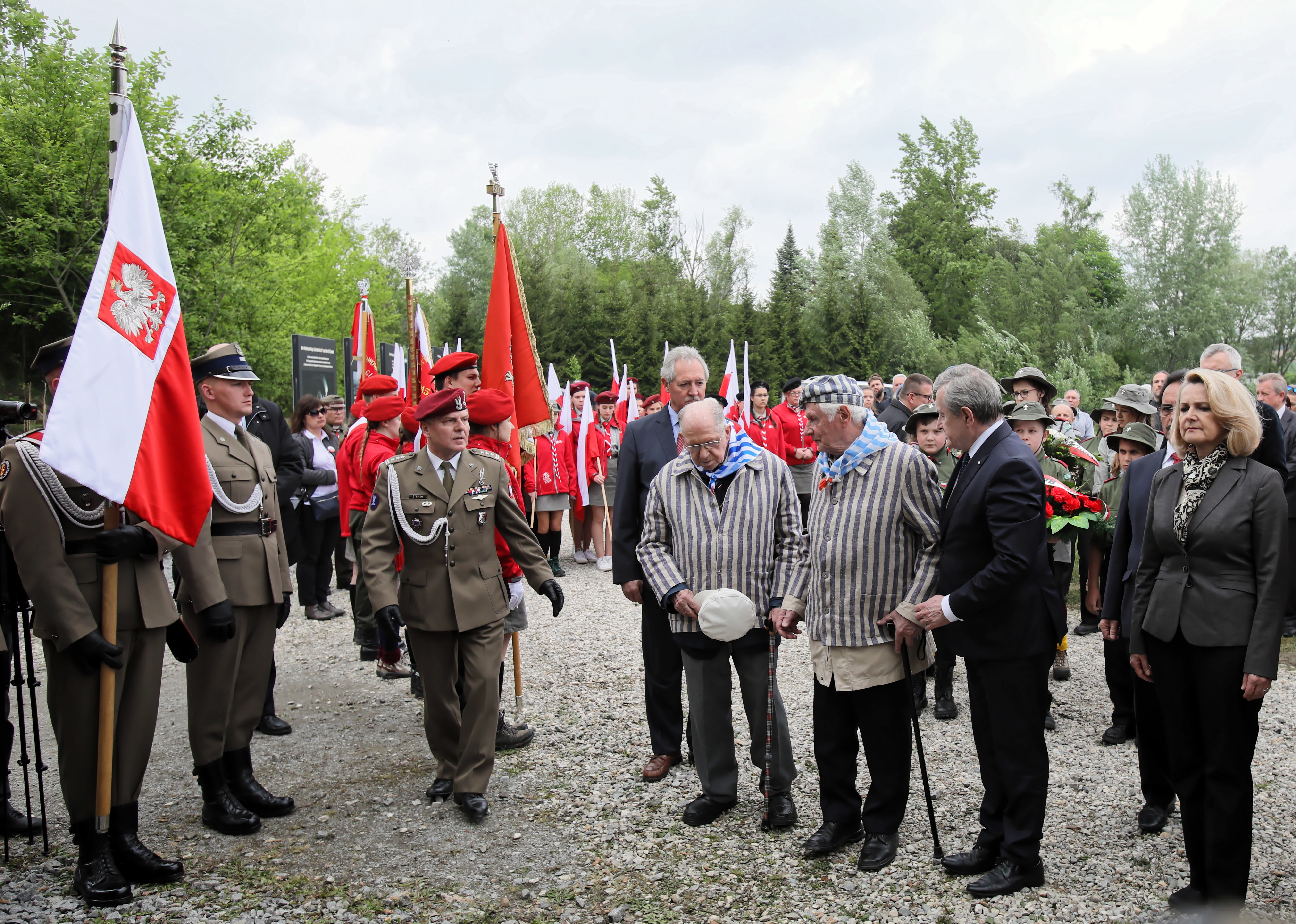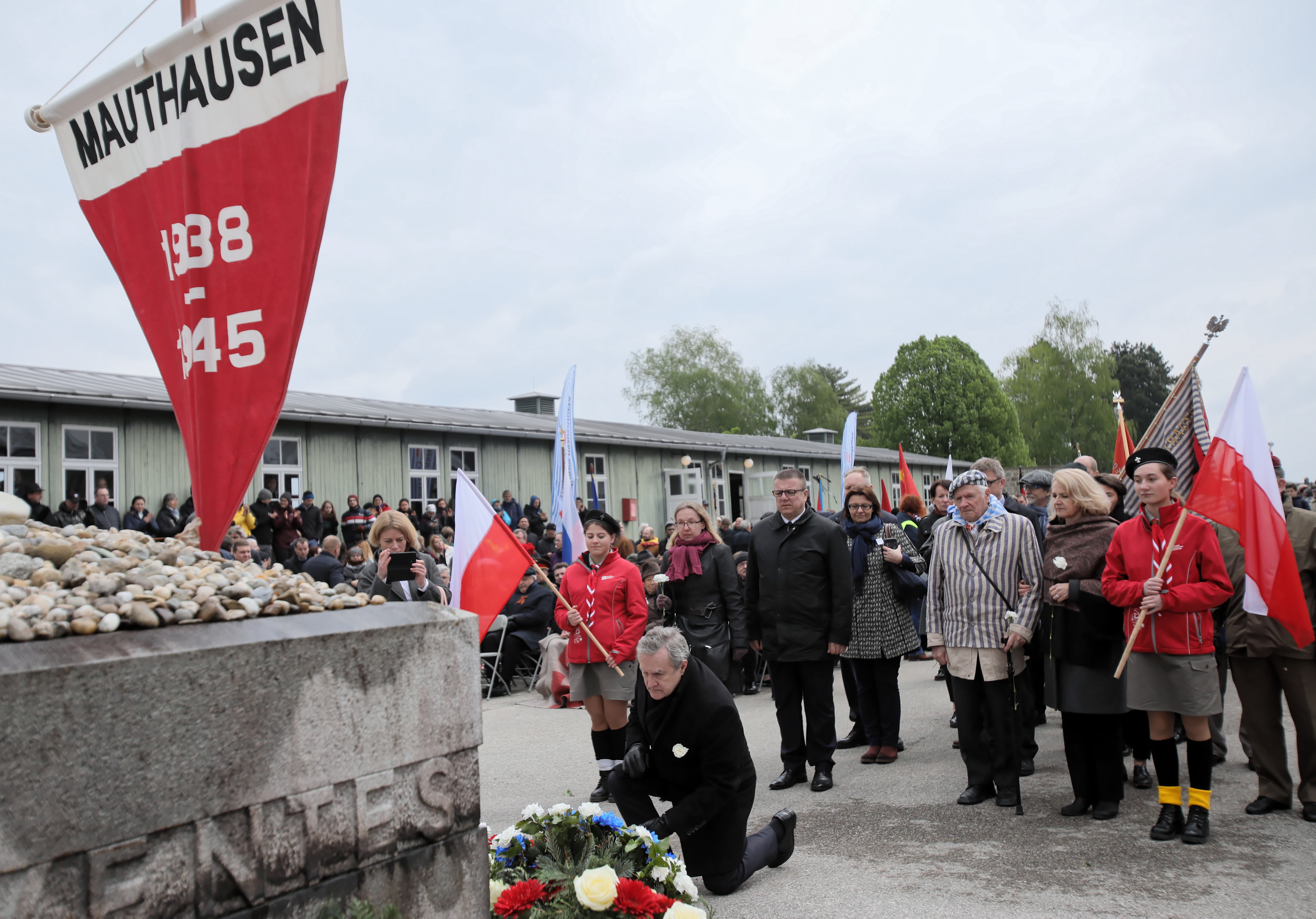 Podziękował "w imieniu Polski tym wszystkim przedstawicielom społeczeństwa austriackiego, przede wszystkim członkom lokalnych grup i komitetów, których reprezentantami są Andrea i Erich Wahl i Martha Gammer, którzy od lat dbają o pamięć o tym, co tu miało miejsce".