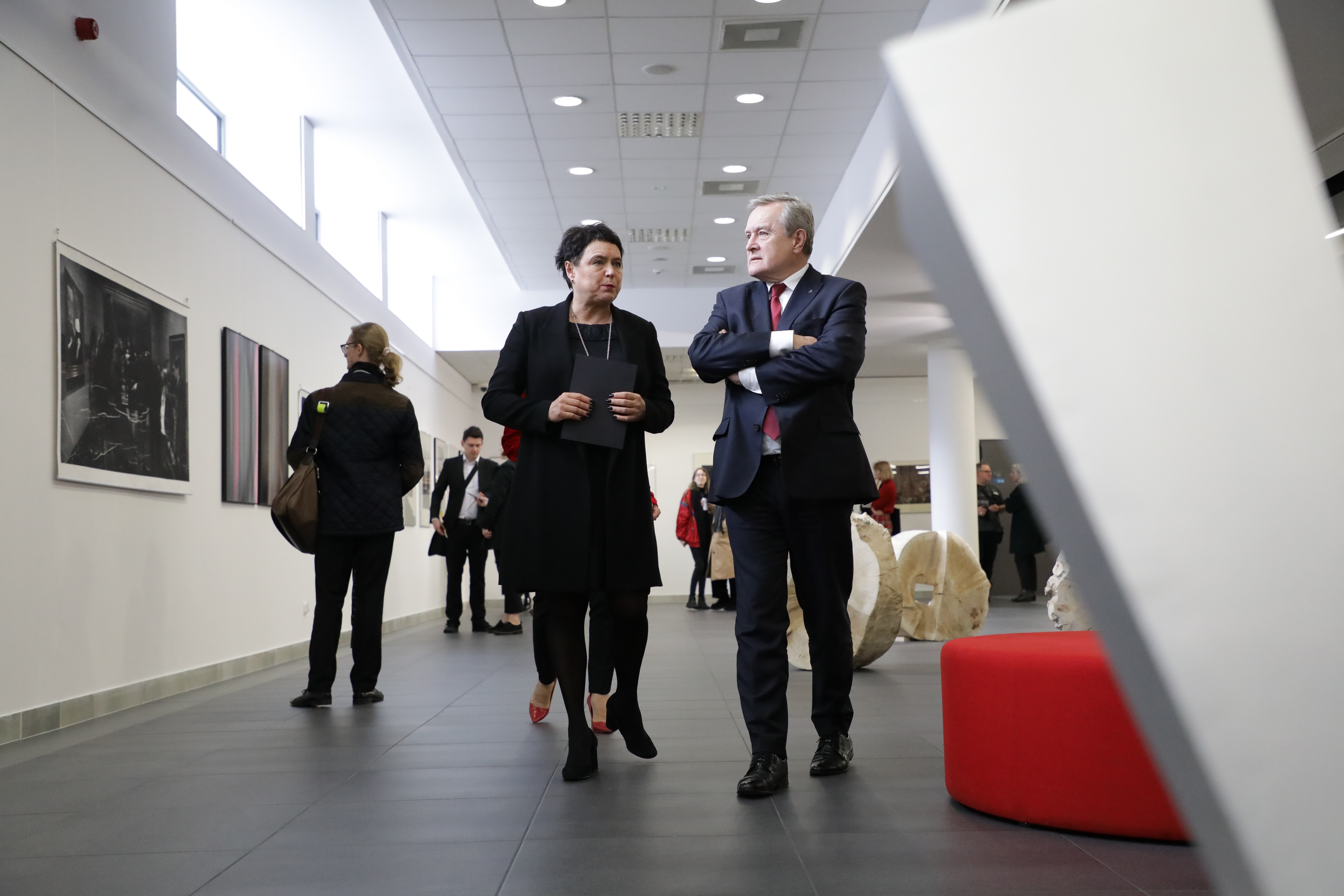 Minister kultury po zakończeniu inauguracji roku akademickiego obejrzał wystawę prac studentów łódzkiej ASP oraz retrospektywną wystawę Józefa Panfila w Galerii Kobro.