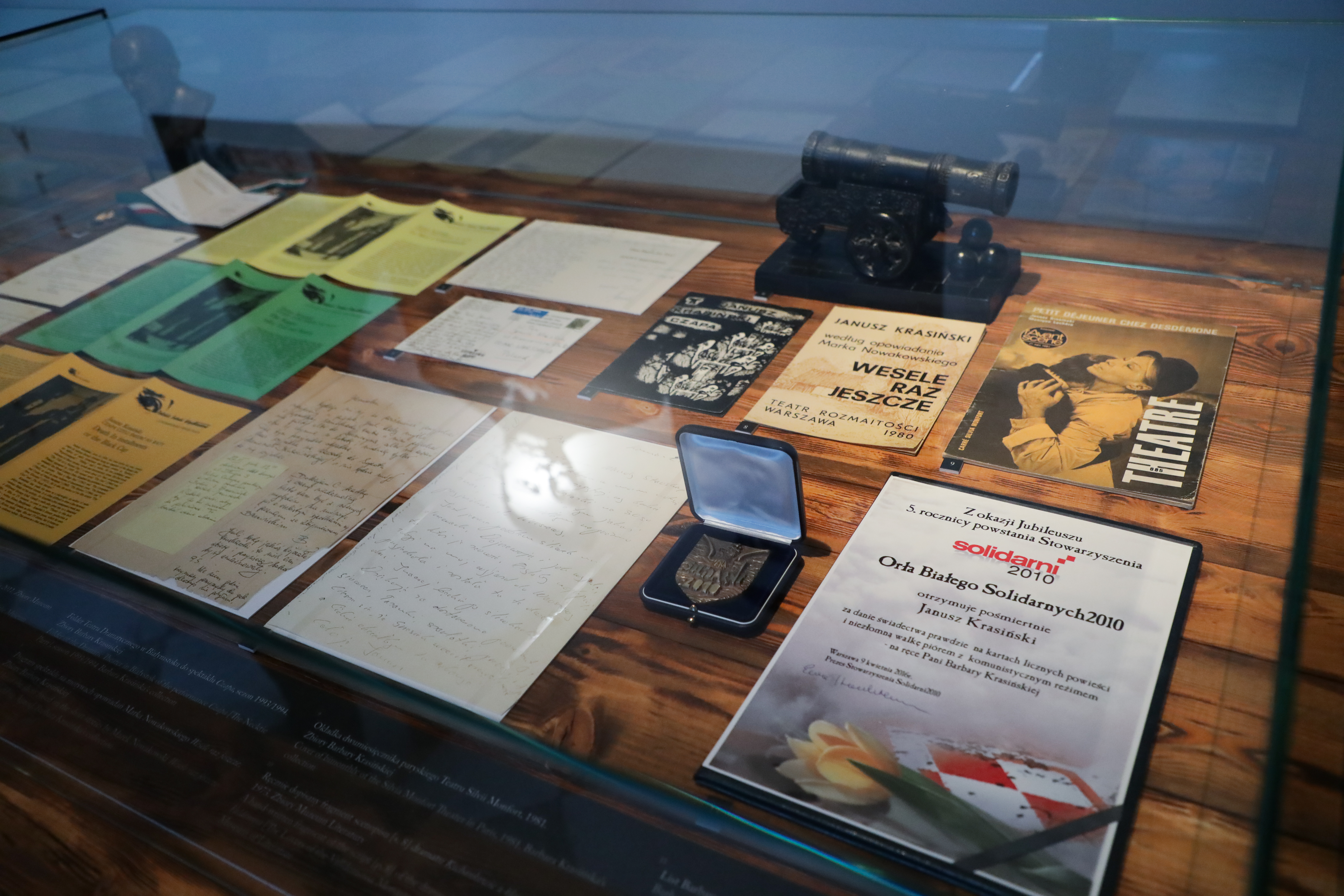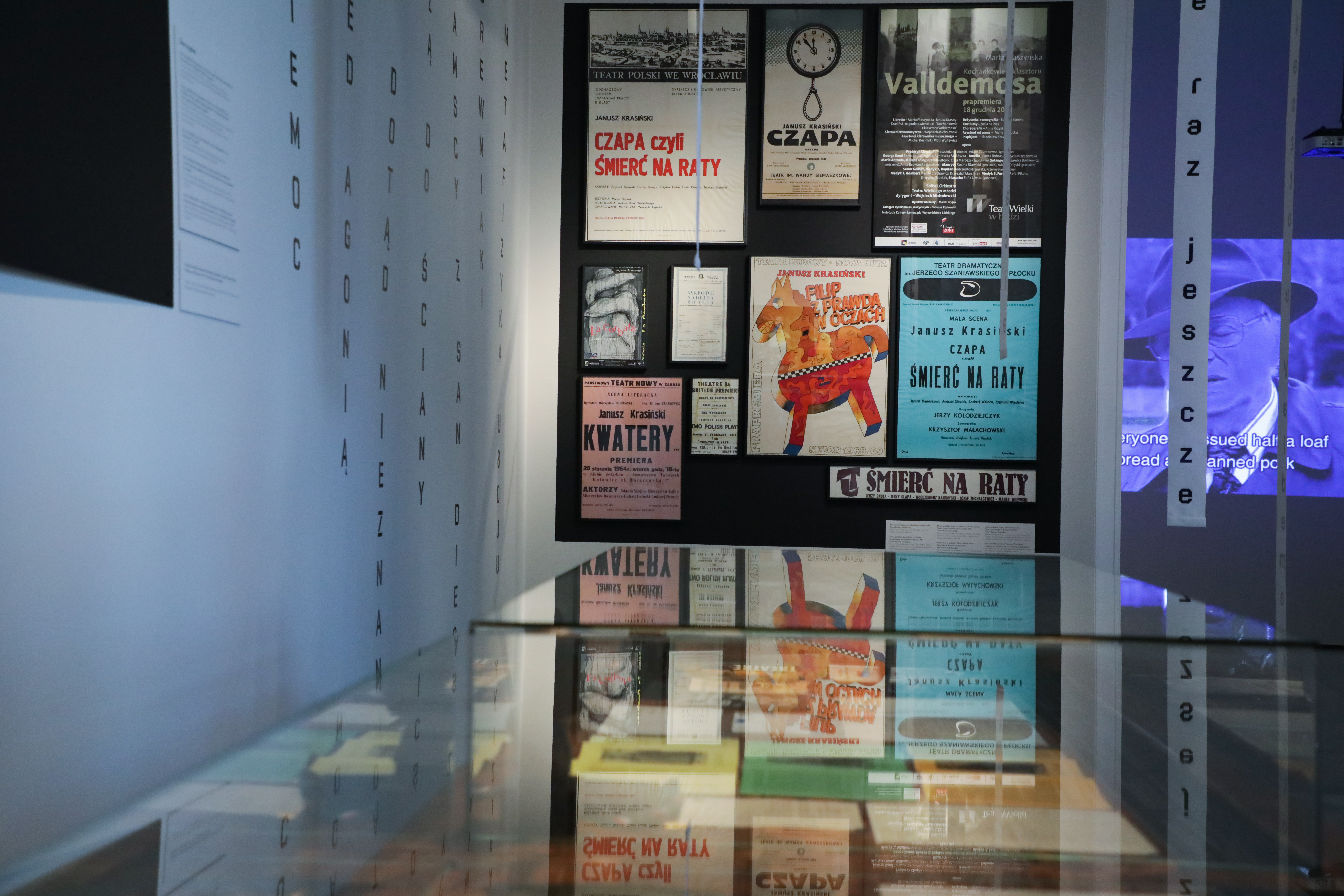 Wystawa prezentuje również materiały audio z wypowiedzią pisarza dla Muzeum Literatury z 2012 r. oraz fragment powieści „Na stracenie” czytany przez Wojciecha Sikorę. Postać artysty przybliża też film dokumentalny pt. „Cenzurowany życiorys” w reżyserii Joanny Żamojdo, w którym Krasiński opowiada o swoim życiu naznaczonym dramatycznymi doświadczeniami. Ekspozycję dopełniają cenne archiwalia m.in. z prywatnego zbioru żony - Barbary Krasińskiej, Muzeum Literatury oraz Instytutu Teatralnego.