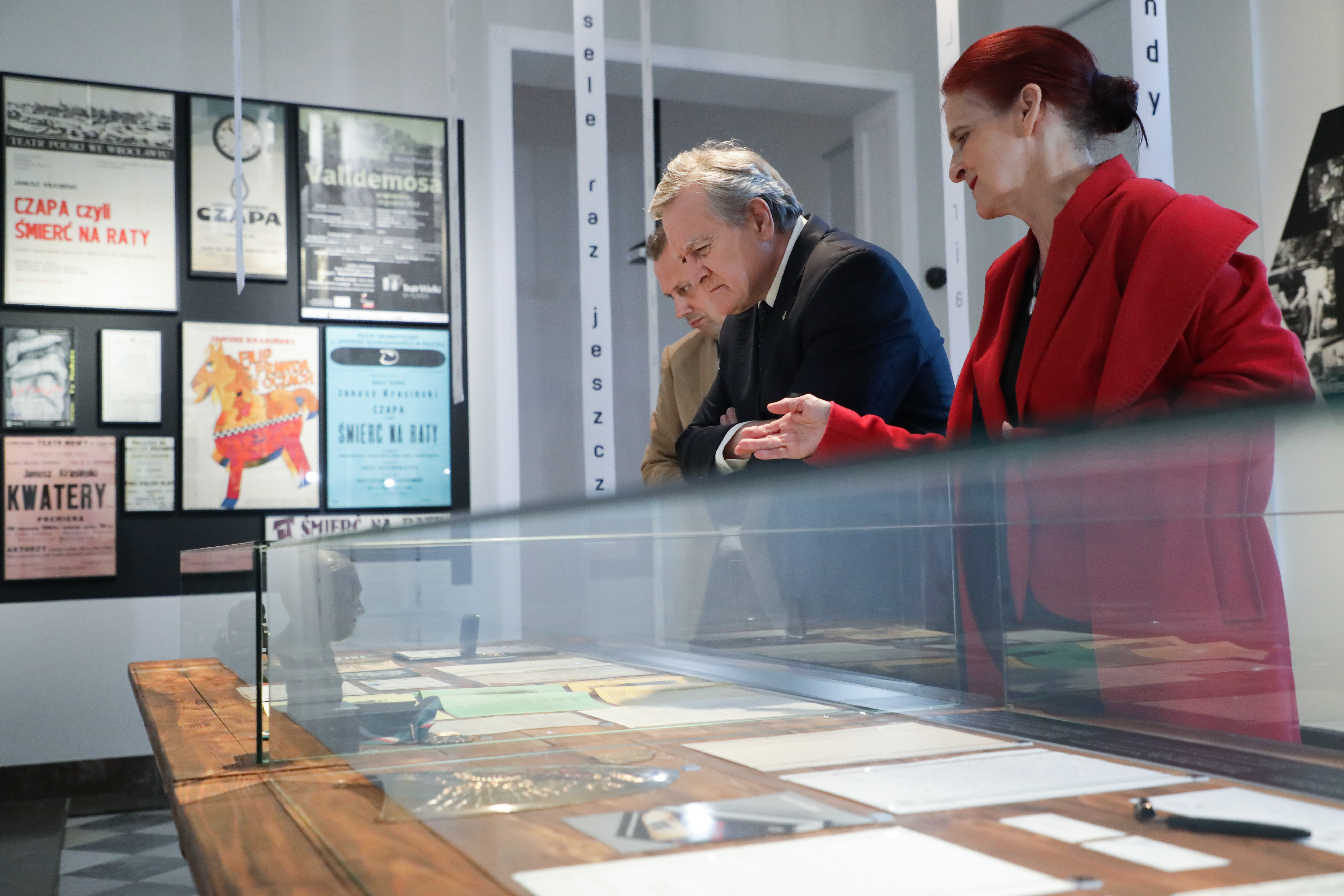 Zapraszając do zwiedzenia wystawy poświęconej postaci i twórczości Janusza Krasińskiego, minister kultury i dziedzictwa narodowego, zachęcił do zapoznania się z poezją pisarza oraz zaapelował do polskich teatrów o sięganie do jego dramaturgicznej twórczości.