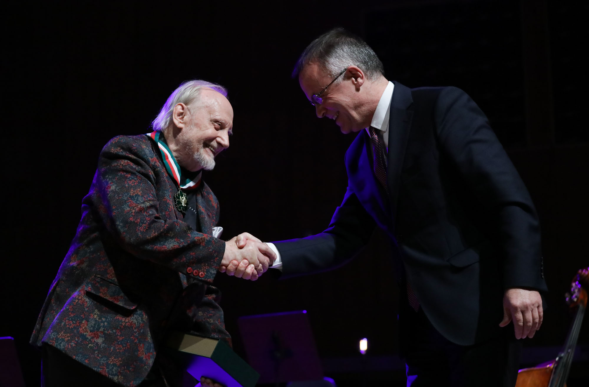 „Z okazji jubileuszu osiemdziesiątych urodzin proszę przyjąć najserdeczniejsze życzenia, a także słowa najwyższego uznania dla wspaniałego dorobku artystycznego, istotnie wzbogacającego polską kulturę” – napisał w liście skierowanym do Włodzimierza Nahornego wicepremier prof. Piotr Gliński. Podczas koncertu jubileuszowego „Jego Portret”, który odbył się dzisiaj w Studiu Koncertowym Polskiego Radia im. W. Lutosławskiego w Warszawie, list odczytał wiceminister Jarosław Sellin. Sekretarz Stanu, w imieniu Ministra Kultury i Dziedzictwa Narodowego, odznaczył jubilata Złotym Medalem Zasłużony Kulturze „Gloria Artis”.