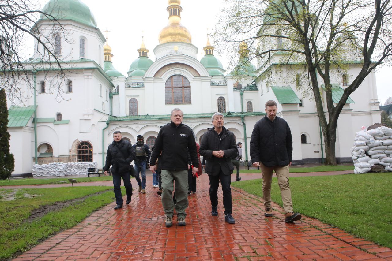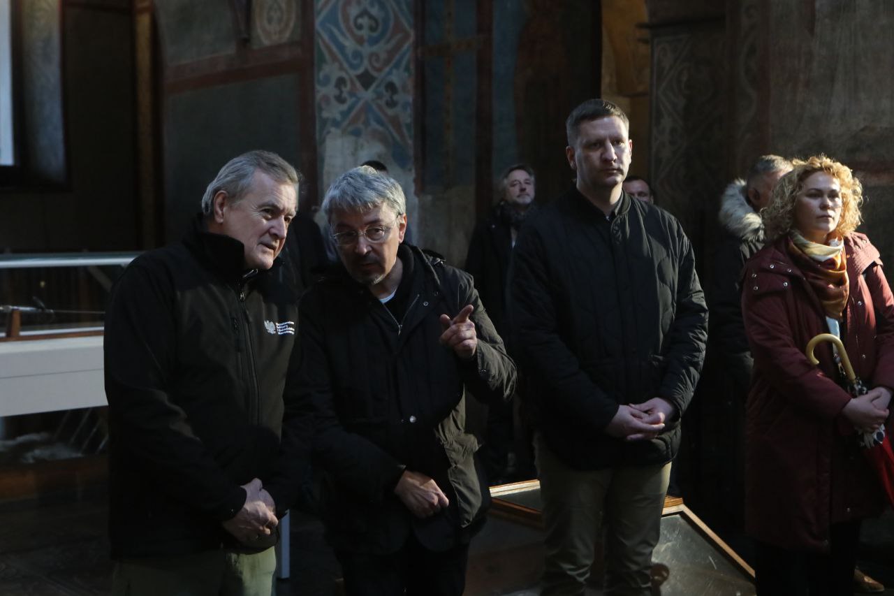 Wczoraj usłyszeliśmy informację, że nie będzie posiedzenia Komitetu Światowego Dziedzictwa UNESCO w Kazaniu. Sobór Mądrości Bożej w Kijowie, który dziś odwiedziliśmy, jest symbolem historii i państwowości Ukrainy, wielkiego i bogatego kulturowo kraju. Chciałbym jeszcze raz podkreślić absurdalność sytuacji, w której Rosja nadal jest przewodniczącym Komitetu Światowego Dziedzictwa UNESCO, którego celem jest zachowanie dziedzictwa, a nie jego niszczenie. Głęboko wierzę, że wspólnie z Ukrainą i Polską będziemy rozwijać współpracę w formacie Trójkąta Lubelskiego. Po pierwsze, zarówno Litwa, jak i Polska, aktywnie wspierają integrację Ukrainy z Unią Europejską. Ukraina już teraz jest częścią Europy, broni naszych wspólnych wartości bronią i krwią swoich obywateli – mówił minister kultury Litwy, Simonas Kairys. –Dla nas, ministrów kultury, bardzo ważne jest mówienie o wojnie także w sferze informacyjnej. Musimy jeszcze bardziej aktywnie zabiegać o zablokowanie rosyjskich i białoruskich kanałów telewizyjnych na terytorium UE i rozwiązywać inne sprawy związane z walką z dezinformacją. Wróg zawsze próbuje zatruć nasze myśli, nasze myślenie, a potem wkracza z bronią.