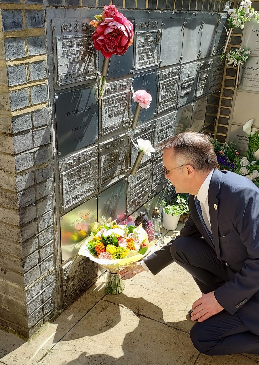 Na zakończenie wizyty w Londynie wiceminister Sellin oddał hołd pamięci Józefa Mackiewicza, składając kwiaty w miejscu spoczynku pisarza – przy kolumbarium na terenie parafii rzymsko-katolickiej p.w. św. Andrzeja Boboli w Londynie.