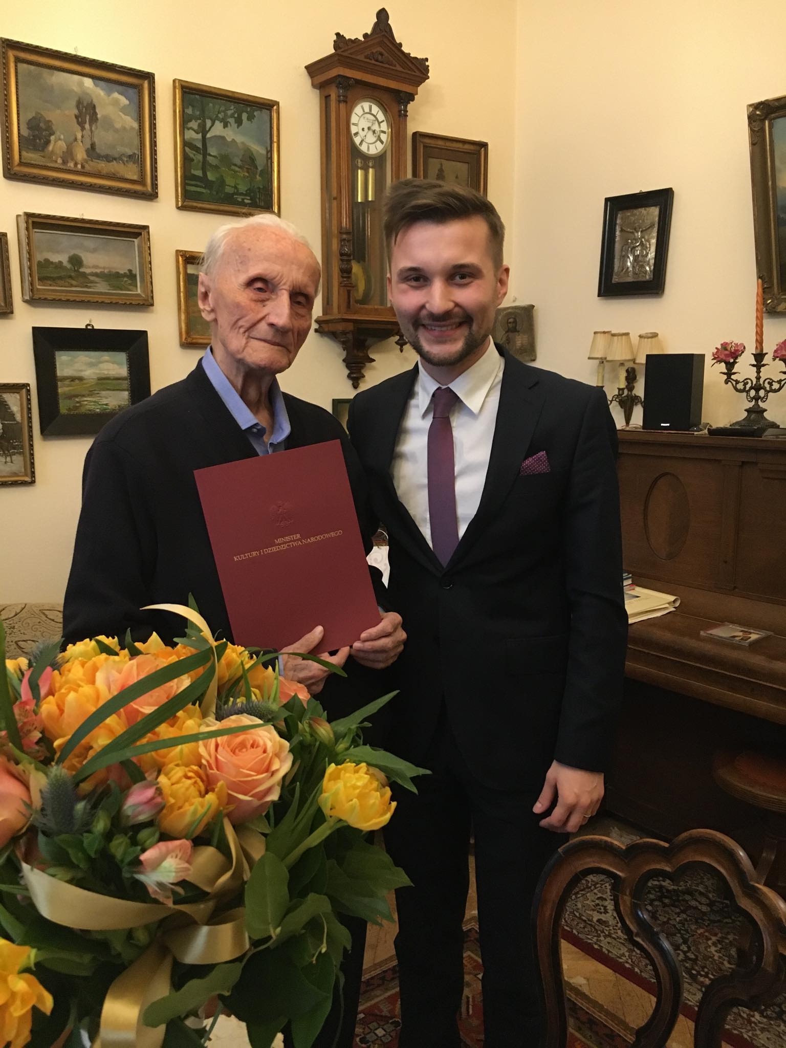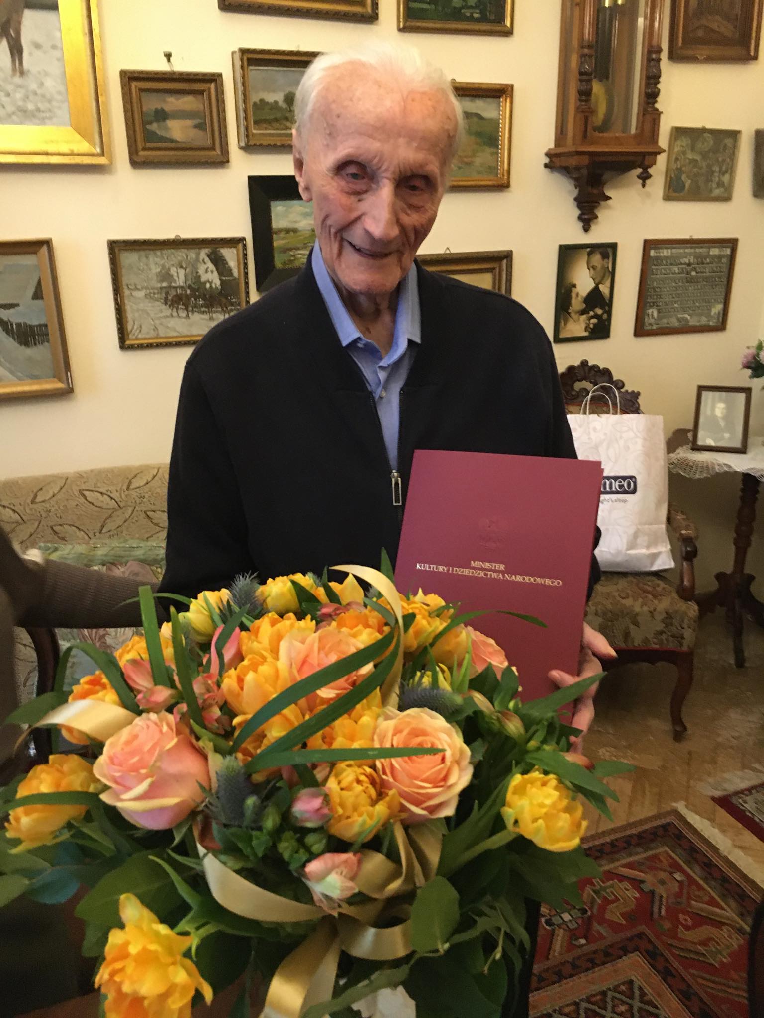 z prawdziwą radością korzystam z tej szczególnej okazji, jaką jest jubileusz Pańskich dziewięćdziesiątych urodzin, by przekazać najserdeczniejsze życzenia zdrowia i wszelkiej pomyślności. Dołączam także wyrazy uznania dla dorobku artystycznego i dydaktycznego, istotnie wzbogacającego naszą kulturę narodową.