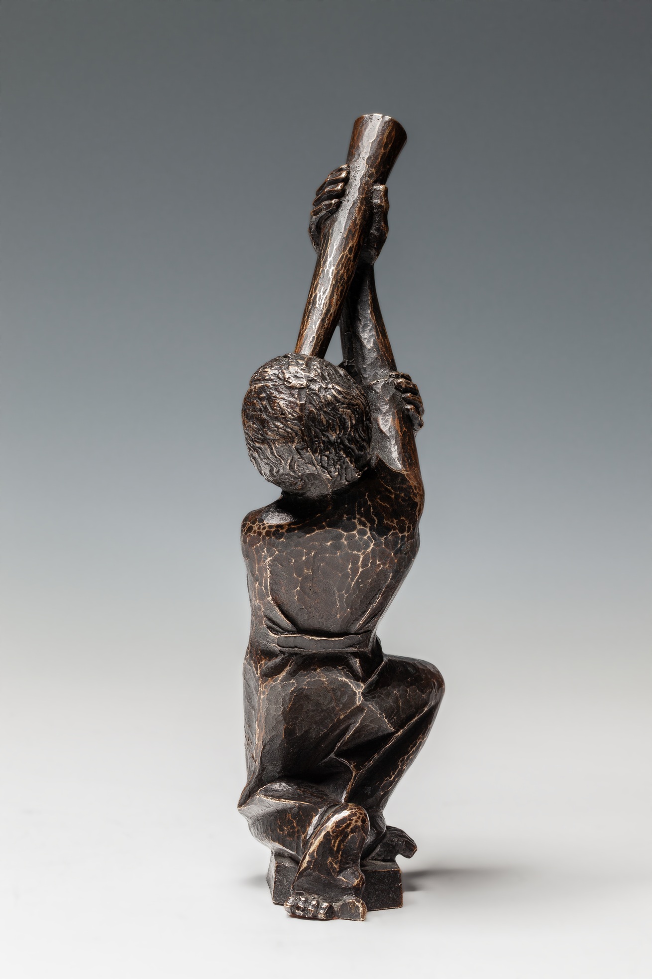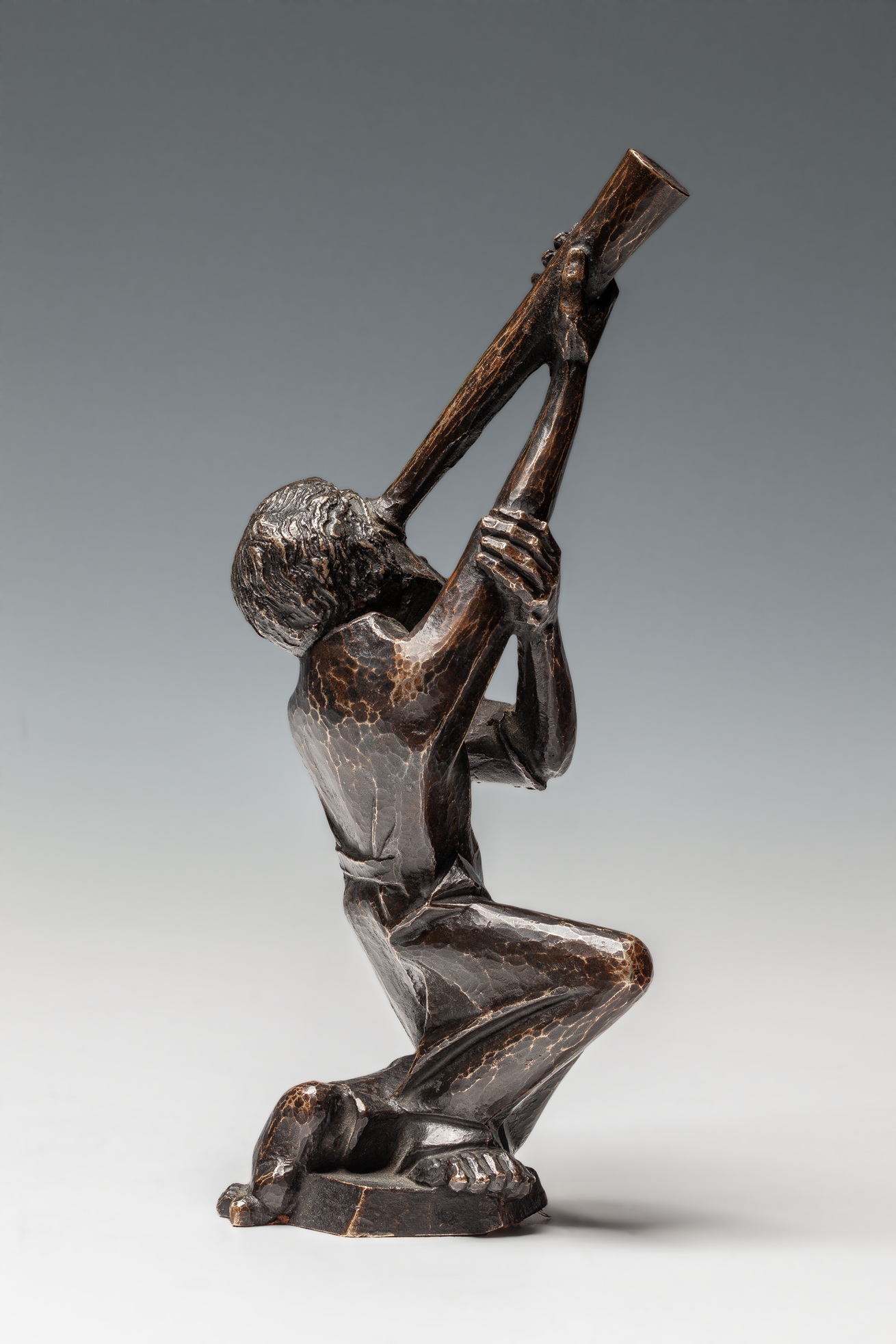 Niewielka, odlana z brązu statuetka powstała pod koniec lat 20. XX wieku. Była elementem dekoracji kraty na klatce schodowej Urzędu Pocztowego przy ul. Krasińskiego 1 we Wrocławiu. Na cały zespół niewielkich rzeźb umieszczonych w tym miejscu składały się 22 pełnoplastyczne figury, które prezentowały różne indywidualności i typy ludzkie. Wśród nich byli m.in. mężczyzna w kapeluszu, garbus trzymający wielkie pióro, mężczyzna z prosięciem, mężczyzna z uniesioną ręką czy mężczyzna dźwigający książkę i odważnik.