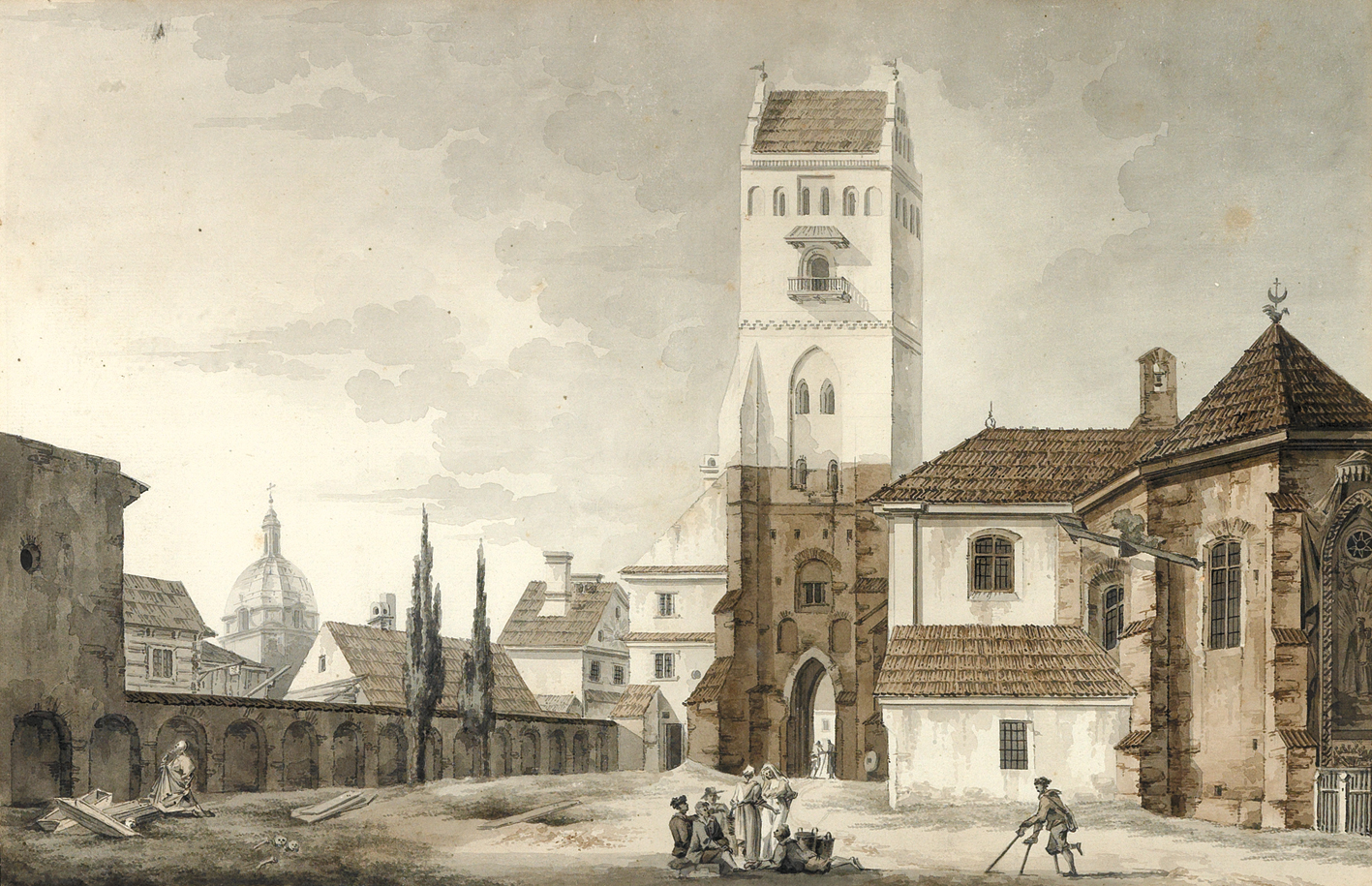 Akwarele Zygmunta Vogla (1764 – 1826) „Widok cmentarza przy kościele Panny Marii” oraz „Widok kościoła Karmelitów w Warszawie”