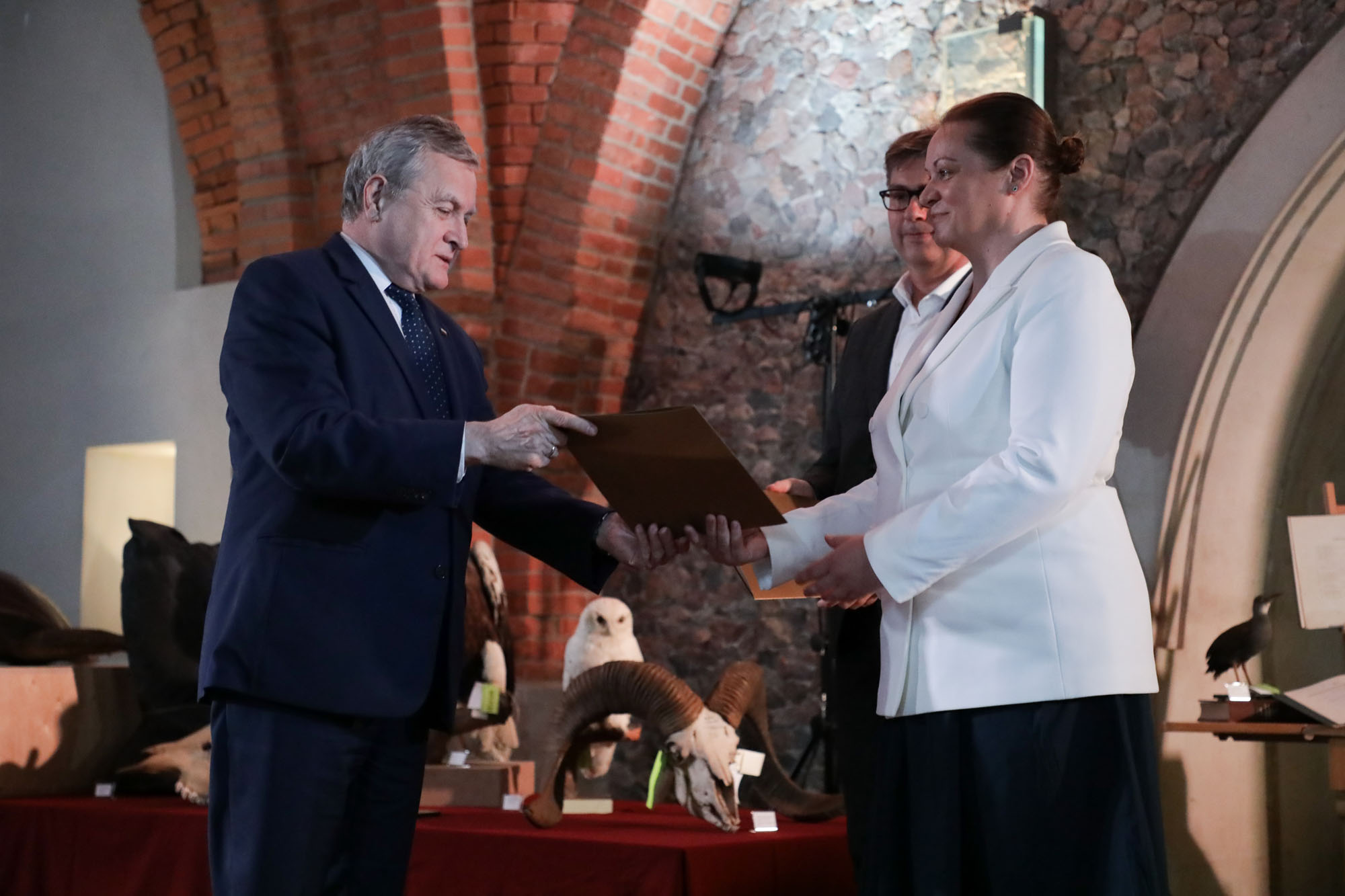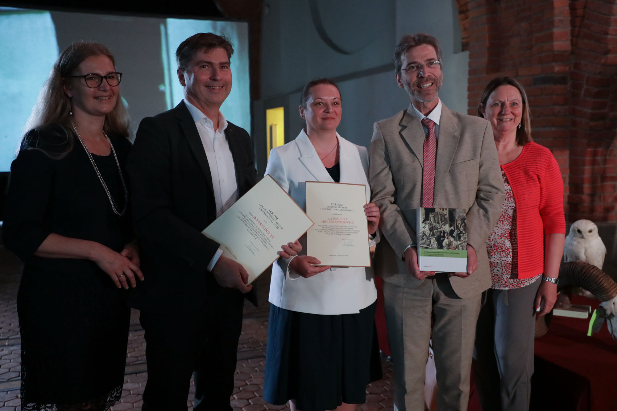 W uznaniu zasług dla kultury i nauki polskiej oraz wkładu w odzyskanie dla polskich zbiorów publicznych cennych okazów zoologicznych wicepremier prof. Piotr Gliński wręczył dyplomy dr Dominice Mierzwie-Szymkowiak z Muzeum i Instytutu Zoologii PAN oraz Robertowi Lindnerowi z Haus der Natur.