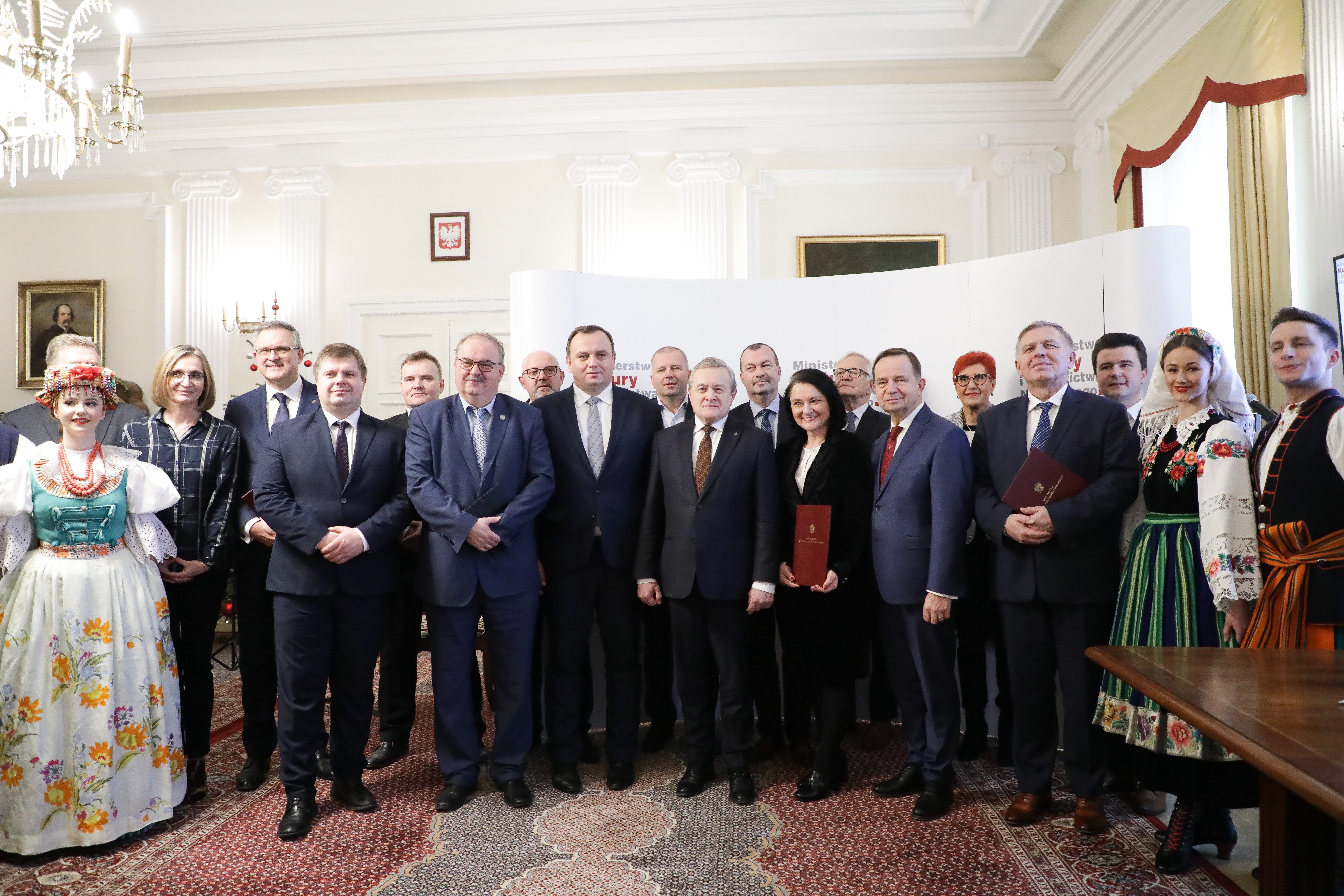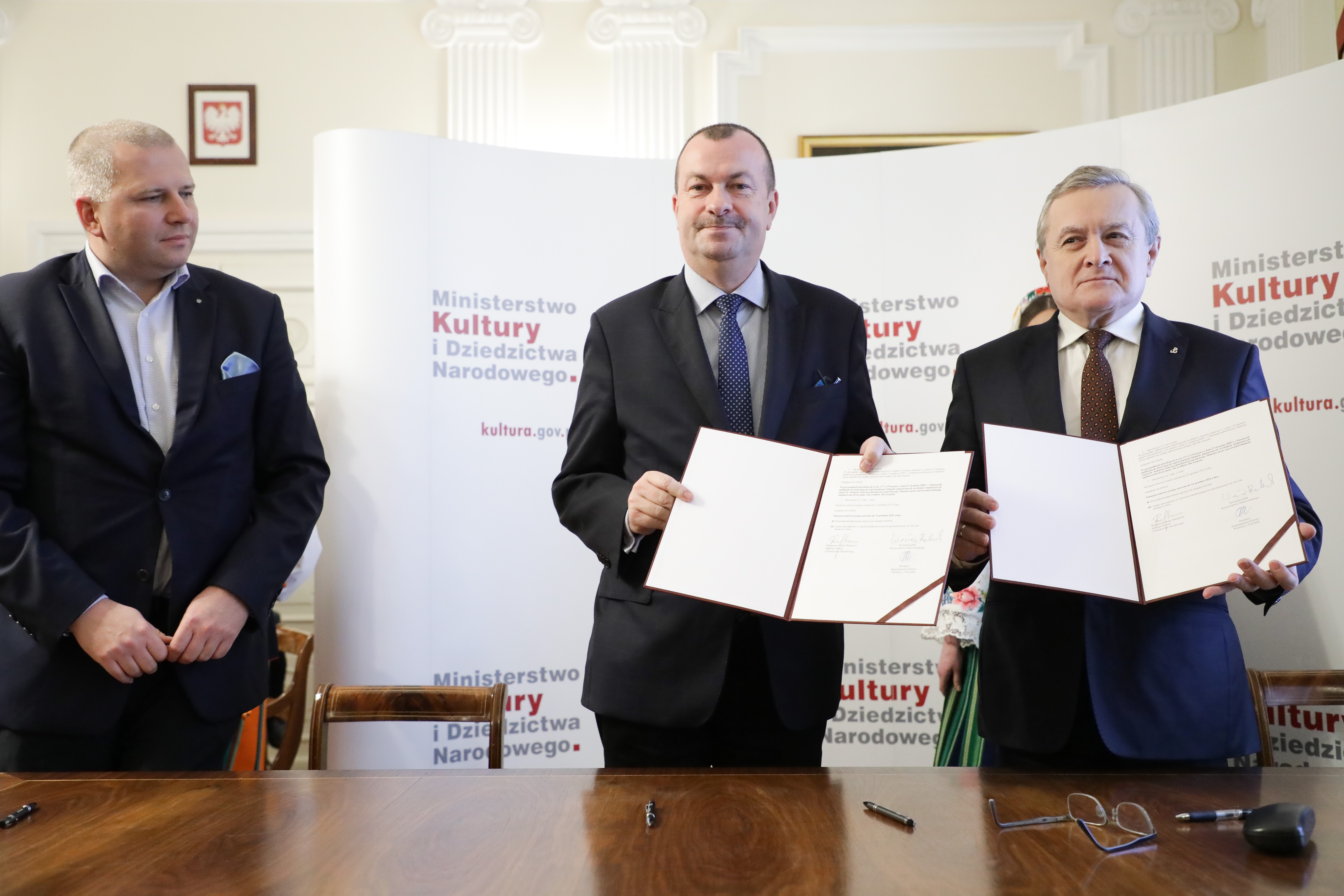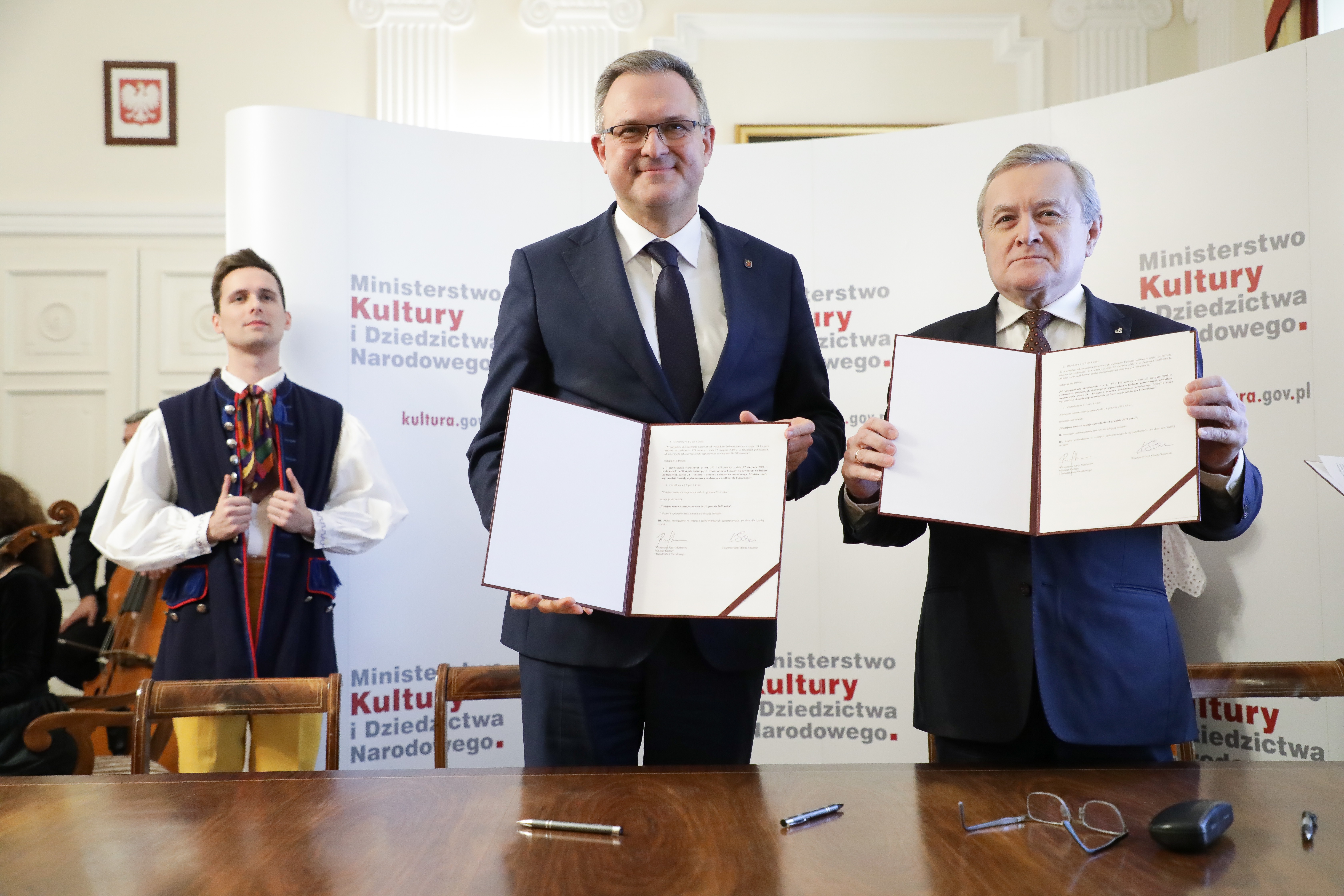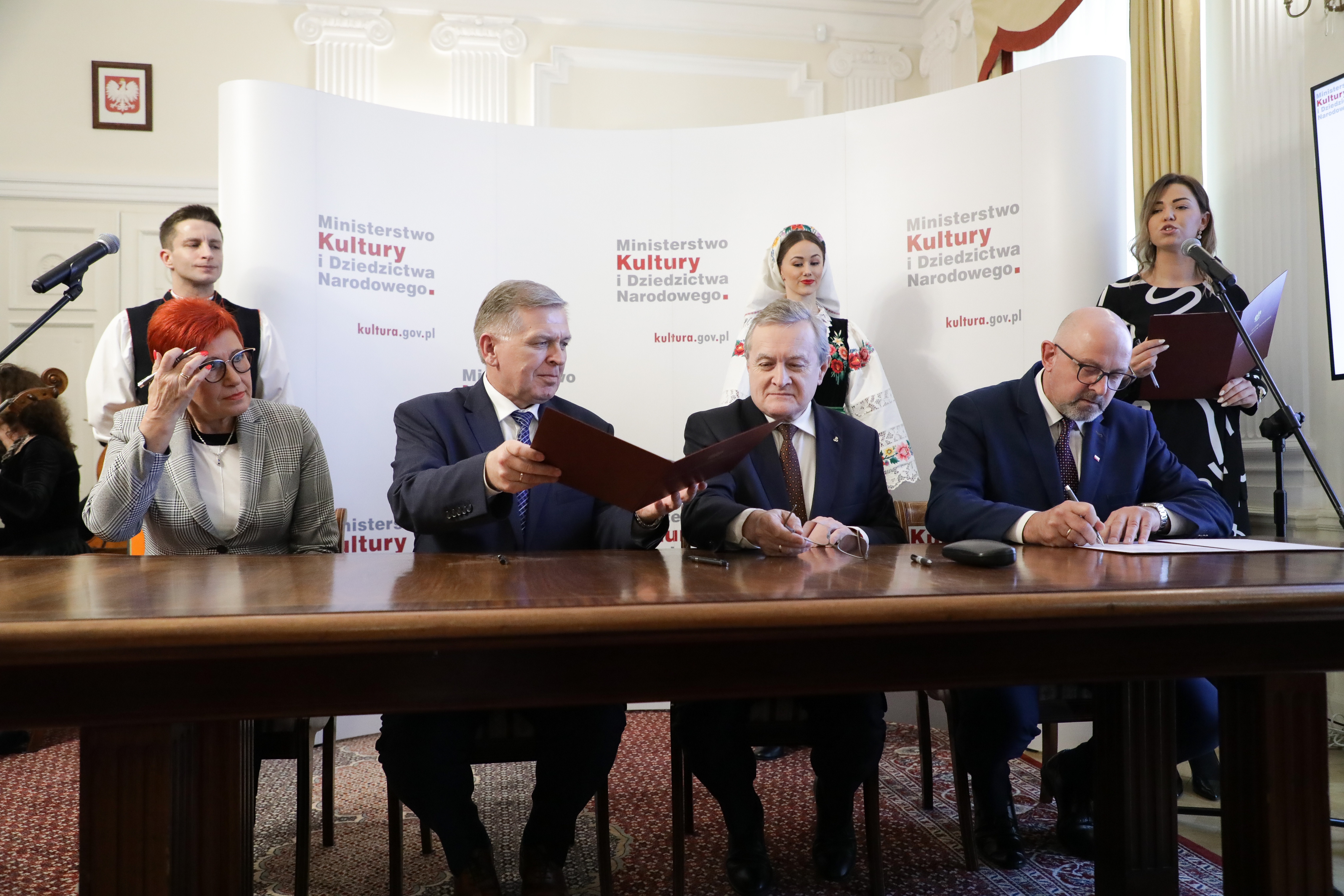 Filharmonia Podkarpacka w Rzeszowie, Centrum Paderewskiego w Kąśnej-Dolnej, Zespół Pieśni i Tańca „Śląsk” w Koszęcinie, Państwowy Zespół Ludowy Pieśni i Tańca „Mazowsze” w Karolinie, Teatr Polski im. Arnolda Szyfmana w Warszawie oraz Filharmonia w Szczecinie będą nadal współprowadzone przez Ministerstwo Kultury i Dziedzictwa Narodowego. Aneksy do umów o współprowadzeniu tych instytucji podpisali dziś wicepremier, minister kultury prof. Piotr Gliński oraz organizatorzy – przedstawiciele urzędów marszałkowskich, starostw powiatowych oraz urzędów miasta. W uroczystości, która odbyła się w siedzibie Ministerstwa Kultury i Dziedzictwa Narodowego wzięli również udział dyrektorzy instytucji oraz artyści.