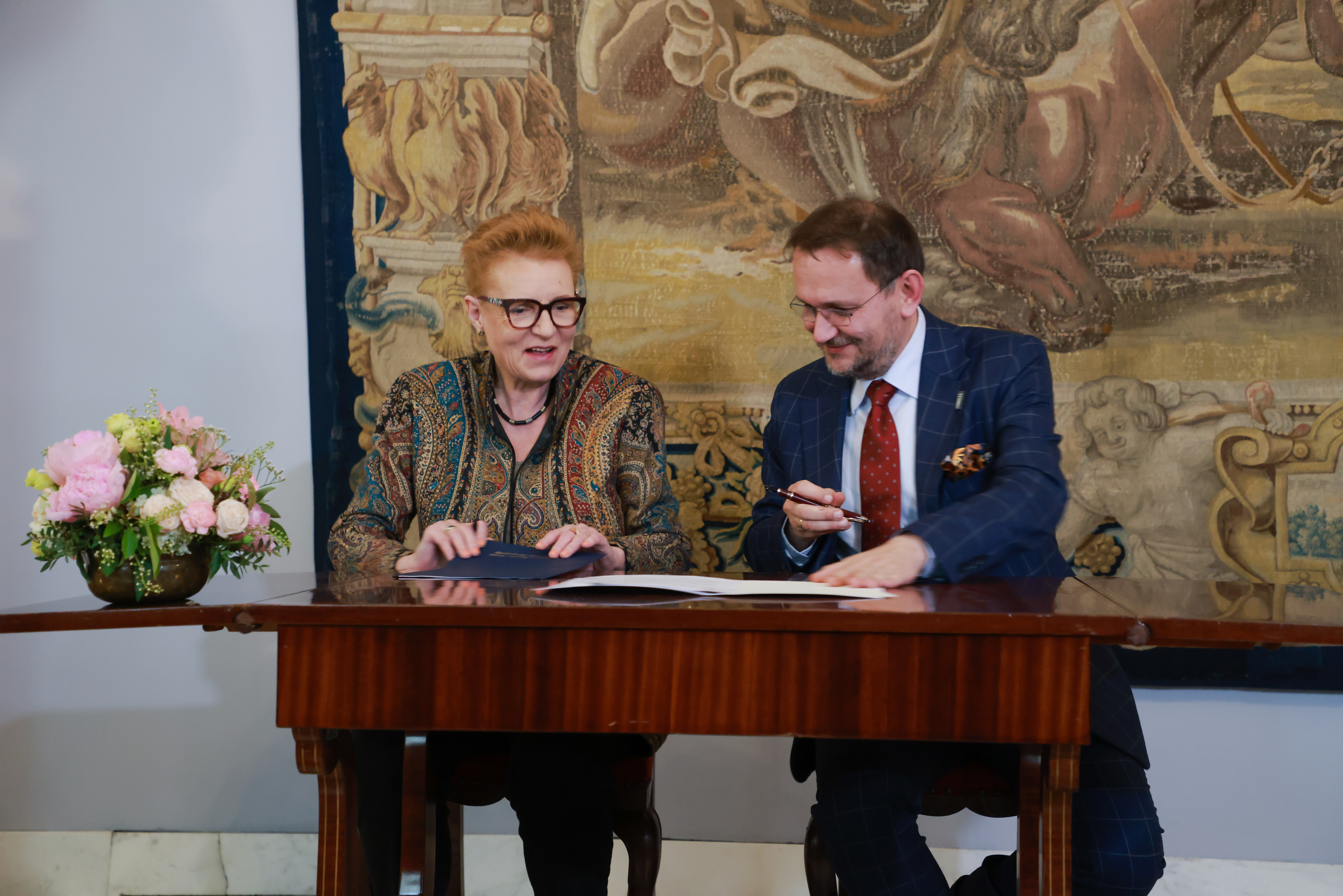 Dwie najważniejsze rezydencje królewskie w Polsce - Zamek Królewski w Warszawie i Zamek Królewski na Wawelu - będą wymieniać się swoimi zbiorami, wiedzą i doświadczeniem w ramach projektu "Królewska wymiana". List intencyjny, inaugurujący pierwszą wymianę dzieł sztuki, podpisali dziś - w obecności Hanny Wróblewskiej, ministry kultury i dziedzictwa narodowego - prof. Małgorzata Omilanowska, dyrektorka Zamku Królewskiego w Warszawie oraz prof. Andrzej Betlej, dyrektor Zamku Królewskiego na Wawelu.