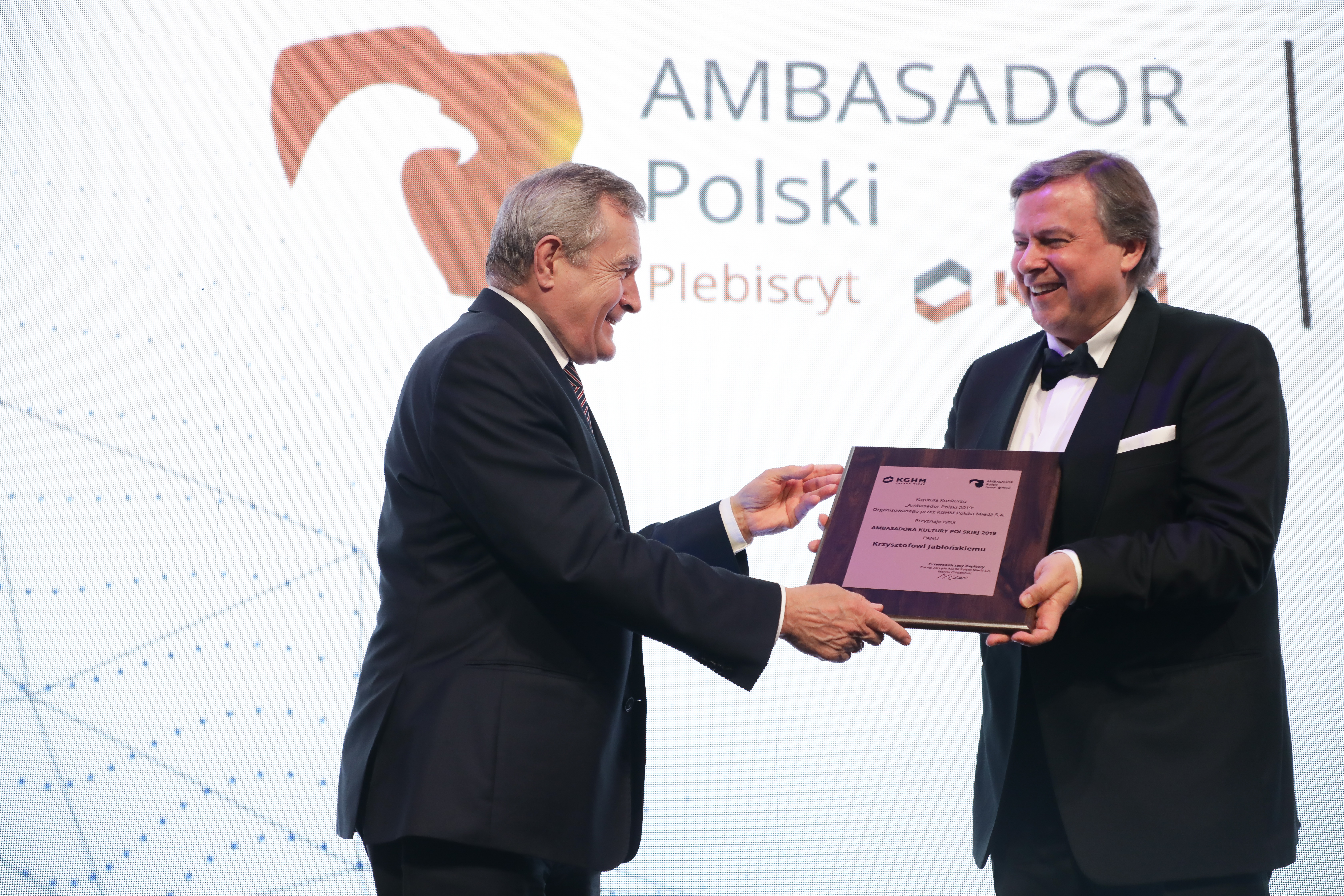 W sobotę w Warszawie odbyła się gala finałowa konkursu organizowanego przez KGHM „Ambasador Polski 2019”, który ma na celu nagrodzenie Polaków promujących swoją pracą wizerunek kraju za granicą. W dziedzinie kultury wyróżniony został Krzysztof Jabłoński – wybitny pianista, laureat wielu najważniejszych nagród w międzynarodowych konkursach, który odebrał nagrodę z rąk ministra kultury i dziedzictwa narodowego prof. Piotra Glińskiego.
