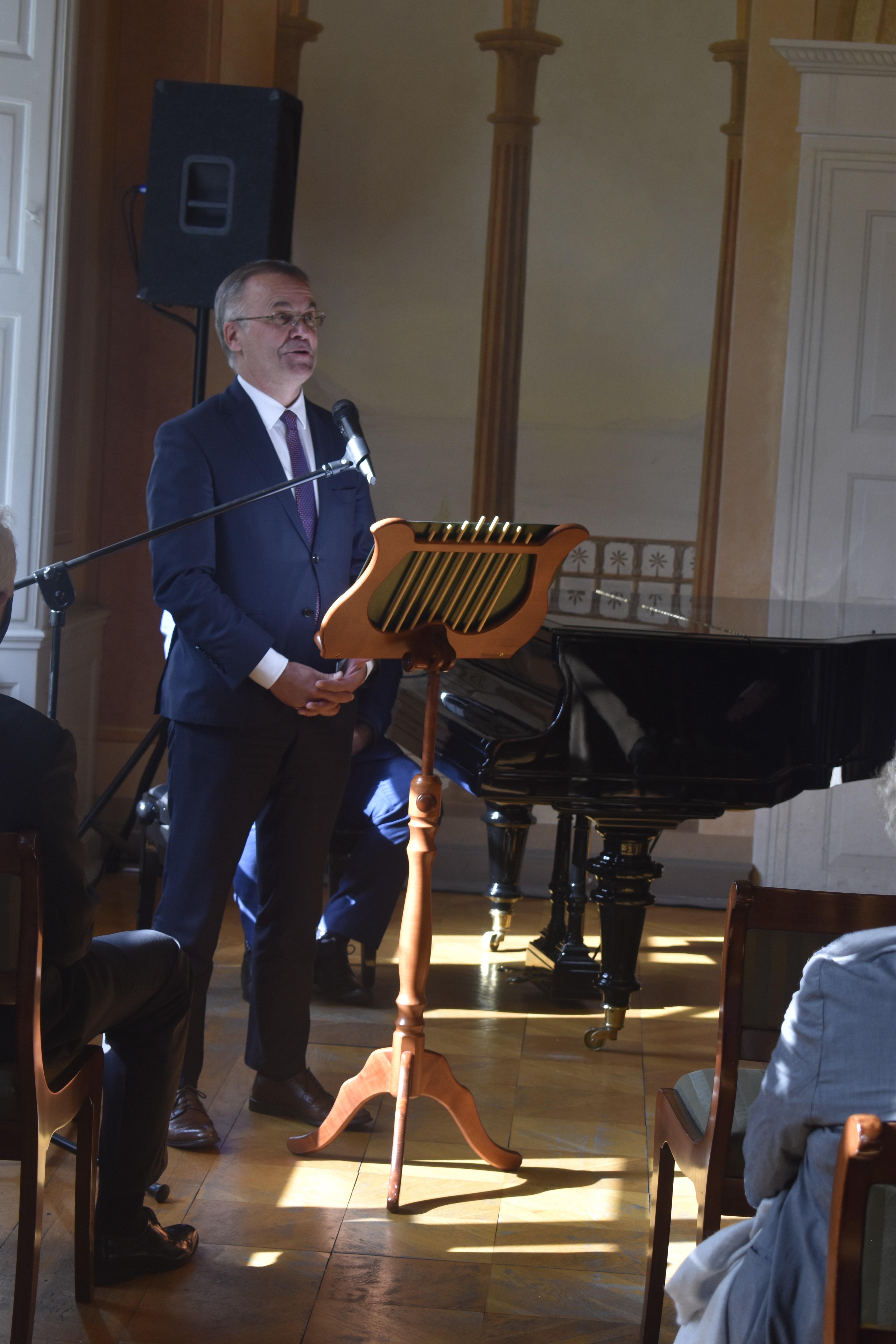 Wiceminister Sellin przypomniał, że patron Książnicy był nie tylko wybitnym badaczem dziejów historii średniowiecznej Polski i Kaszub, ale również wyjątkowym myślicielem, nauczycielem kilku pokoleń historyków oraz wzorem polskiego patrioty. Podkreślił, że miał przyjemność osobiście poznać profesora Labudę, dlatego cieszy się z możliwości uczestniczenia w uroczystości otwarcia Książnicy jego imienia.