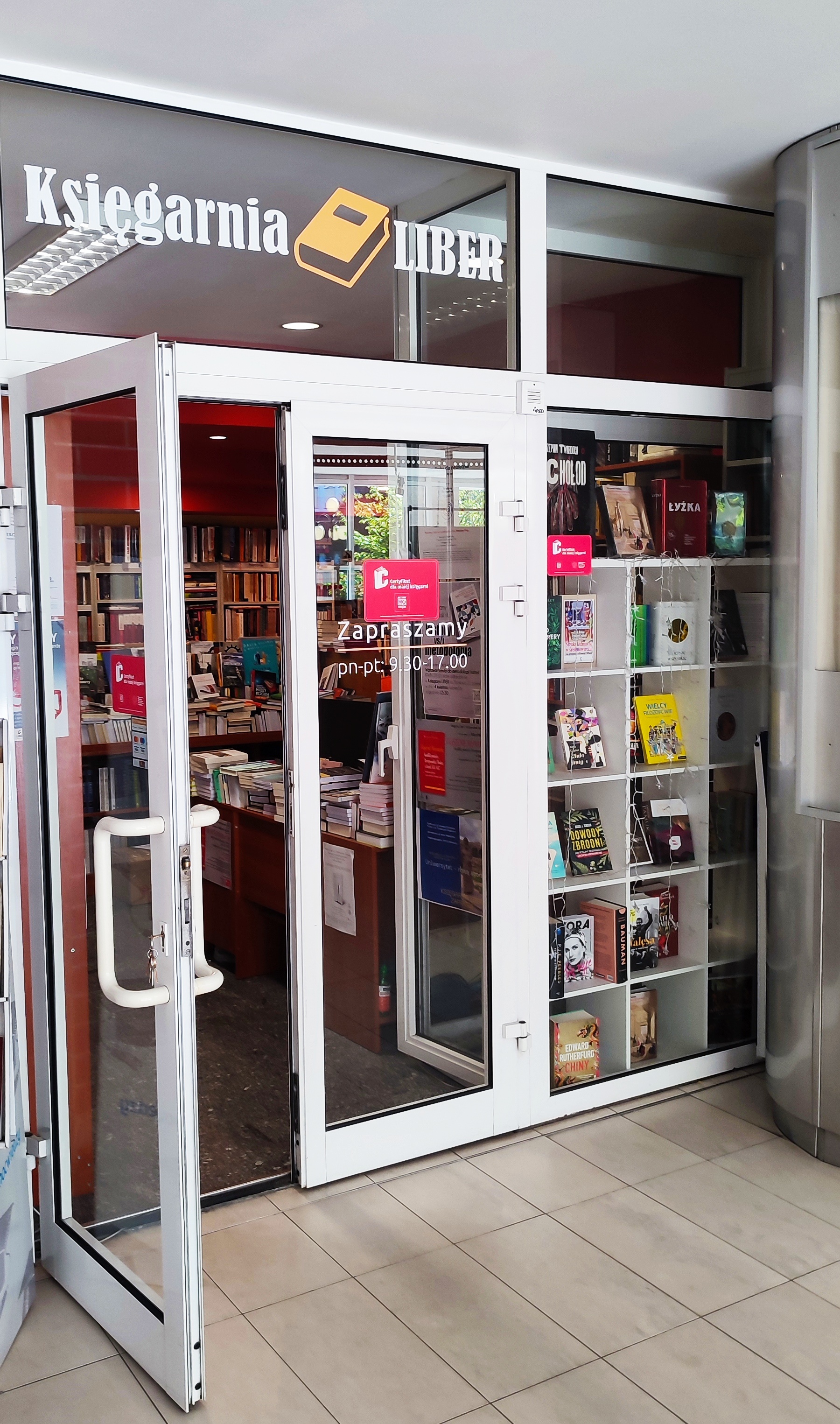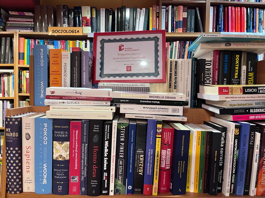 Księgarnia Liber z certyfikatem gwarantującym wolność działania