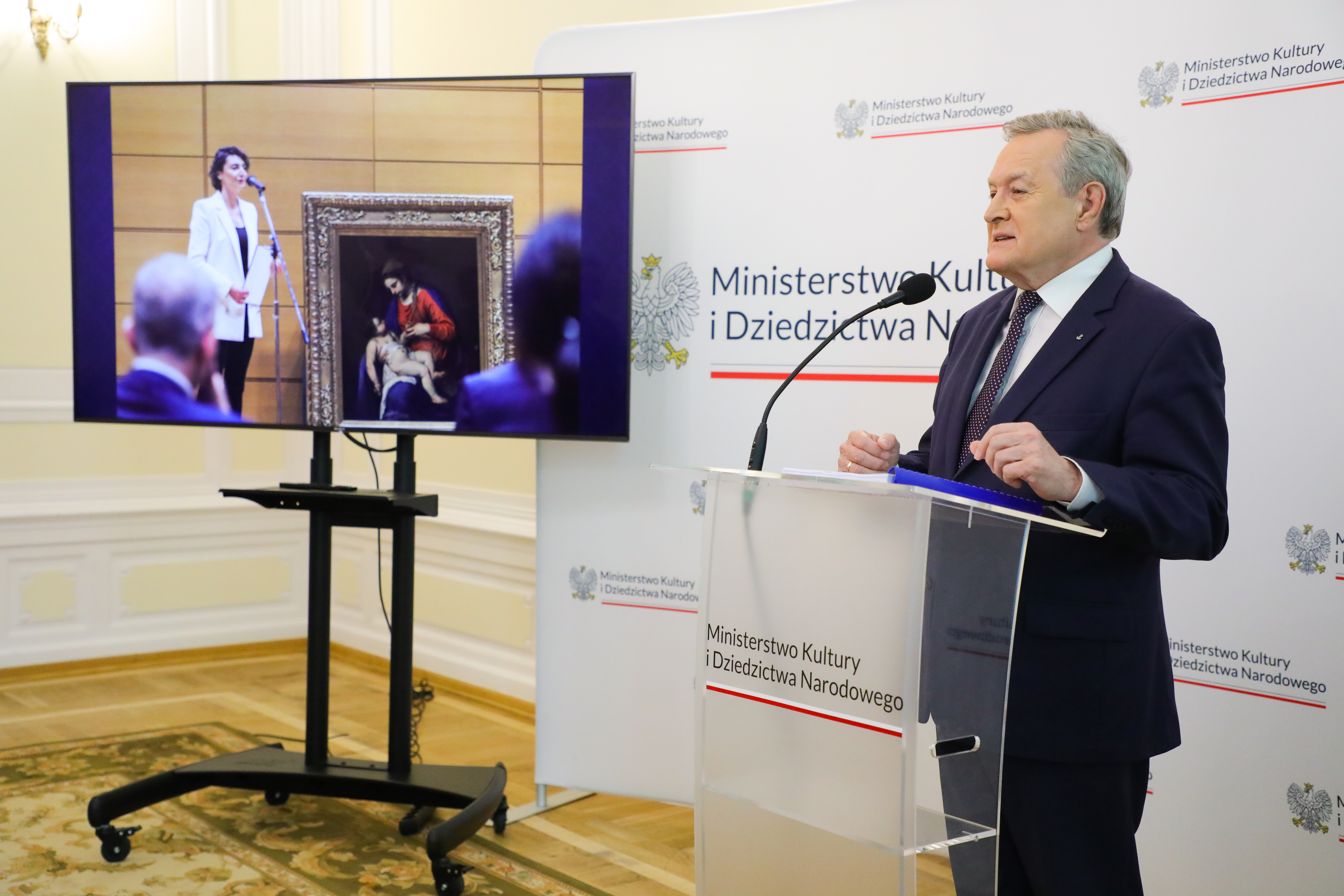 Prof. Piotr Gliński podziękował wszystkim, którzy przyczynili się do powrotu dzieła do Polski, przede wszystkim pracownikom Departamentu Restytucji Dóbr Kultury MKiDN.