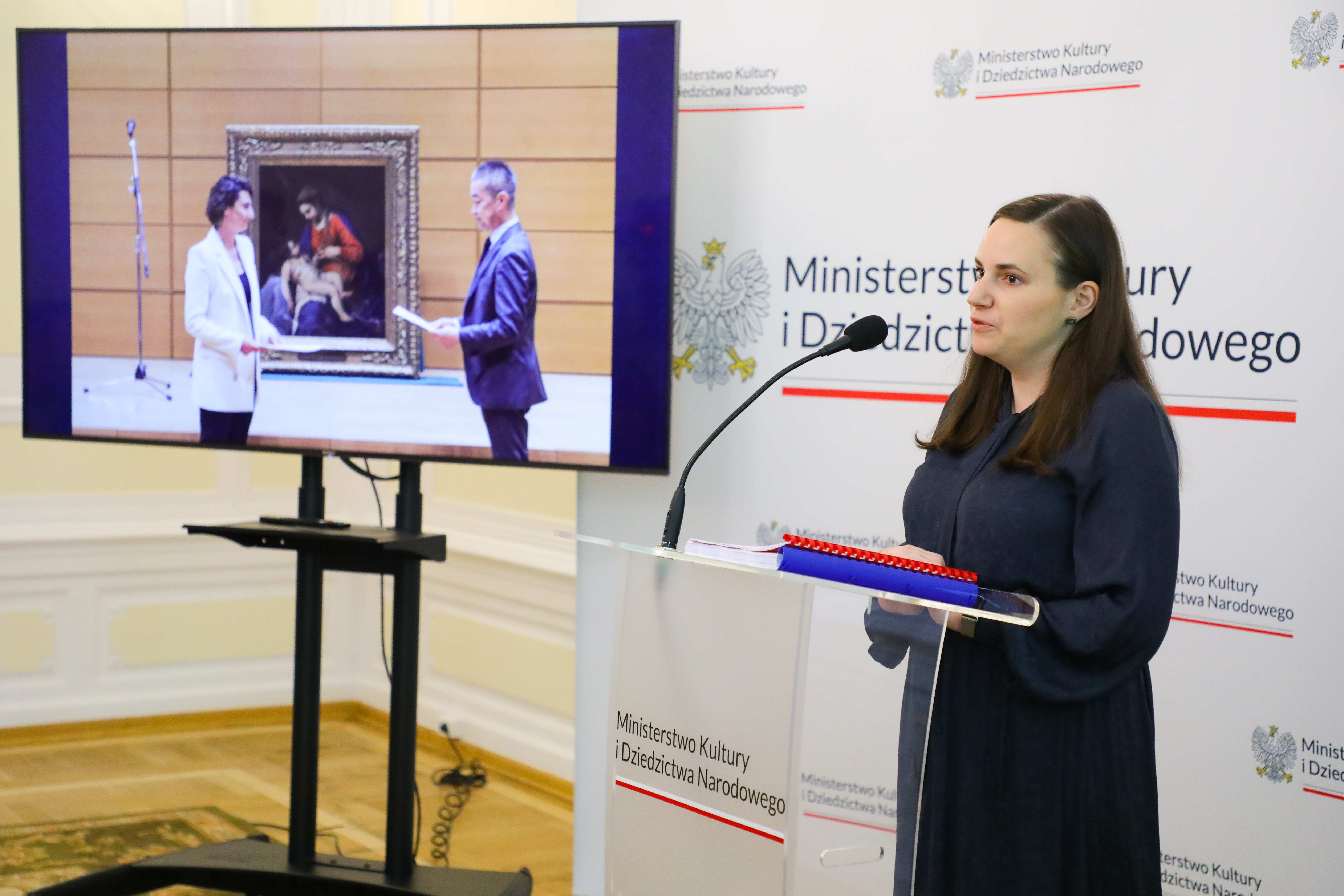 Minister kultury i dziedzictwa narodowego poinformował, że obraz „Madonna z Dzieciątkiem” został zidentyfikowany na aukcji w Tokio w styczniu 2022 r. dzięki specjalnym narzędziom informatycznym, z których korzystają pracownicy Departamentu Restytucji Dóbr Kultury MKiDN.