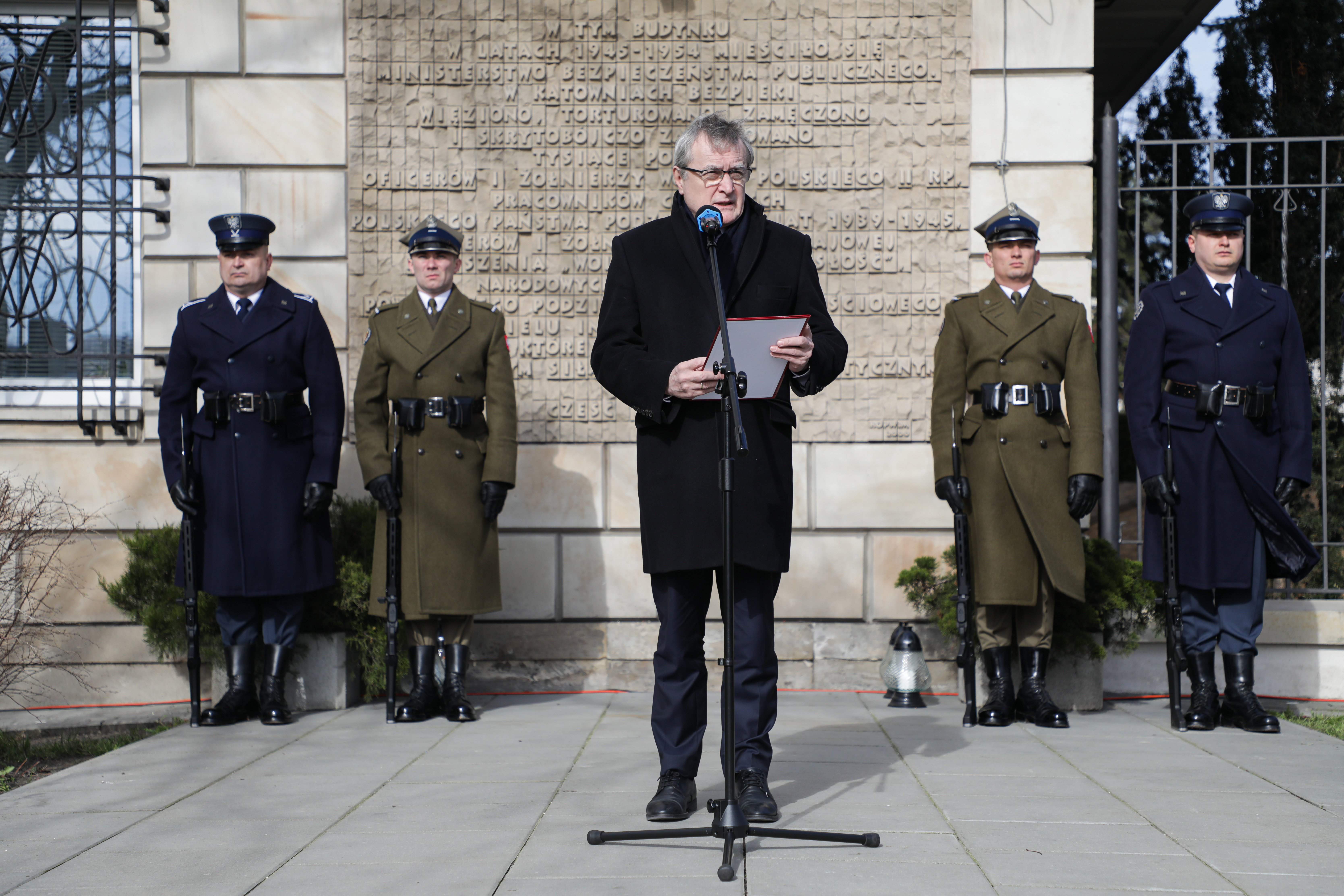 Wśród znajdujących się na terenie Warszawy miejsc, w których komunistyczni oprawcy gnębili uczestników powstania antykomunistycznego była siedziba ministerstwa bezpieczeństwa publicznego, w której piwnicach przetrzymywano nie tylko aktywnych przeciwników stalinowskiego reżimu, ale również tych, którzy stwarzali chociażby potencjalne ryzyko bycia niepokornymi" - przypomniał prof. Gliński. Podkreślał, że Żołnierze Wyklęci "na wiele lat zostali postawieni poza nawiasem społeczeństwa i wyklęci, właśnie wyklęci, przez aparat totalitarnego państwa". Dopiero w ostatnich latach pamięć o ich niezłomnym bohaterstwie wygrała. "Oddając hołd żołnierzom antykomunistycznego podziemia polskie państwo spłaca wobec nich dług wdzięczności i nadrabia wieloletnie zaniedbania – mówił minister kultury.