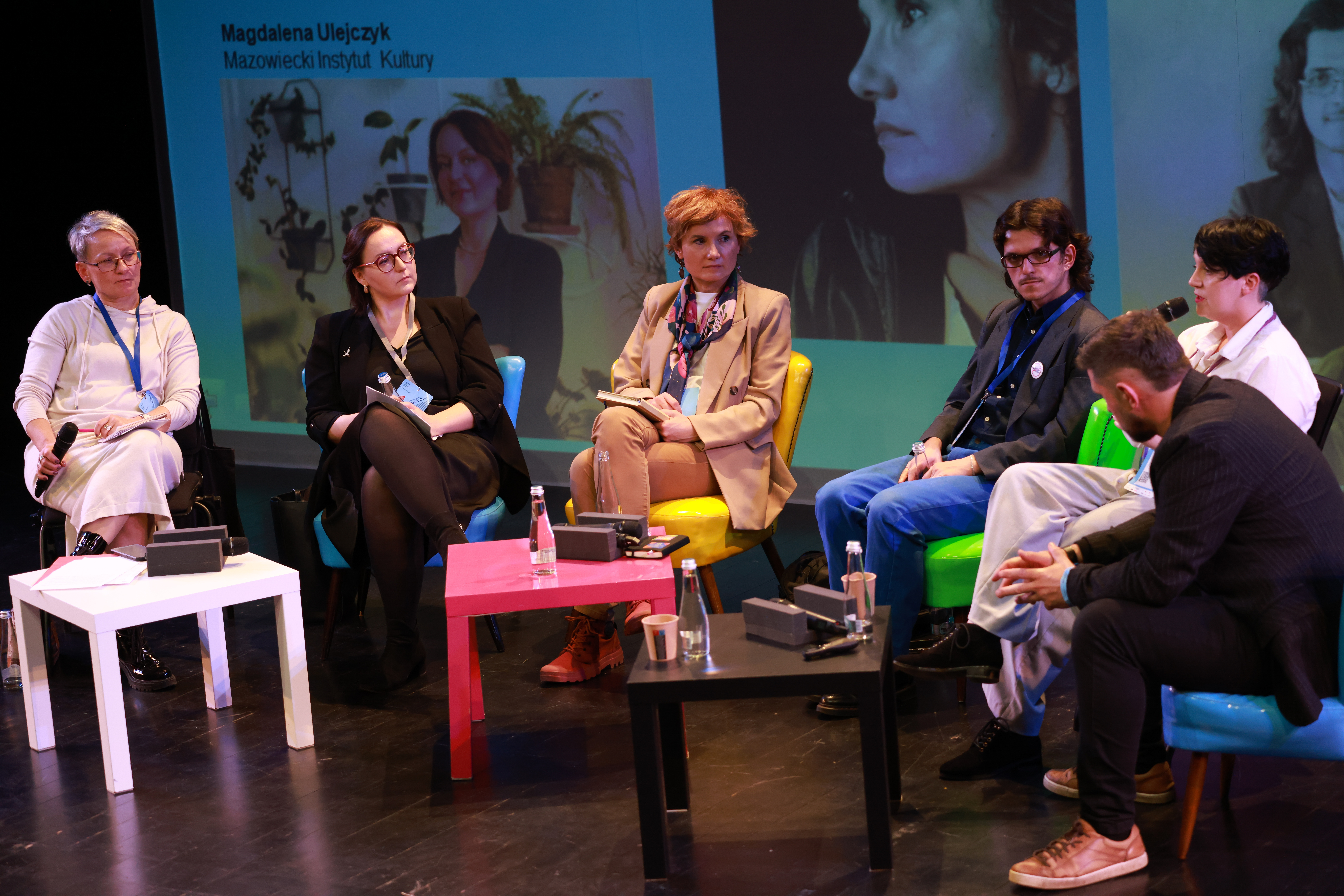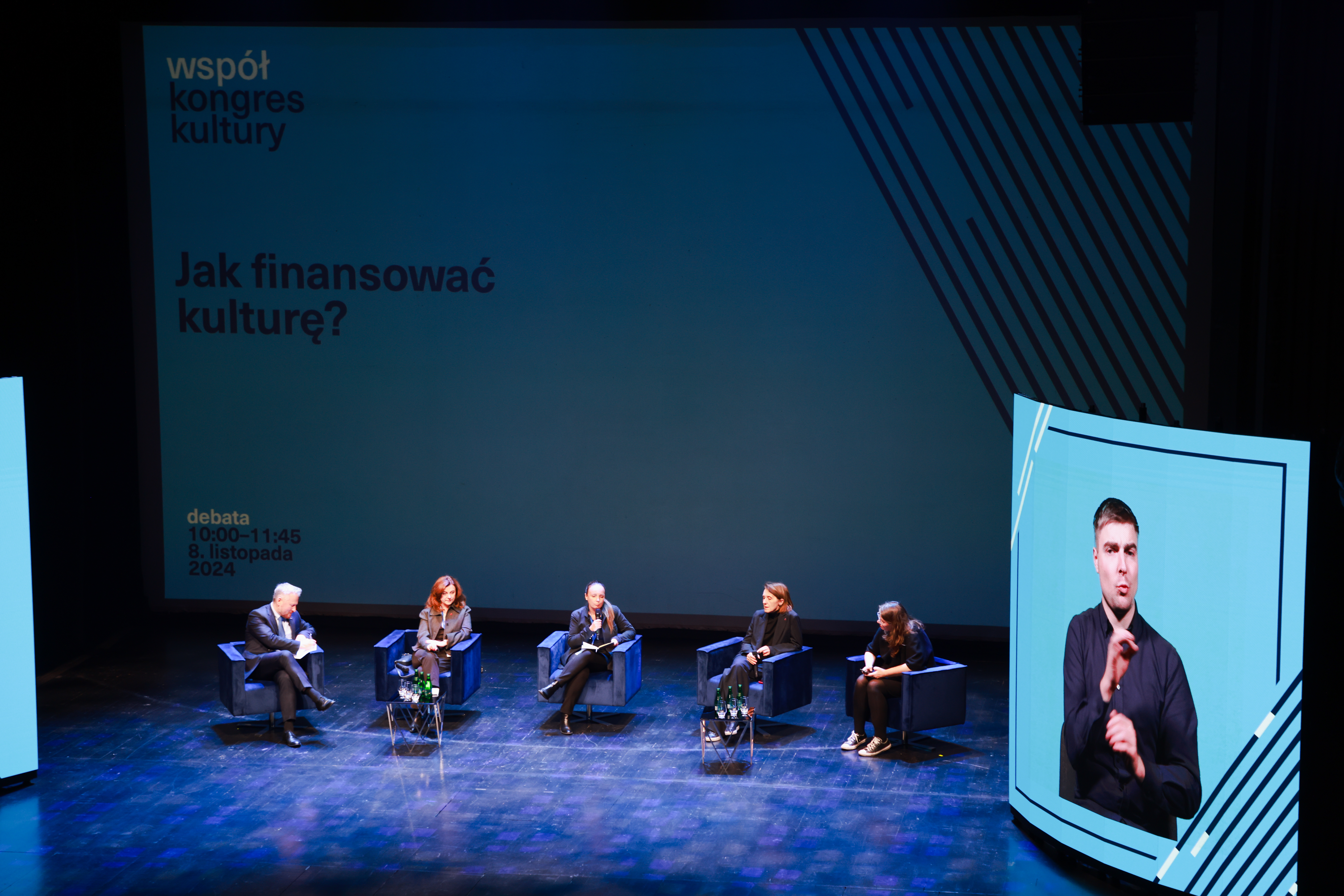 Finansowanie i decentralizacja kultury, reforma instytucji oraz sytuacja pracowników i pracowniczek – to tematy plenarne drugiego dnia współKongresu Kultury. Szczególnie głośno wybrzmiały kluczowe problemy uczestniczek i uczestników współKongresu: trudna sytuacja instytucji lokalnych, potrzeba wyłonienia nowych liderek i liderów oraz odbudowania relacji środowiska z władzami. Obecne były też tematy związane z rozwojem sztucznej inteligencji i mobbingu w instytucjach kultury. Na ostatnim panelu dnia, przed rozpoczęciem rozmowy o płacach i warunkach pracy, na scenie głównej odbył się happening artystek i artystów z transparentami postulującymi zabezpieczenie emerytalne dla twórczyń i twórców kultury.