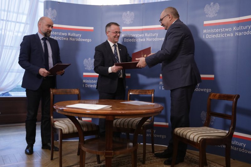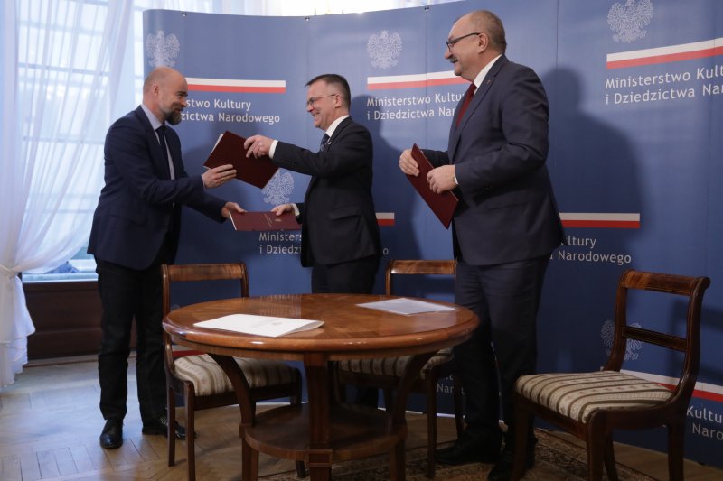 W uroczystości podpisania umowy uczestniczyli również dyrektor Muzeum Gross Janusz Barszcz, zastępca dyrektora Departamentu Marszałka Województwa Dolnośląskiego Piotr Koszarek, dyrektor Departamentu Rozwoju Społecznego i Rynku Pracy Urzędu Marszałkowskiego Województwa Dolnośląskiego Wojciech Biliński oraz dyrektor Departamentu Dziedzictwa Kulturowego MKiDN Paulina Florjanowicz.