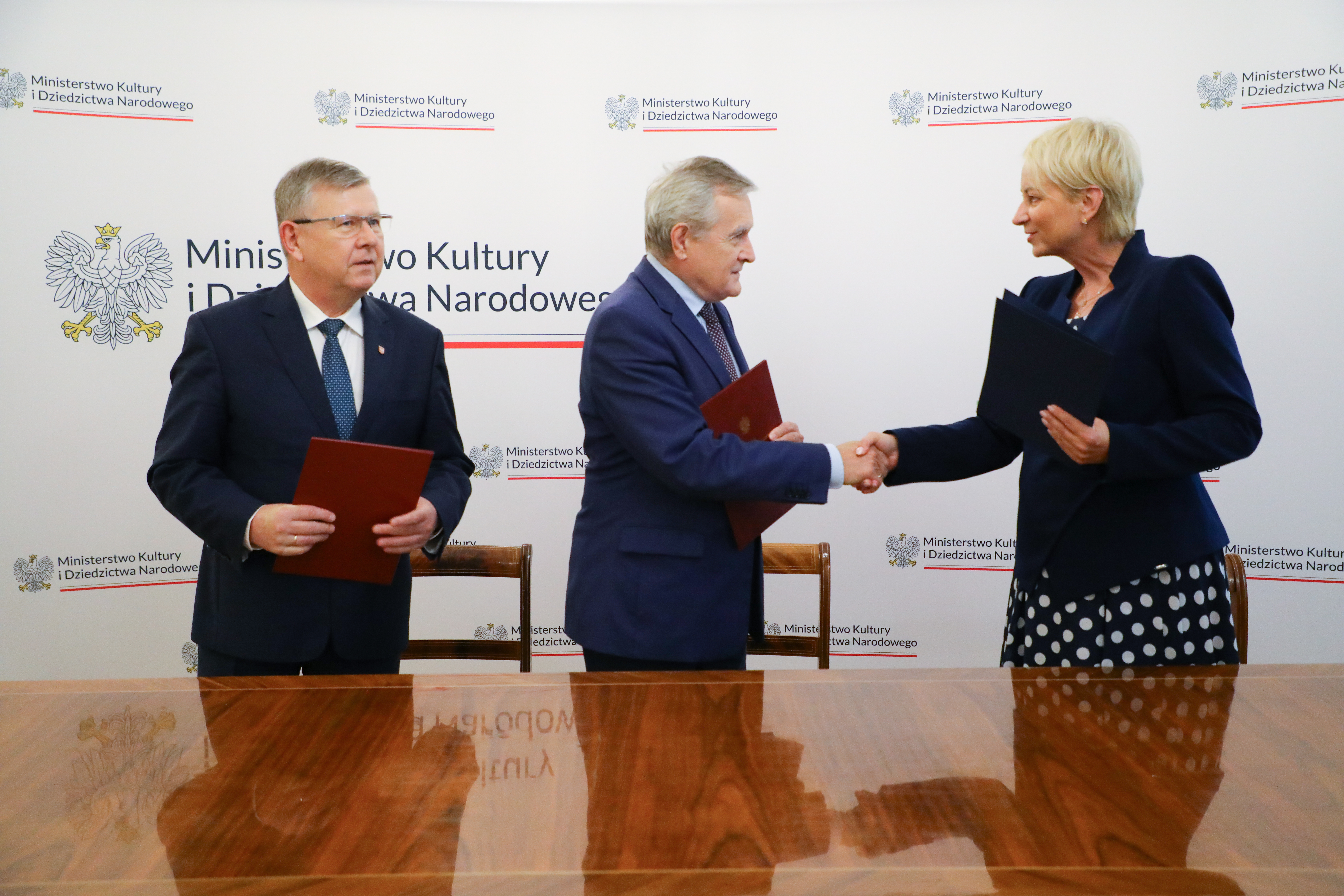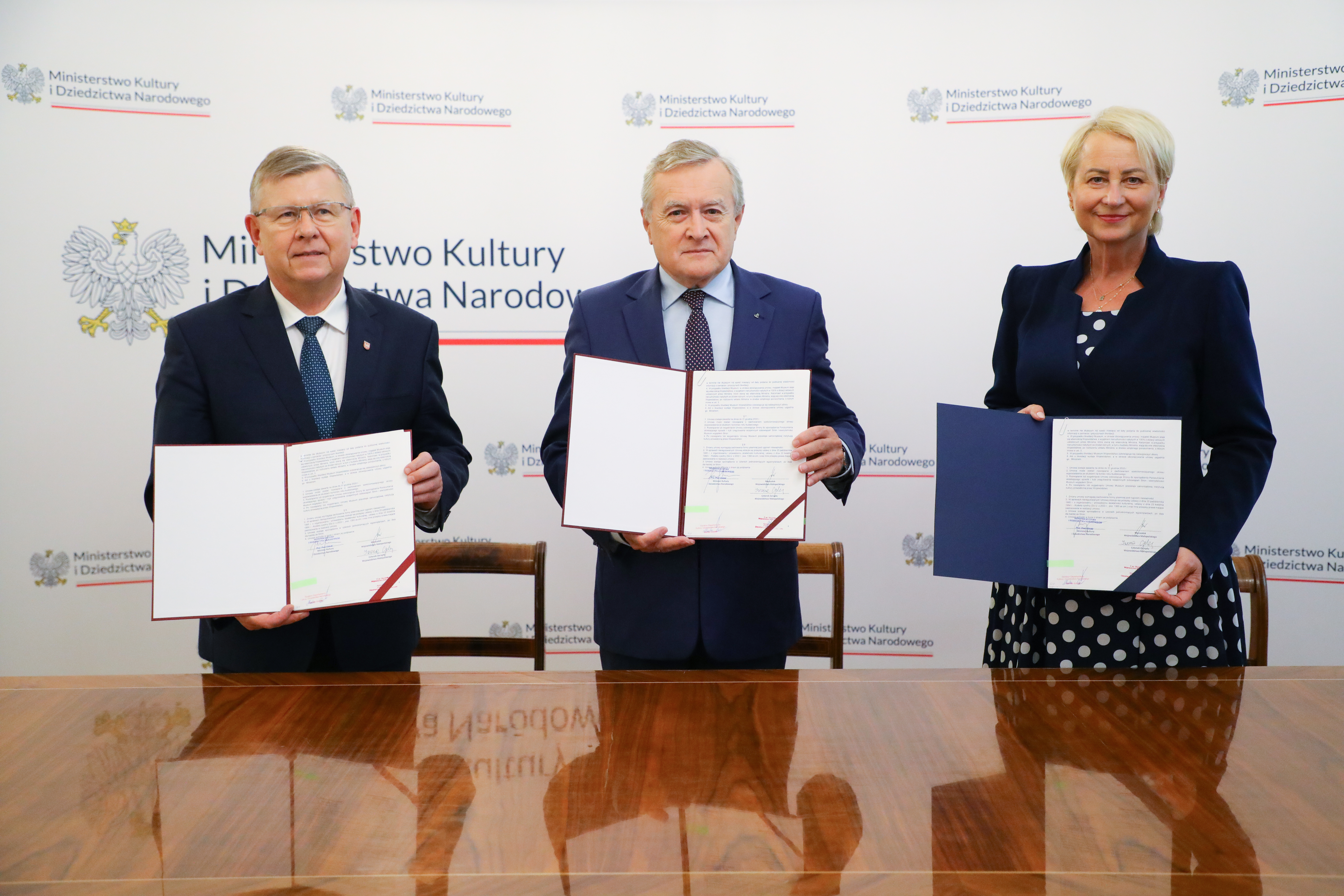Muzeum Pamięci Mieszkańców Ziemi Oświęcimskiej jest od dzisiaj instytucją kultury współprowadzoną przez MKiDN oraz Województwo Małopolskie – nowego organizatora Muzeum. Umowę w tej sprawie podpisali dziś minister kultury i dziedzictwa narodowego prof. Piotr Gliński, marszałek woj. małopolskiego Witold Kozłowski oraz członek zarządu woj. małopolskiego Iwona Gibas. Poprzednim współprowadzącym Muzeum był Powiat Oświęcimski, który w kwietniu br. przekazał rolę organizatora władzom województwa małopolskiego.