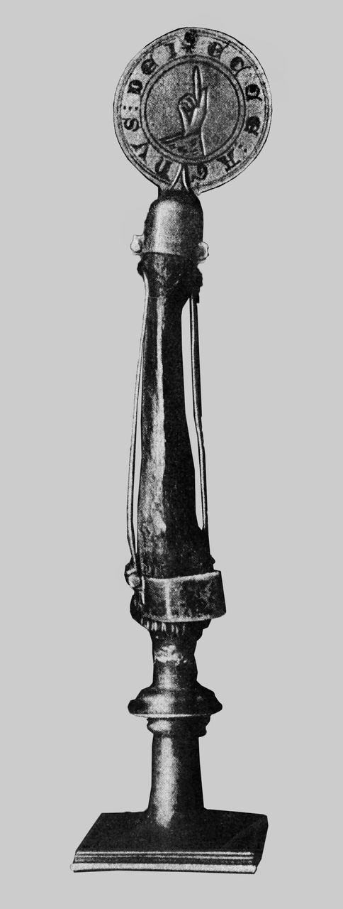 - Relikwiarz kości palca św. Jana, XIV w., pocz. XVI w., srebro złocone, kucie, wycinanie, grawerowanie, wys. ok. 14,5 cm, średnica ok. 5 cm, nr w bazie strat wojennych: 64386;