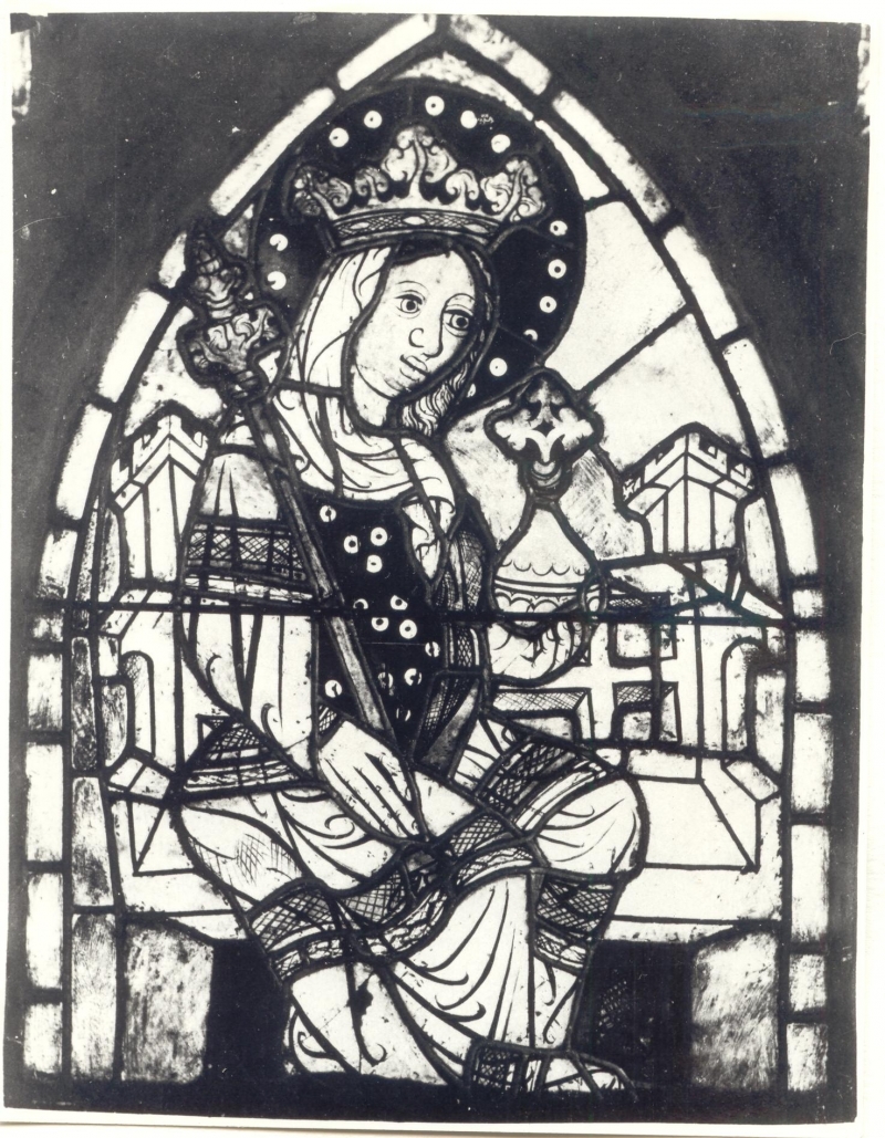 - Witraż „Tronująca Madonna”, warsztat toruński, 2. poł. XIV w., szkło barwione w masie, farba konturowa, patyna witrażowa, listwy ołowiowe, nr w bazie strat wojennych: 9586;