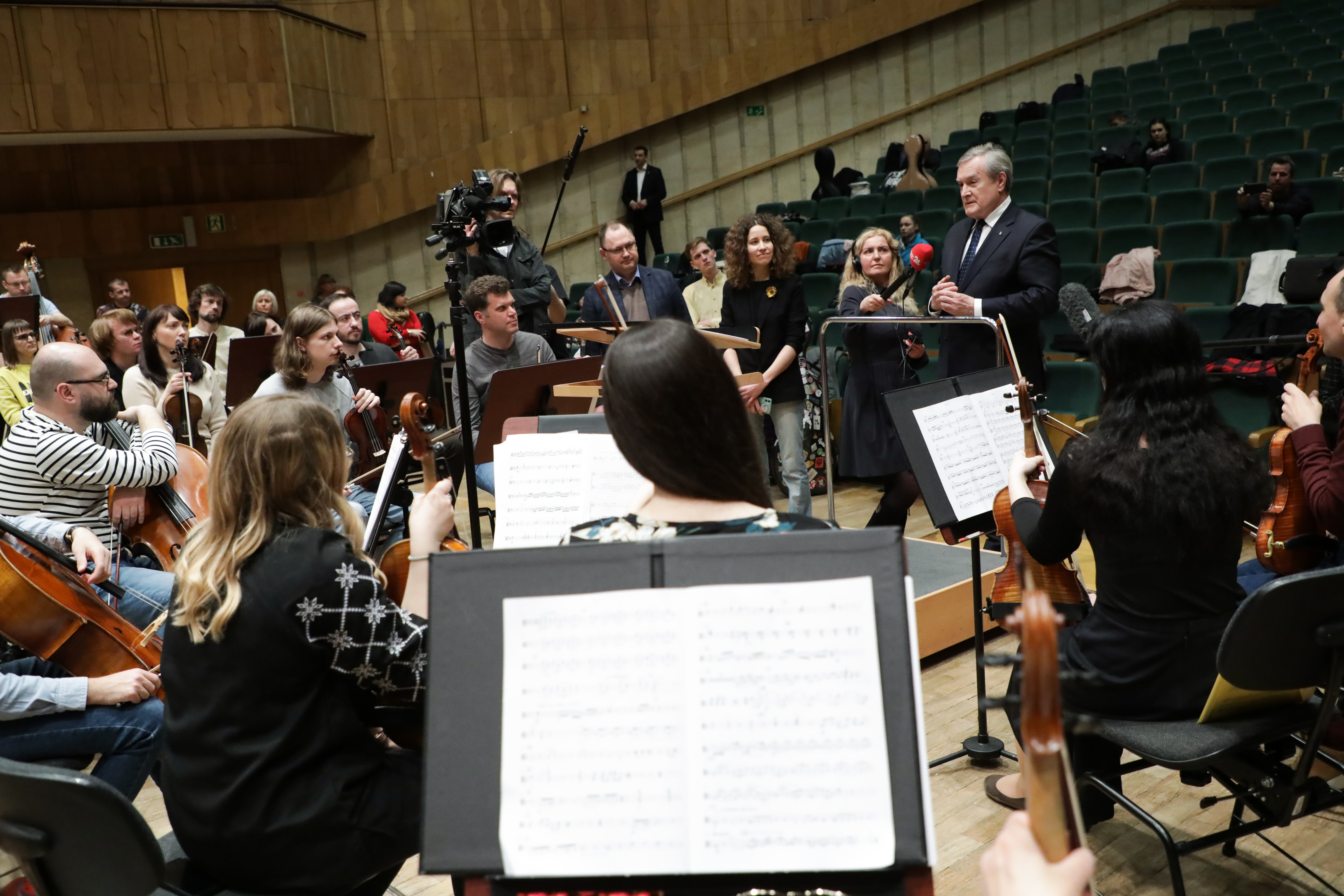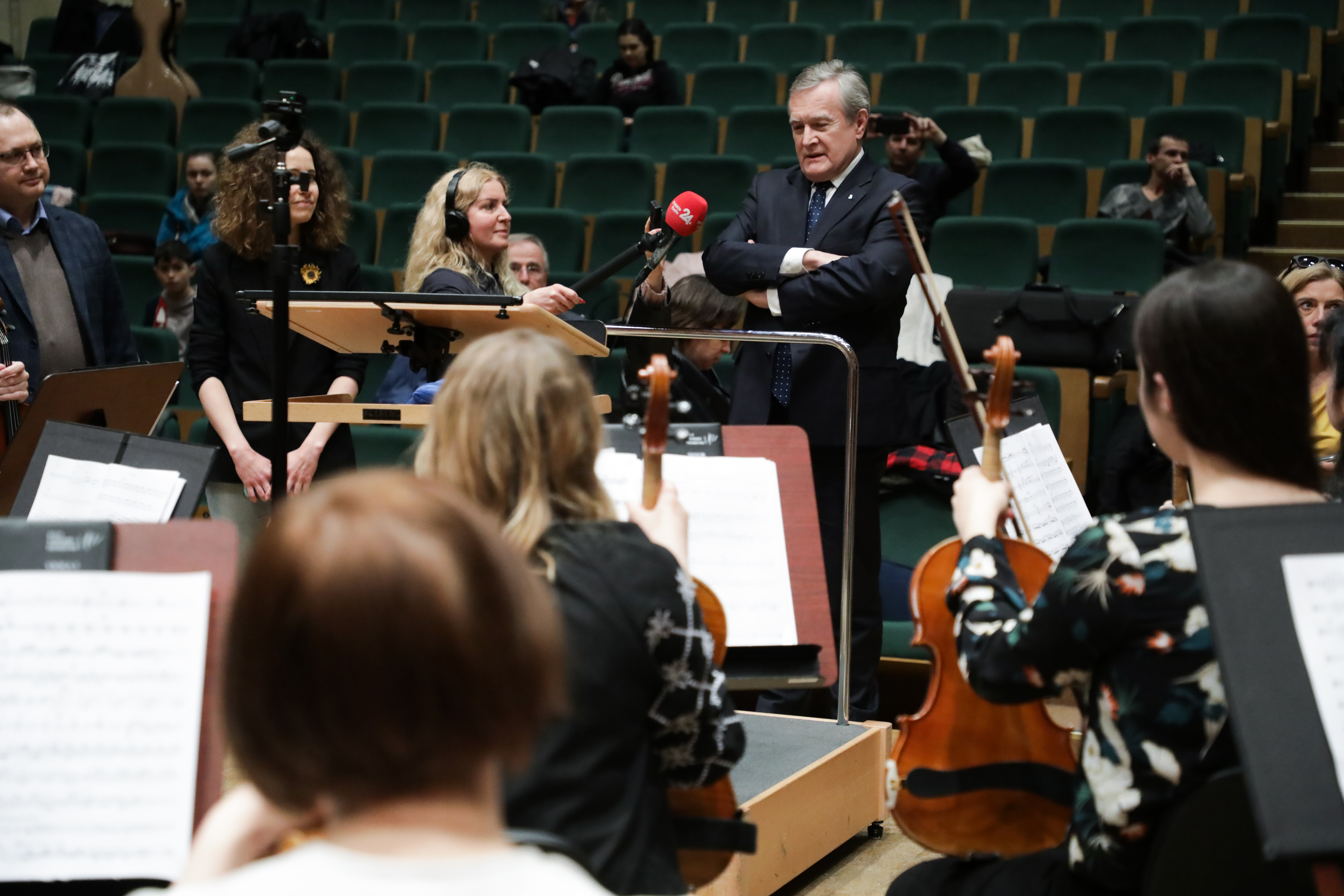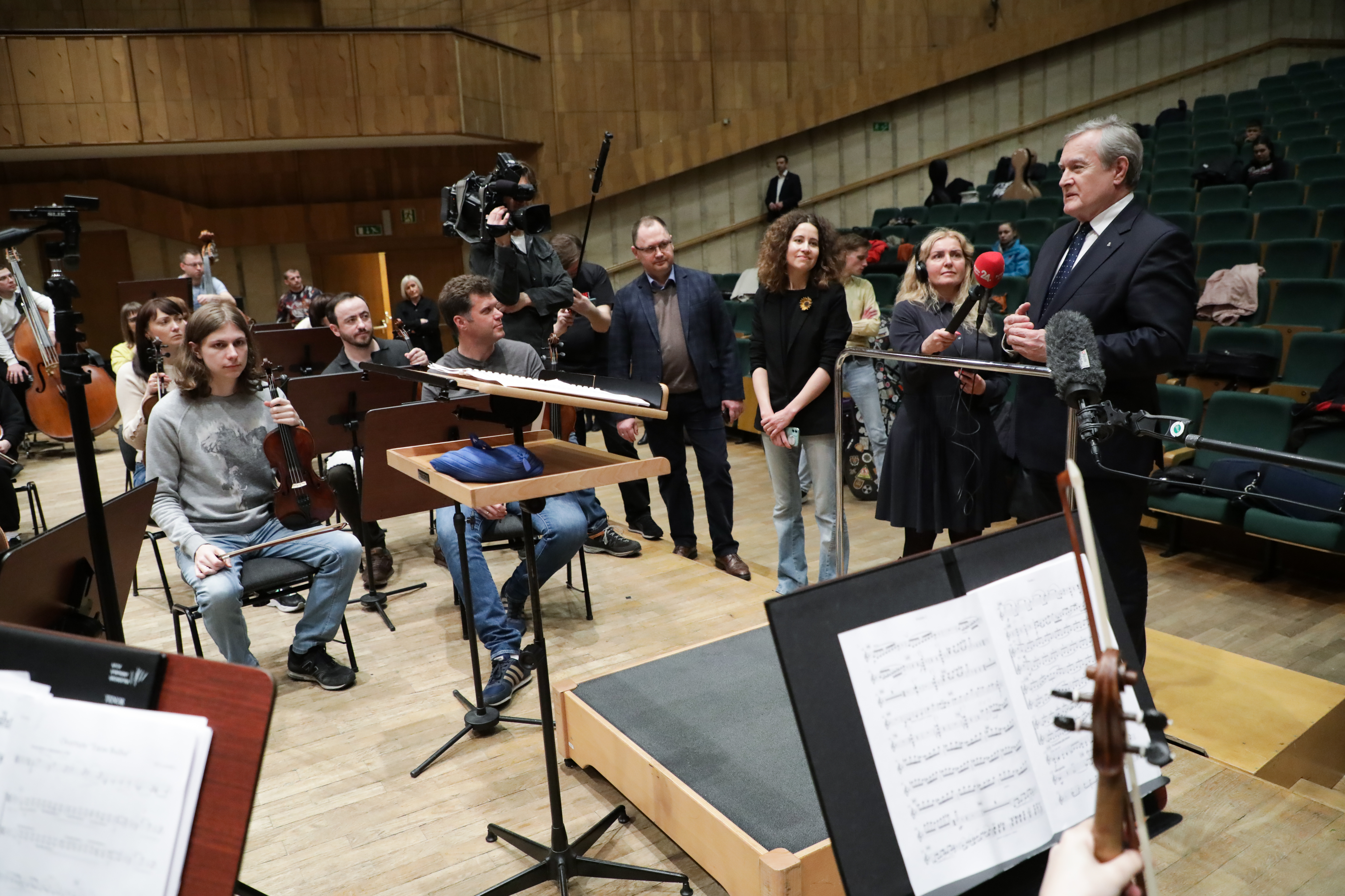 Jesteśmy dumni mogąc gościć w Polsce muzyków z Ukrainy. Kijowska Orkiestra Symfoniczna przyjechała do Polski i będzie się u nas przygotowywała do europejskiego tournée. Niektórzy muzycy przyjechali z rodzinami, mają zapewniony pobyt w Polsce i możliwości odbywania prób. Ukraińscy artyści mają dzisiaj ważne zadanie. Muszą nieść tę smutną informację o tym, co dzieje się na Ukrainie, przekonywać europejską opinię publiczną, czy też bardziej europejskich polityków, że musimy działać kategorycznie i zdecydowanie. W obliczu zbrodni wojennych sankcje na Rosję muszą być pełne. A jednocześnie niosą optymistyczną wieść - że kultura zwycięża! Dobro zwycięża nad złem! – mówi wicepremier, minister kultury i dziedzictwa narodowego prof. Piotr Gliński. Podkreśla, że działalność ukraińskiej orkiestry prowadzonej przez włoskiego dyrygenta to najlepszy dowód na to, jak europejska kultura potrzebuje wszystkich cegiełek, z których złożona jest europejska tożsamość.