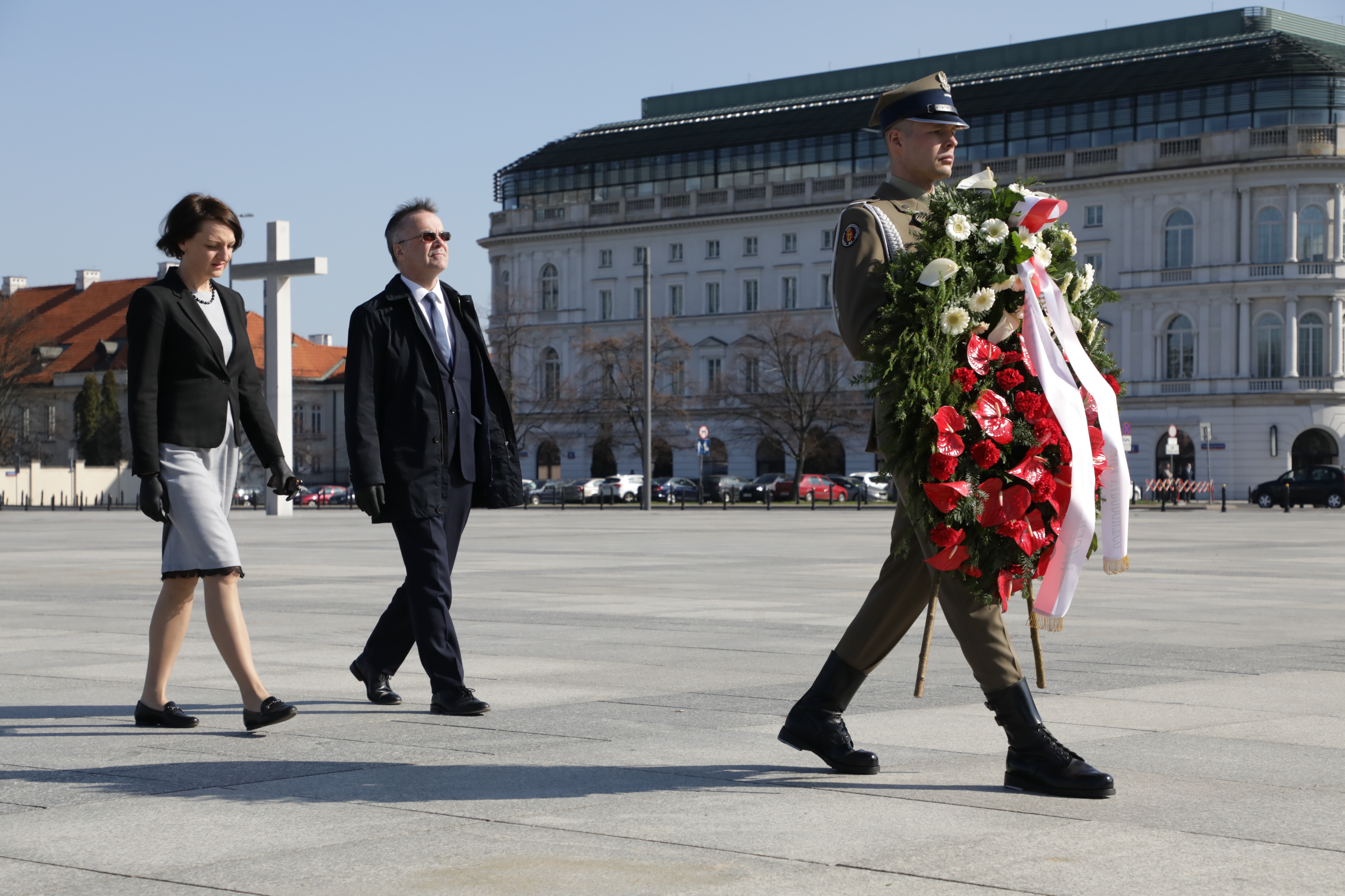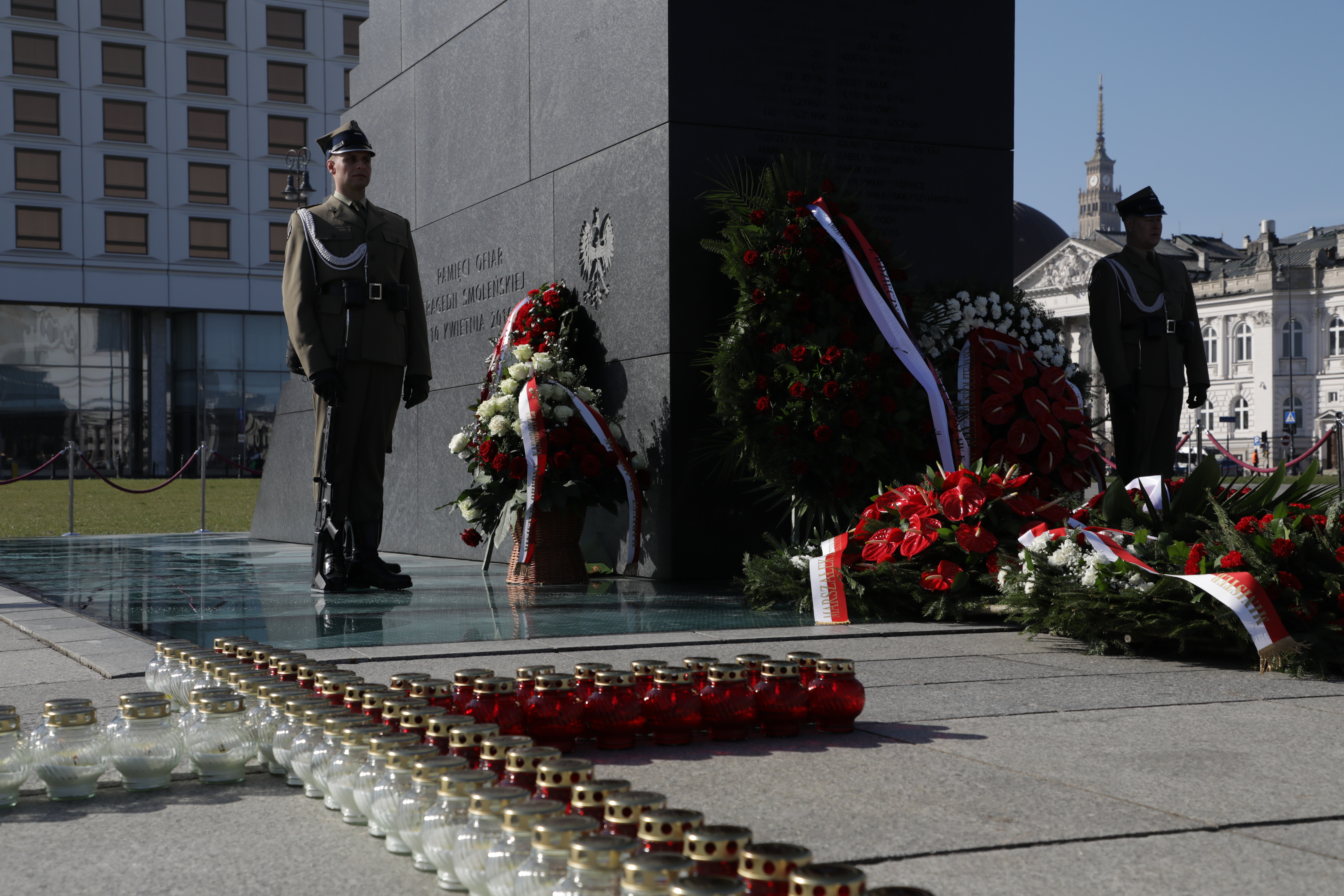 Kwiaty pod pomnikami prezydenta Lecha Kaczyńskiego oraz Ofiar Katastrofy Smoleńskiej złożyli także wiceministrowie kultury i dziedzictwa narodowego Jarosław Sellin i Magdalena Gawin.