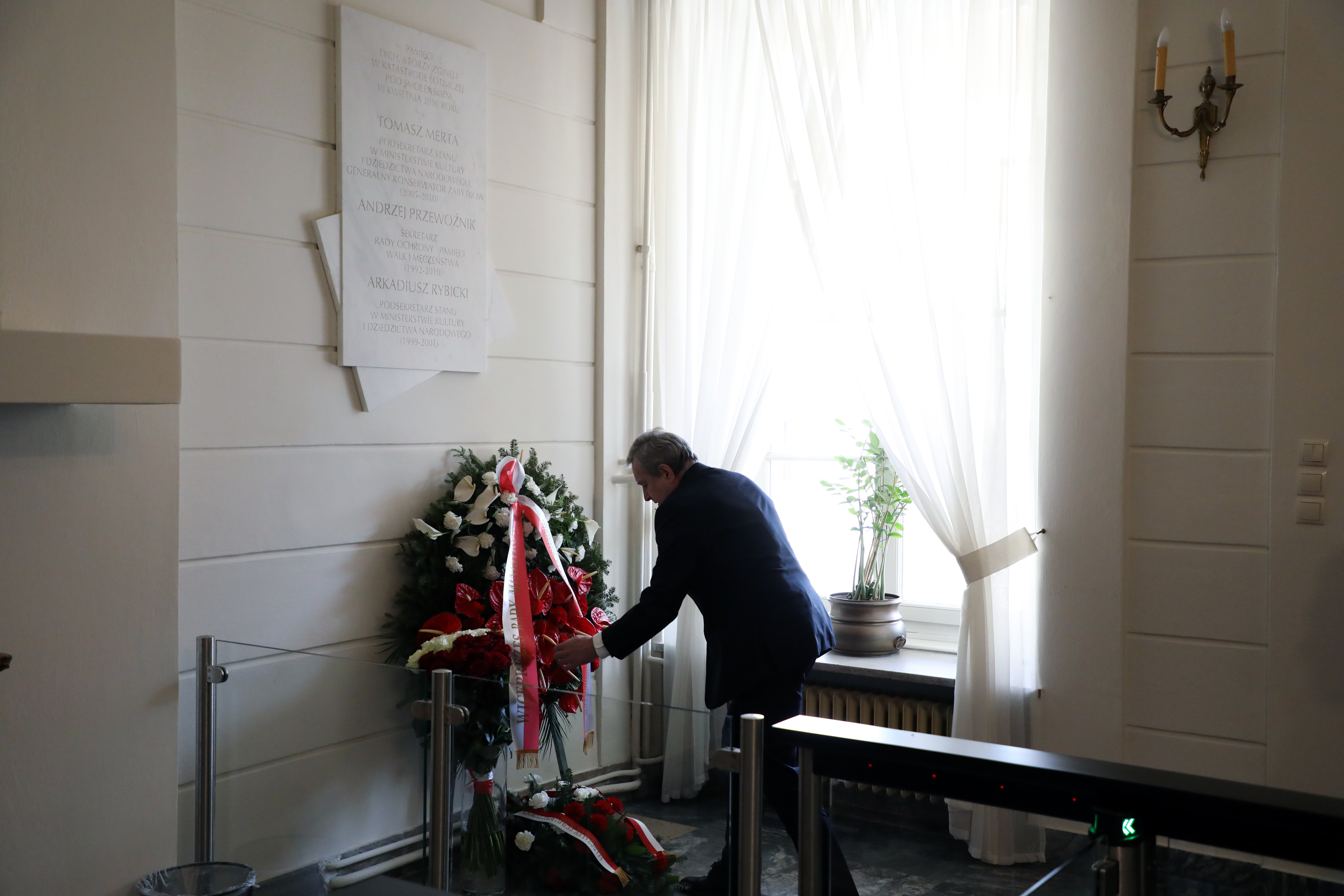 Minister kultury i dziedzictwa narodowego uczestniczył też w uroczystościach na Cmentarzu Wojskowym na Powązkach w Warszawie oraz w Świątyni Opatrzności Bożej. Złożył też kwiaty przed tablicą upamiętniającą Tomasza Mertę, Andrzeja Przewoźnika oraz Arkadiusza Rybickiego w siedzibie MKiDN. W imieniu ministra kultury wieniec na grobie Tomasza Merty składał Dyrektor Generalny, Jarosław Czuba.