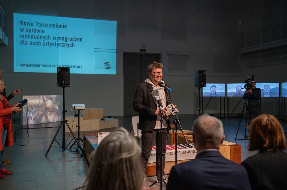Dokument został opracowany przez Obywatelskie Forum Sztuki Współczesnej (OFSW). Jego celem jest uregulowanie kwestii wynagrodzeń dla artystów biorących udział w wystawach. Podczas wydarzenia zaprezentowane zostały szczegółowe zapisy i sposoby obliczania minimalnych wynagrodzeń, które będą zależne od obowiązującej w danym roku płacy minimalnej.