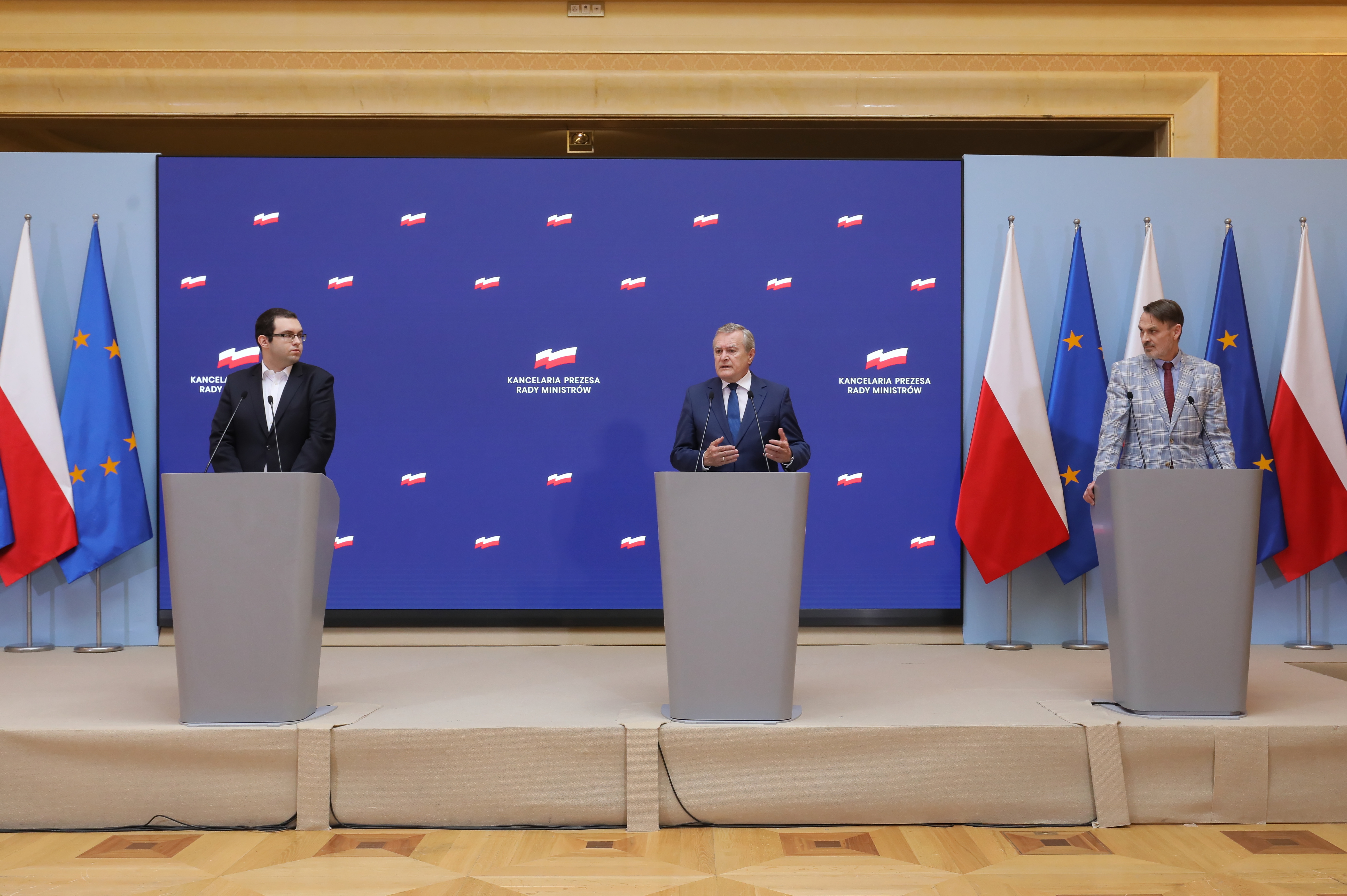 W konferencji w Kancelarii Prezesa Rady Ministrów wzięli udział także Wiceprzewodniczący Komitetu ds. Pożytku Publicznego, Pełnomocnik Rządu ds. Polityki Młodzieżowej - Piotr Mazurek oraz sekretarz Komitetu ds. Pożytku Publicznego, Dyrektor Narodowego Instytutu Wolności - Wojciech Kaczmarczyk.