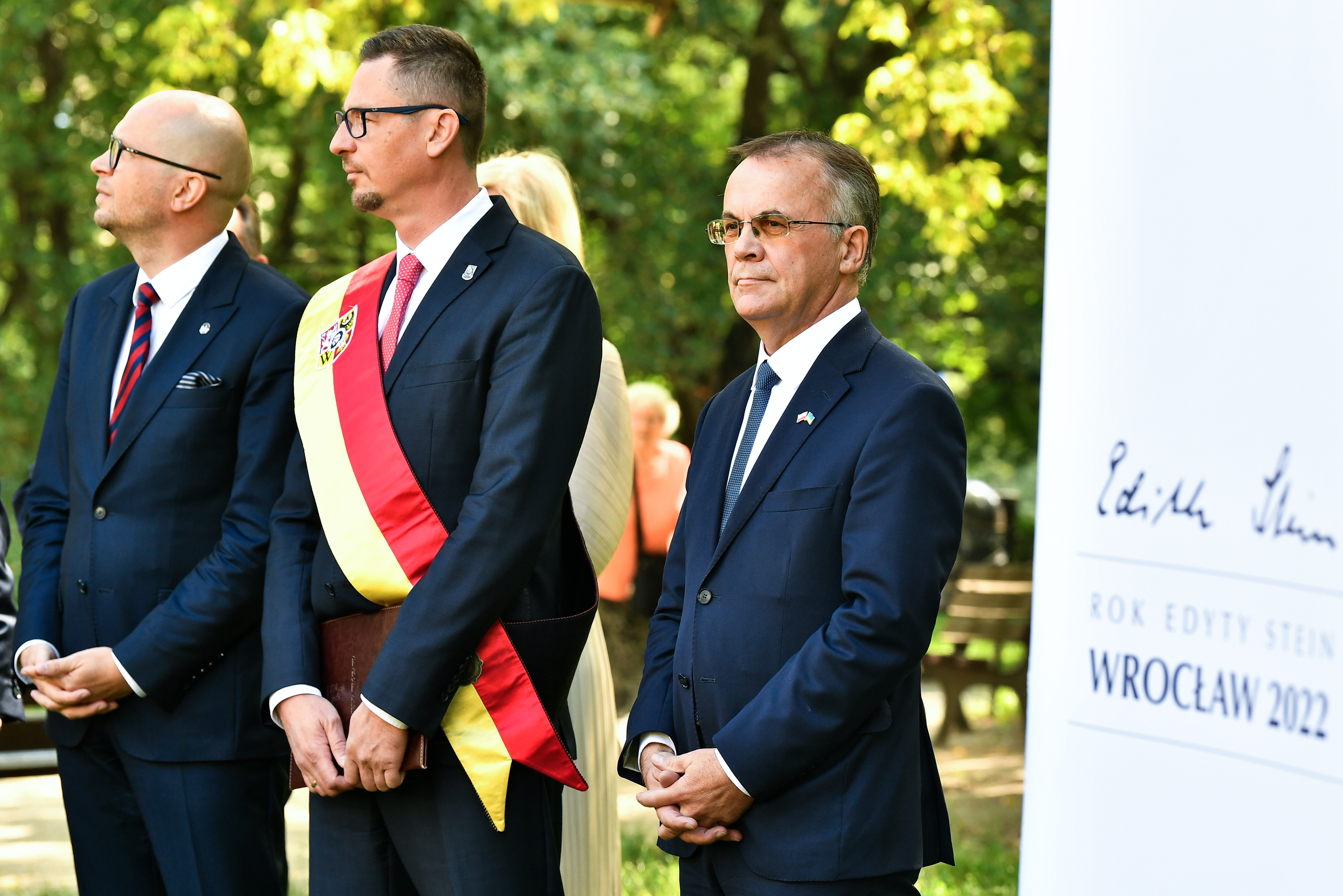 Przed wernisażem wystawy wiceminister Sellin wziął udział w zasadzeniu dębu upamiętniającego patronkę Europy oraz w uroczystości nadania imienia Edyty Stein tramwajowi MPK Wrocław.
