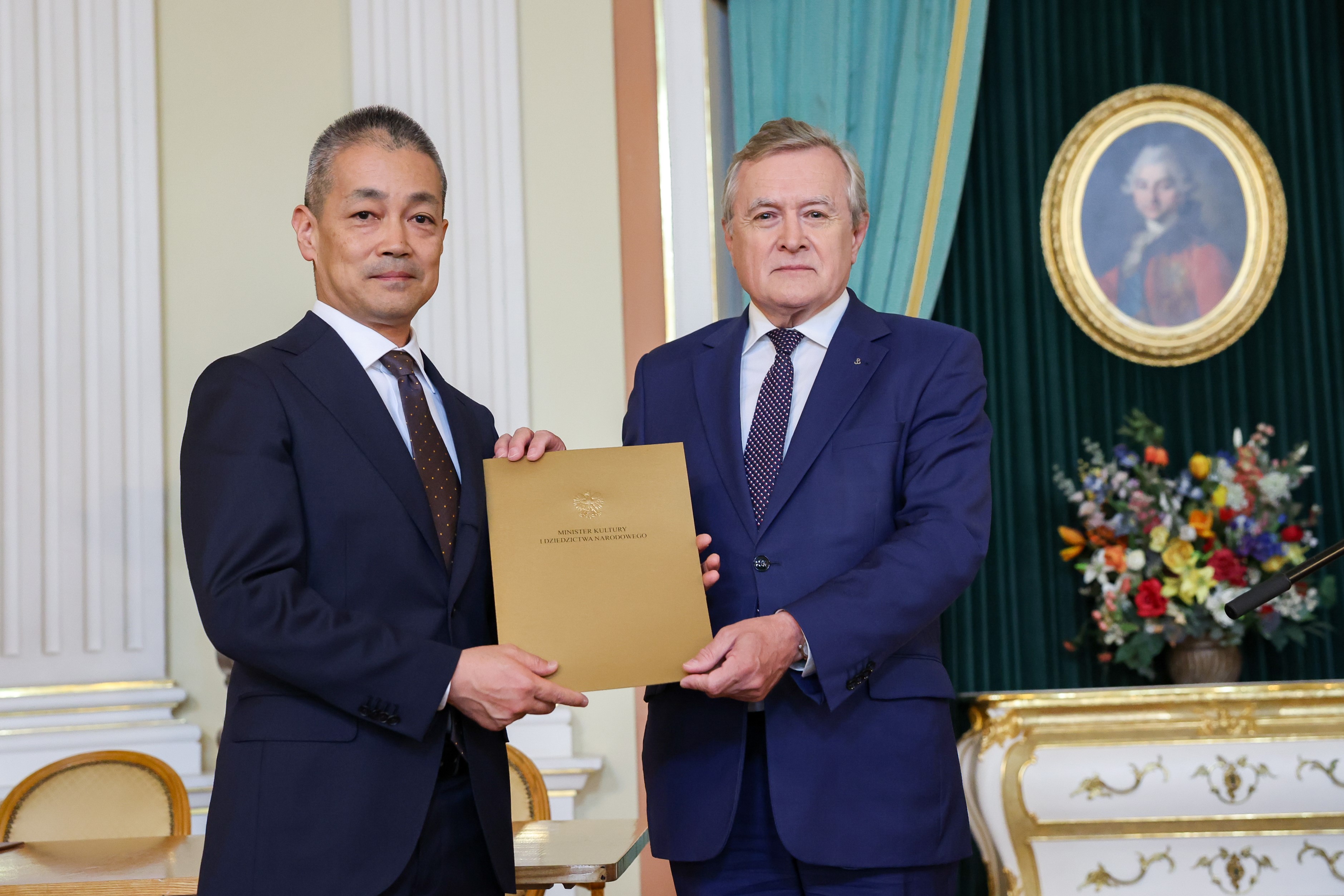 Podziękowania kieruję też do pracowników Ambasady RP w Japonii oraz Instytutu Polskiego w Tokio za udzielone nam wsparcie organizacyjne na każdym etapie tej sprawy. To była bardzo dobra, merytoryczna i owocna współpraca – podkreślił minister. – Na koniec dziękuję domowi aukcyjnemu Mainichi Auction, który w porozumieniu z posiadaczem zdecydował o przekazaniu obrazu do Polski. Bardzo doceniamy tę profesjonalną postawę, to zrozumienie wobec podejmowanych przez polski resort kultury działań restytucyjnych. Ten gest godny jest najwyższego uznania. Życzylibyśmy sobie tak modelowej współpracy z każdym domem aukcyjnym, w którym odnajdujemy obiekt, co do którego zachodzi podejrzenie, że stanowi polską stratę wojenną – zakończył.