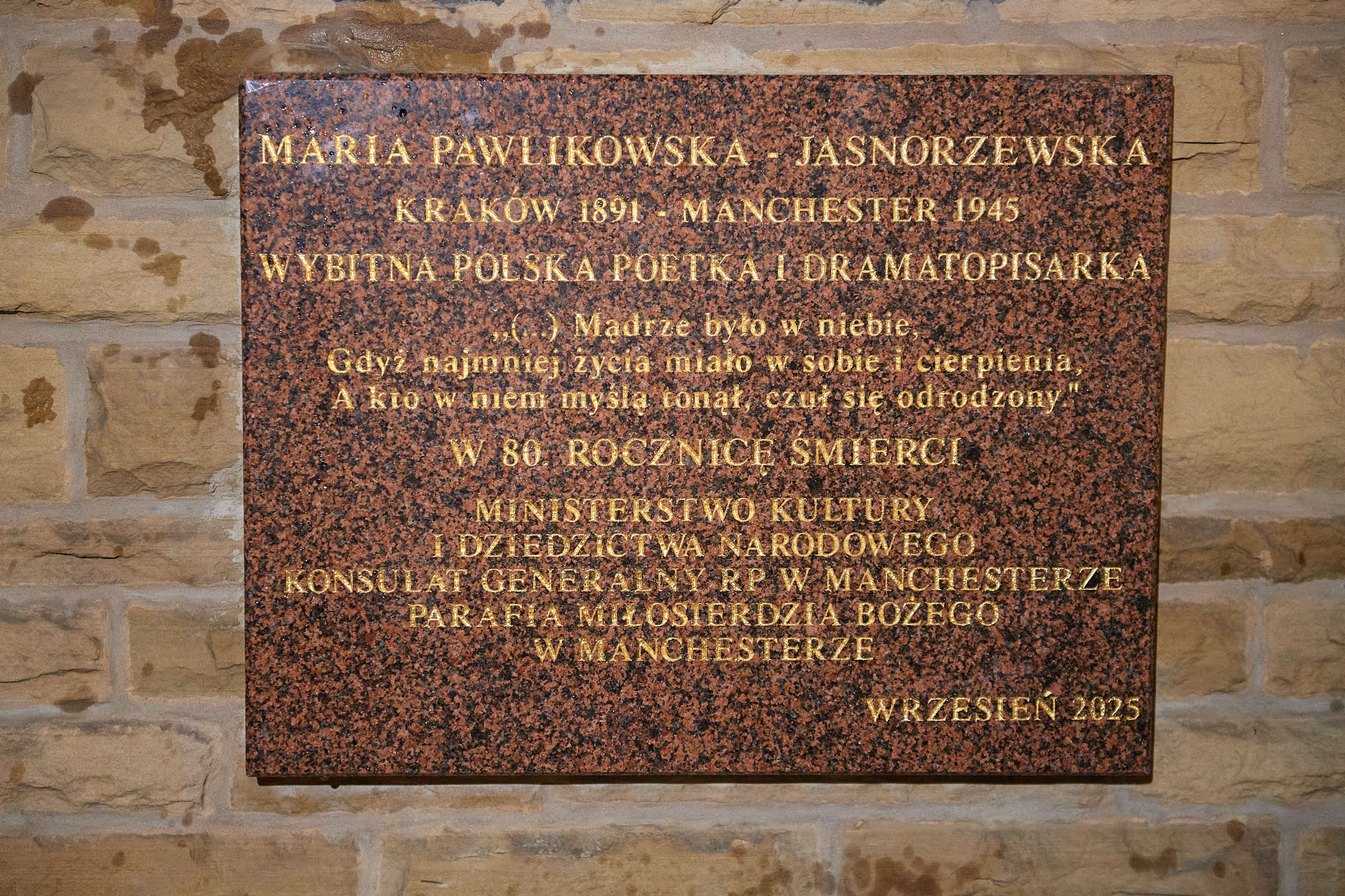 Maria Pawlikowska-Jasnorzewska ostatnie lata życia spędziła w Manchesterze. Na cmentarzu Southern Cemetery znajduje się grób poetki i jej męża, Stefana Jasnorzewskiego. Odsłonięcie tablicy to akt pamięci o jednej z najwybitniejszych polskich poetek XX wieku i wyraz troski o zachowanie polskiego dziedzictwa kulturowego poza granicami kraju.